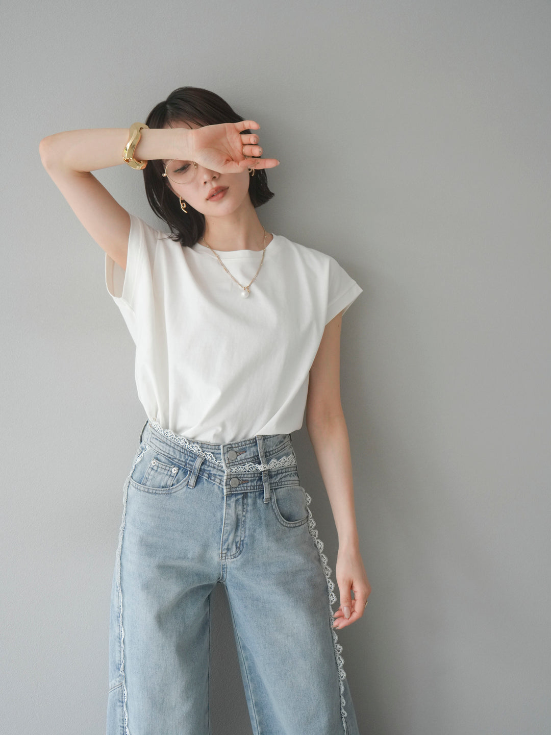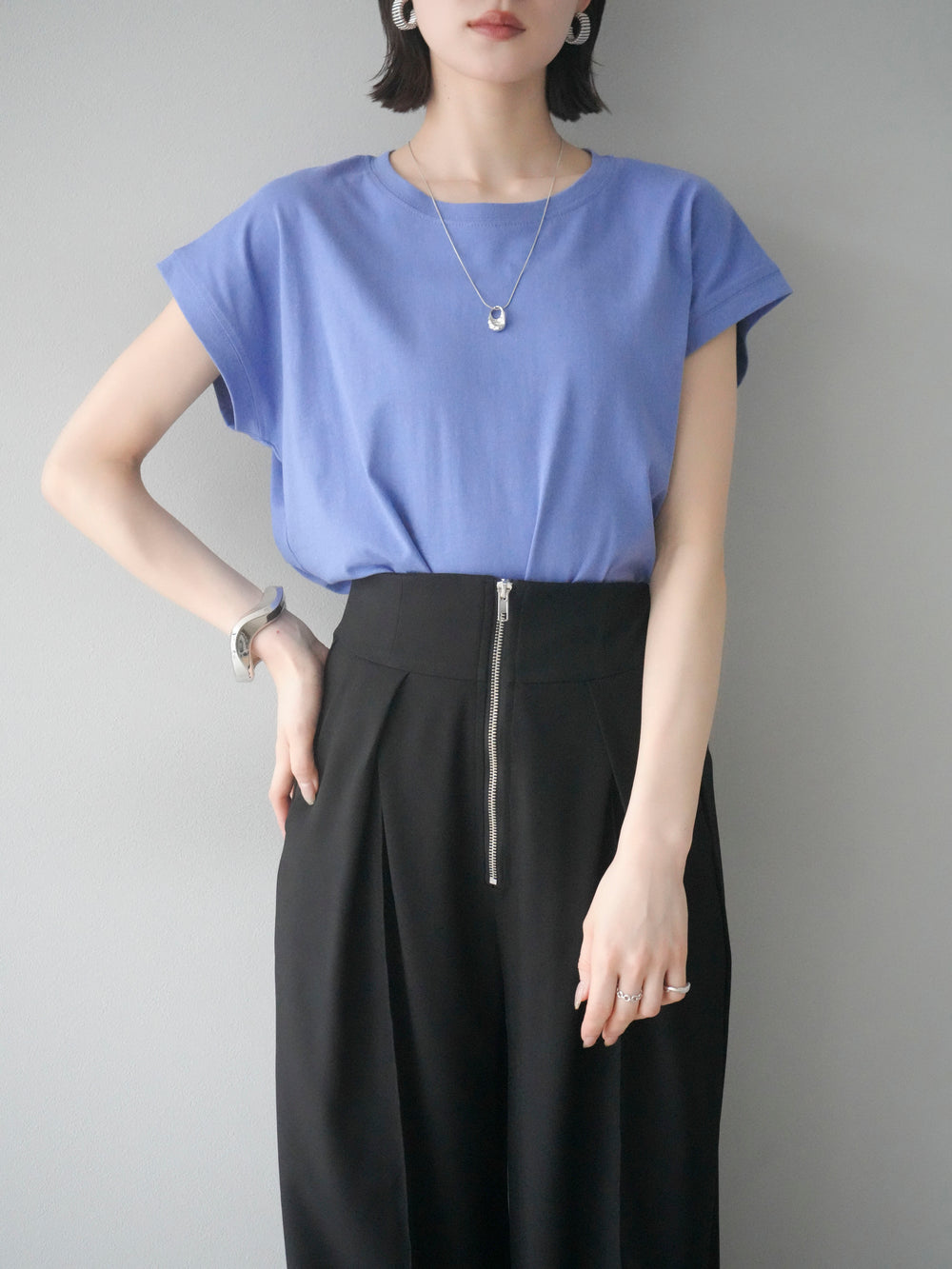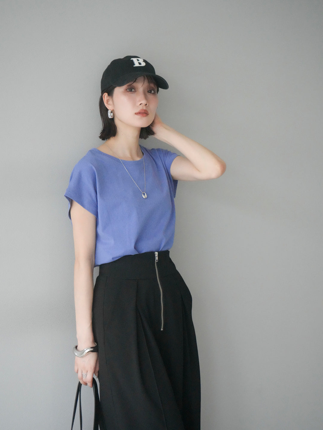 【預購】色彩協調的柔和褶皺半袖上衣/象牙白