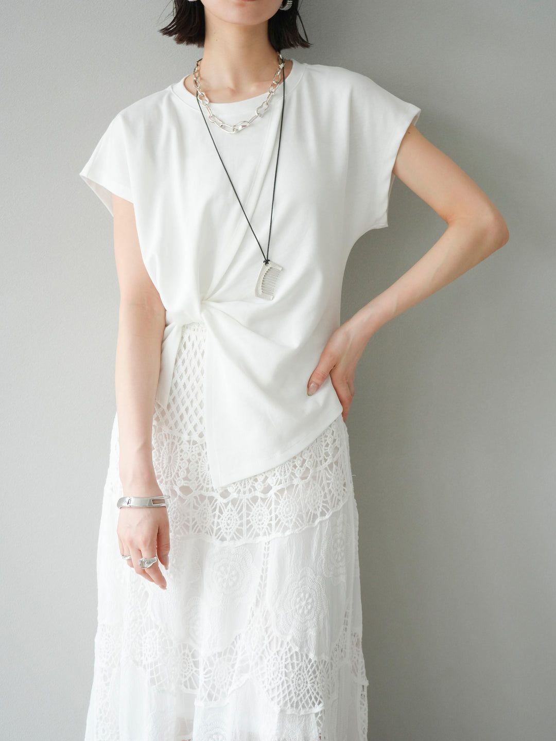 【預購】側褶T卹&抽繩皮革項鍊組 / 白色