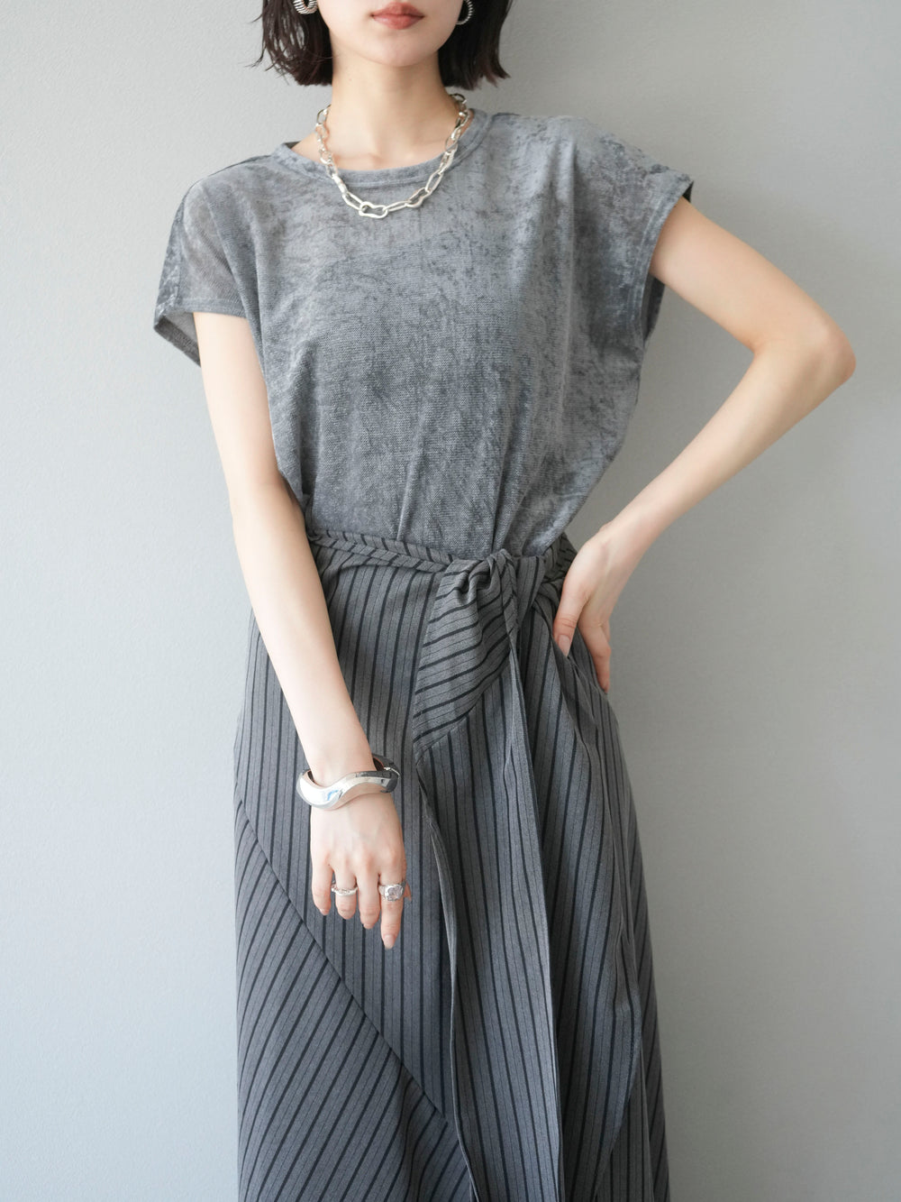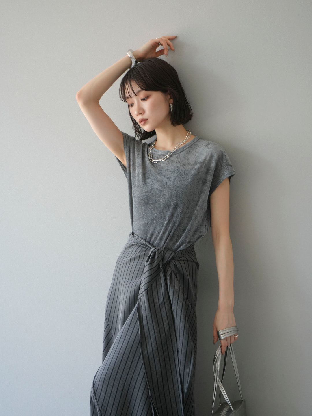 【預購】側褶T卹&抽繩皮革項鍊組 / 灰色