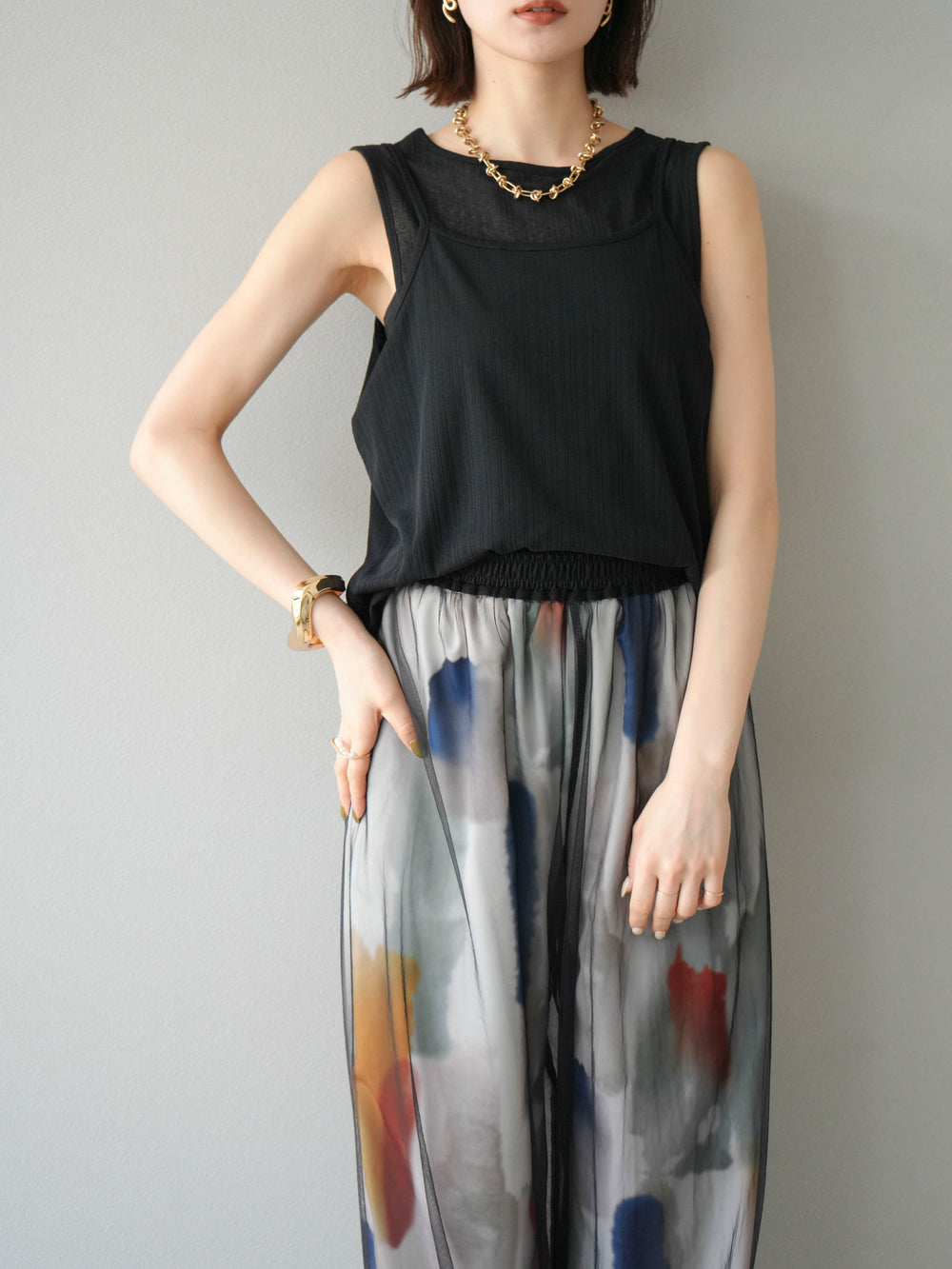 [預訂] 雙向透視多層垂墜上衣/黑色