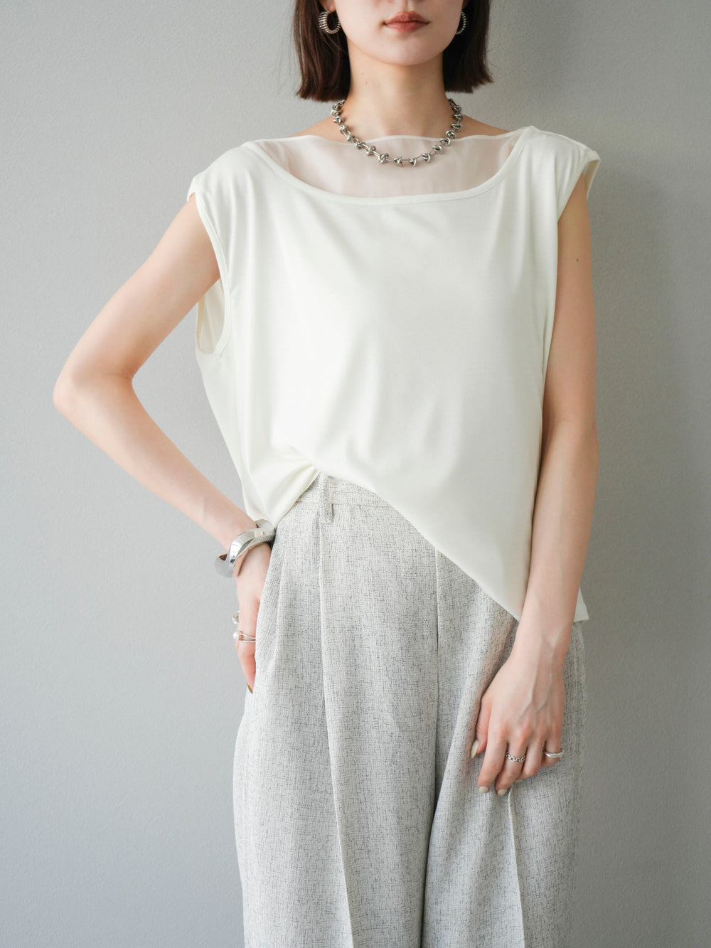 [預訂] 雙向透視多層垂墜上衣/象牙色