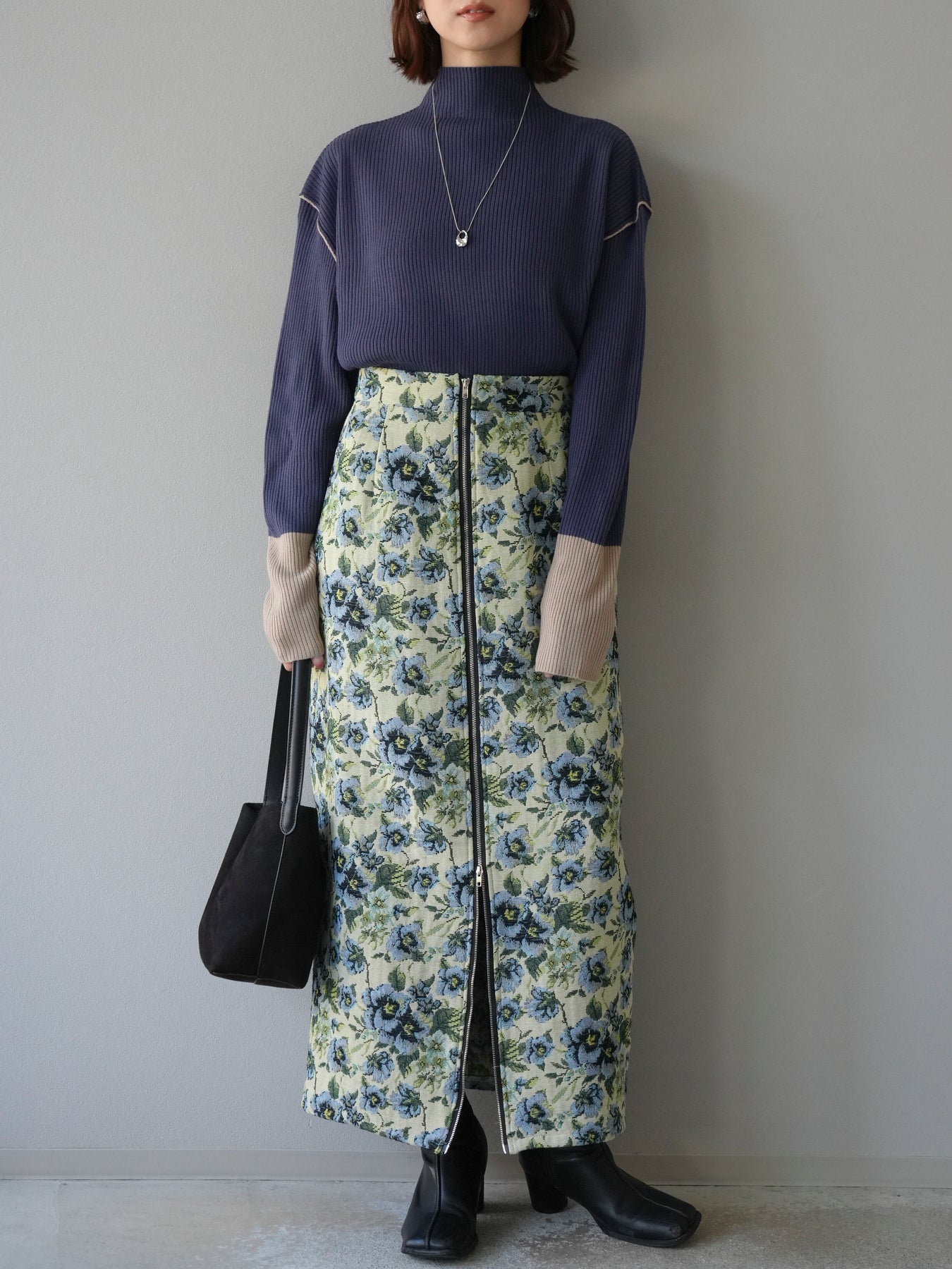 立体感のあるリブ編みが特徴的なボトルネックプルオーバー。袖口や肩ラインに配色を施し、シンプルながらもスタイリングにアクセントを加えてくれる一着です。程よいゆとりを持たせたシルエットで着心地が良く、デイリーに使いやすいデザイン。スカートにもパンツにも合わせやすく、インでもアウトでもバランス良く着こなせます。首元をすっきりと見せつつ暖かさもキープしてくれる、これからの季節に活躍する万能アイテムです。 ※ボトムス、キャミソール(インナー)以外の商品は一律でインナーは付属していません。