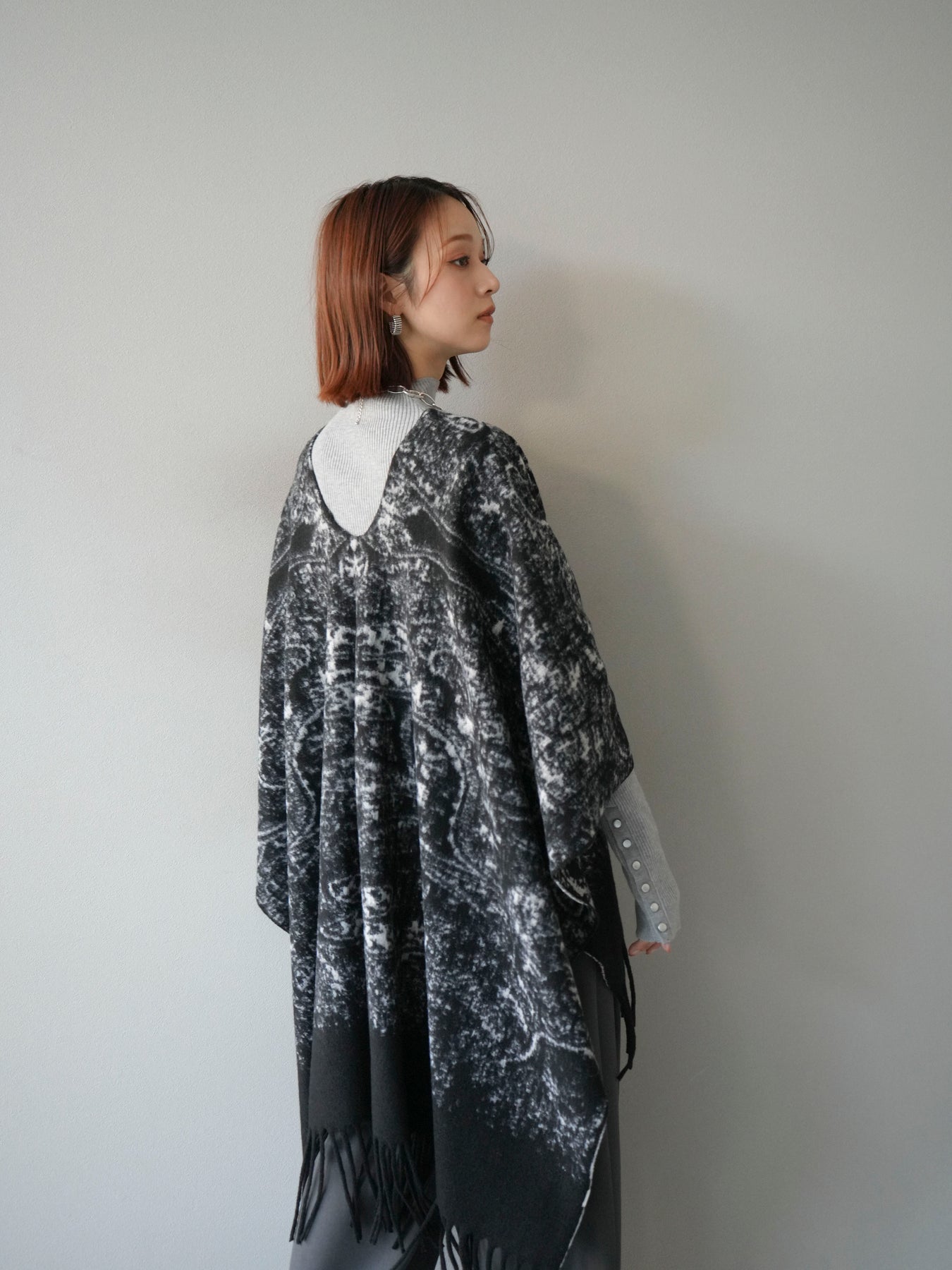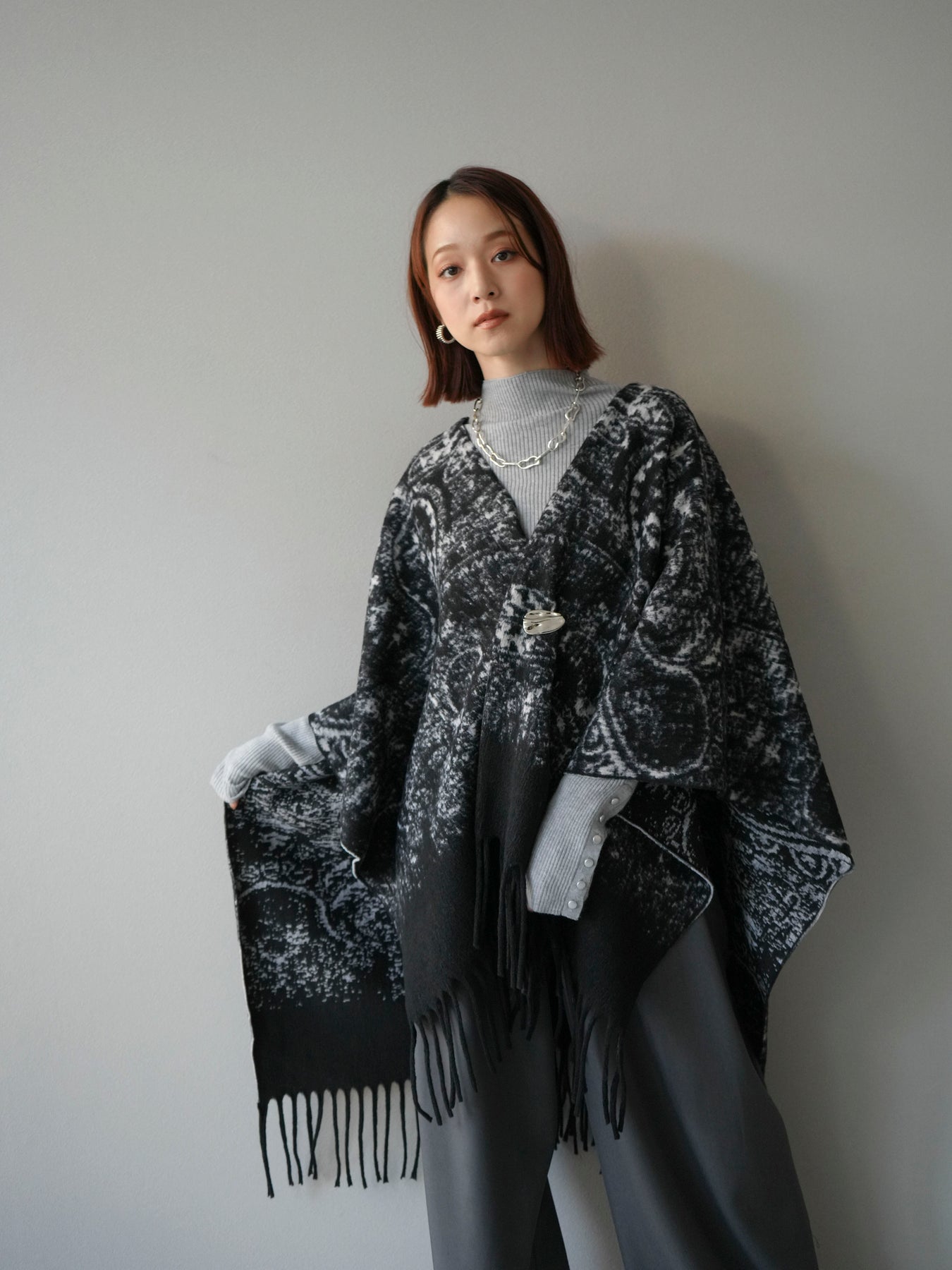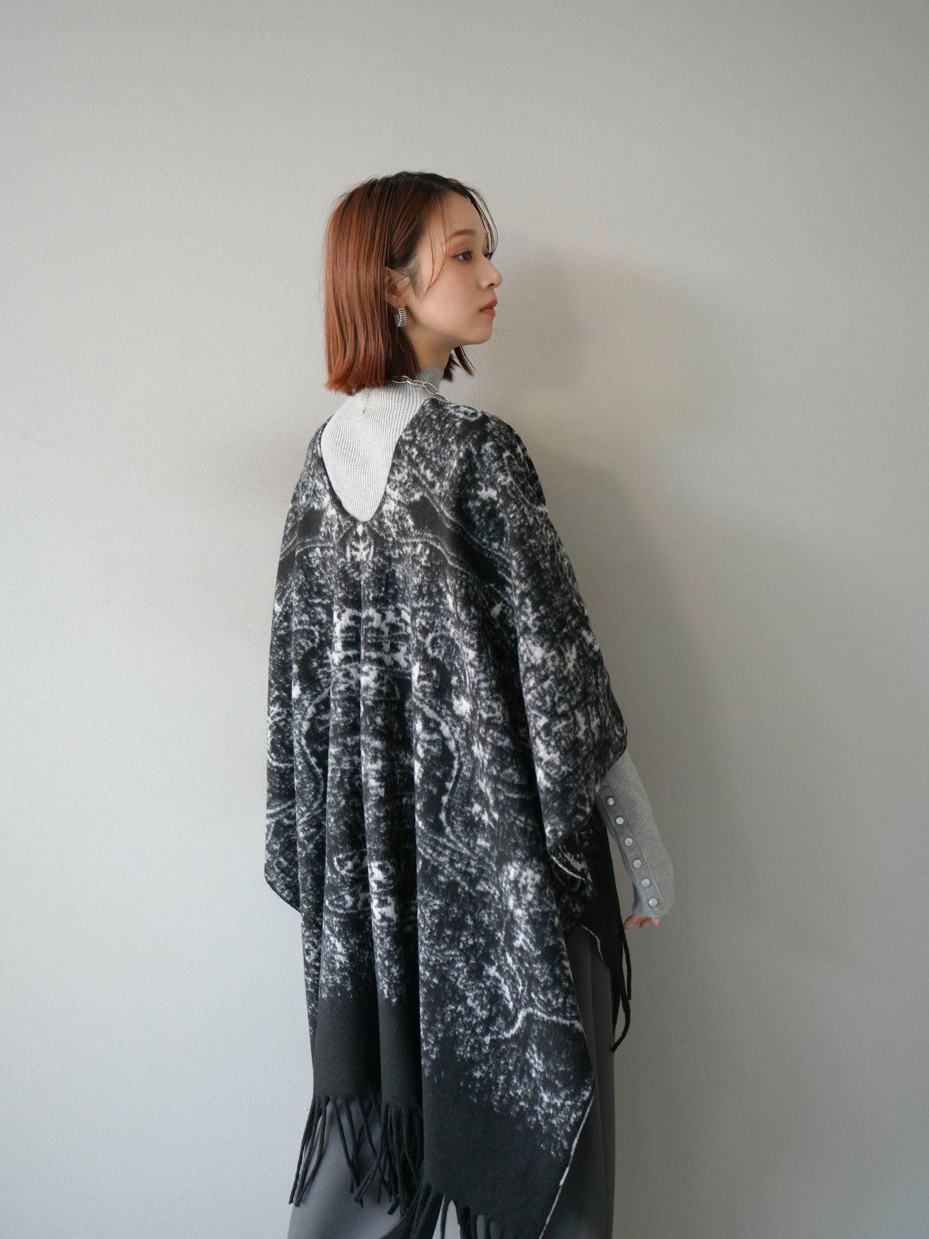 [予約]アブストラクト柄ストールポンチョ/ブラック