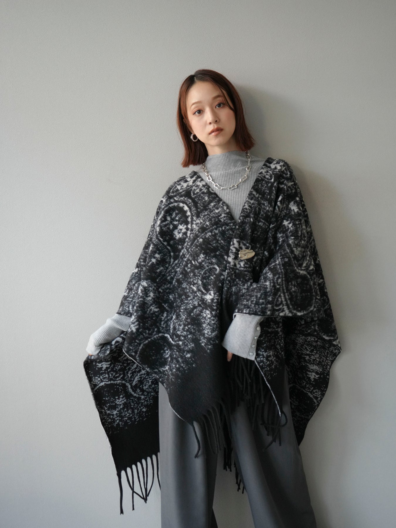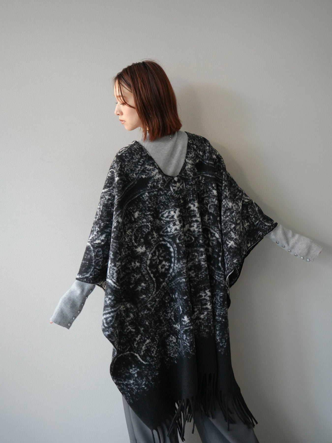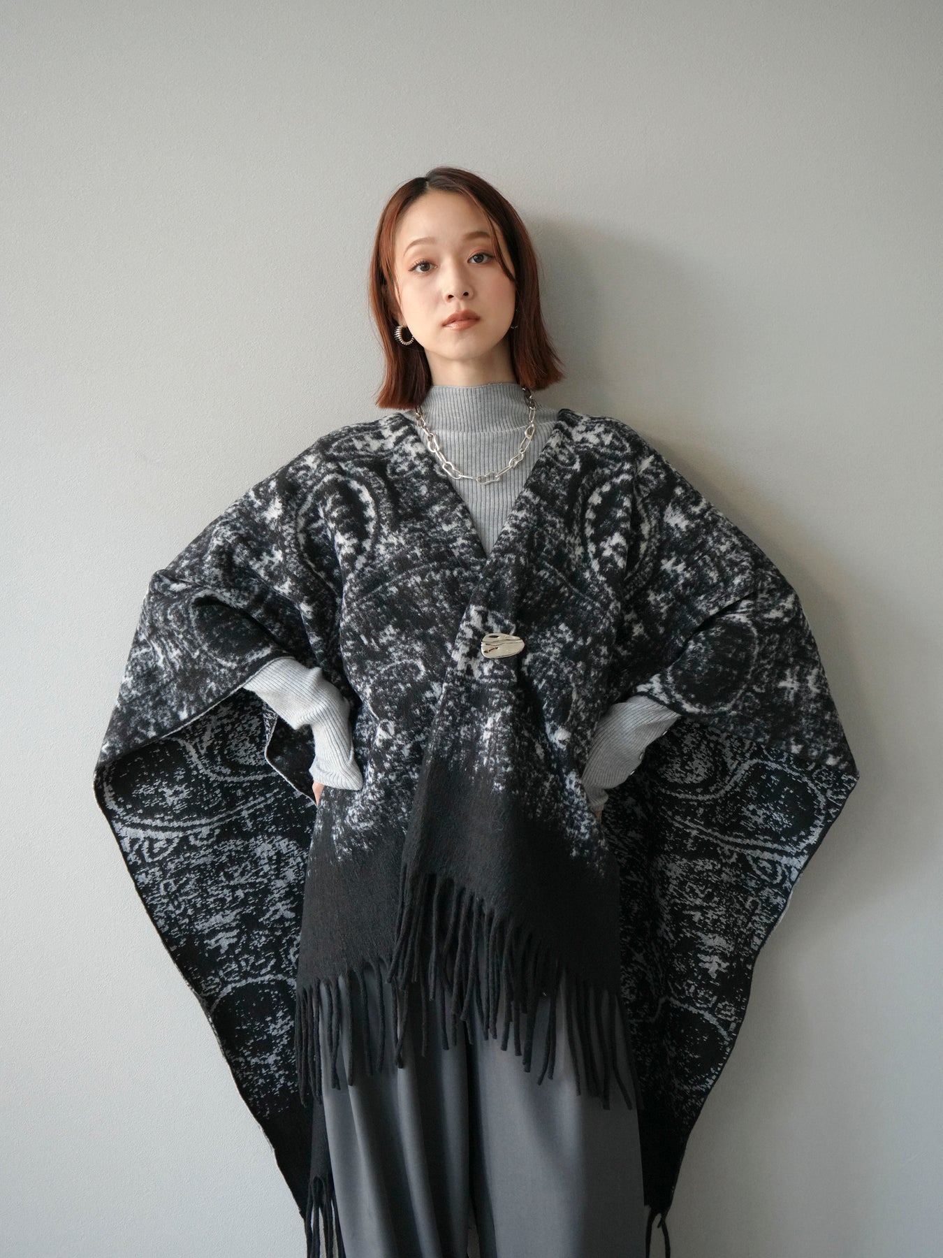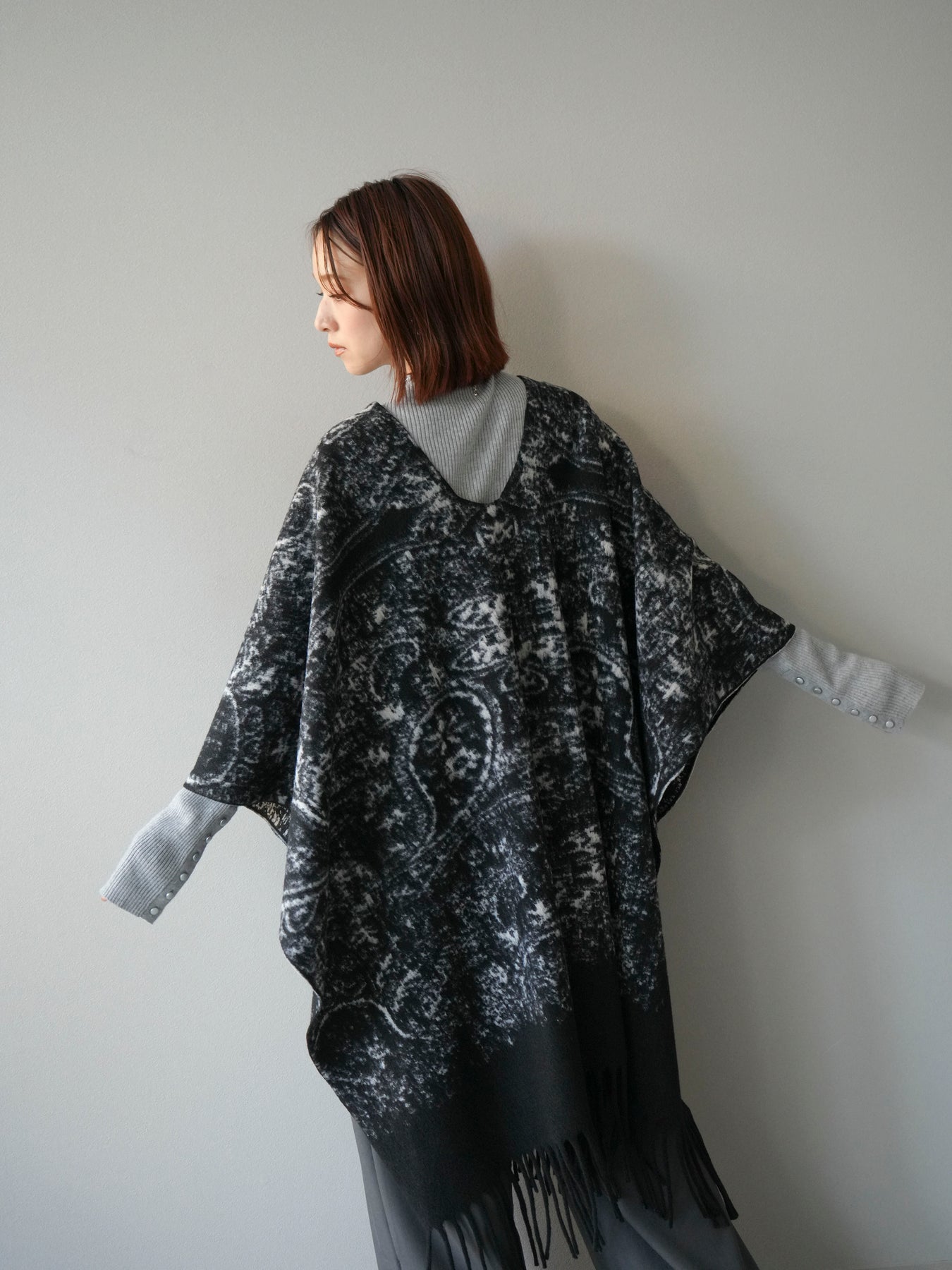 [予約]アブストラクト柄ストールポンチョ/ブラック