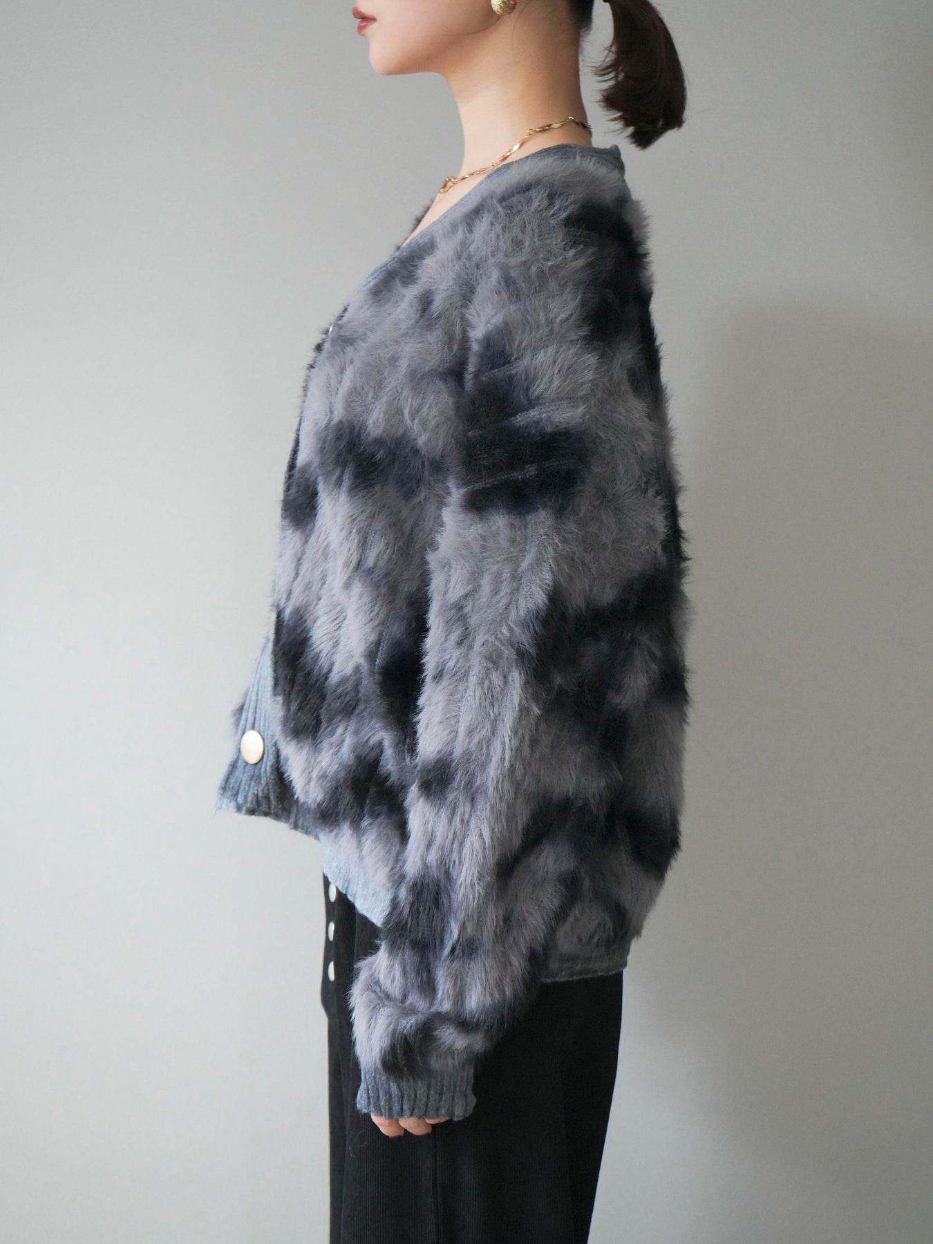 [予約]ニュアンス柄シャギーニットカーディガン/gray