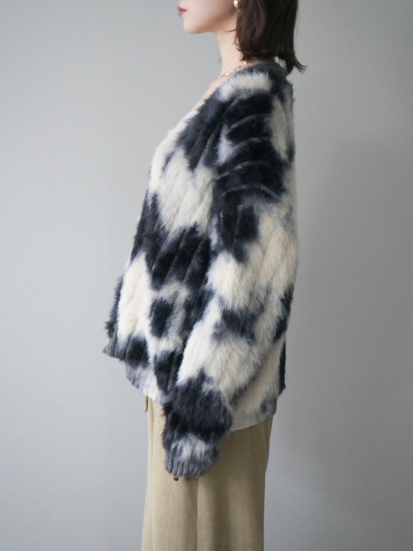 [予約]ニュアンス柄シャギーニットカーディガン/khaki