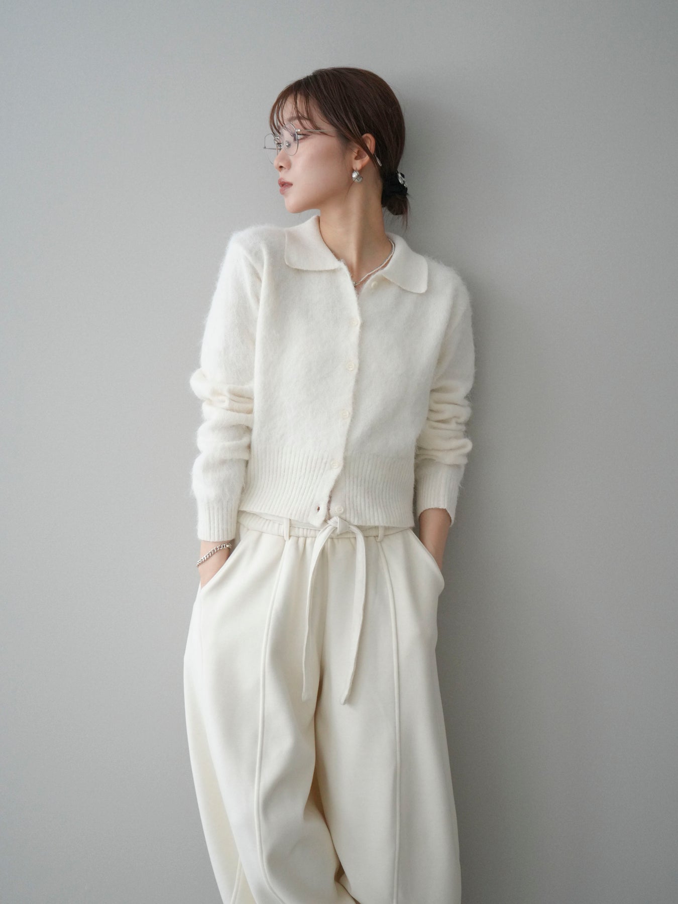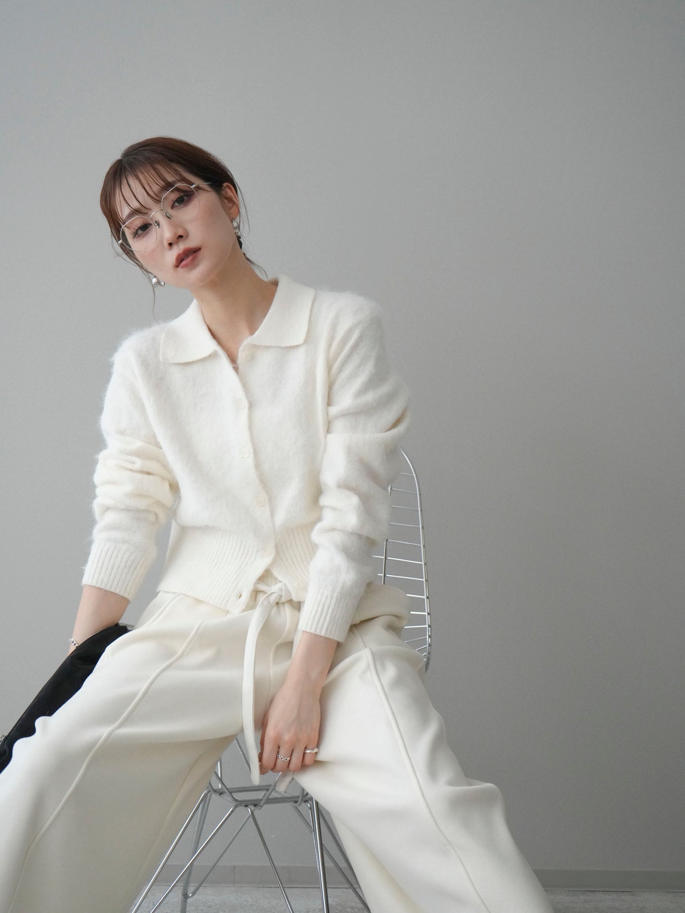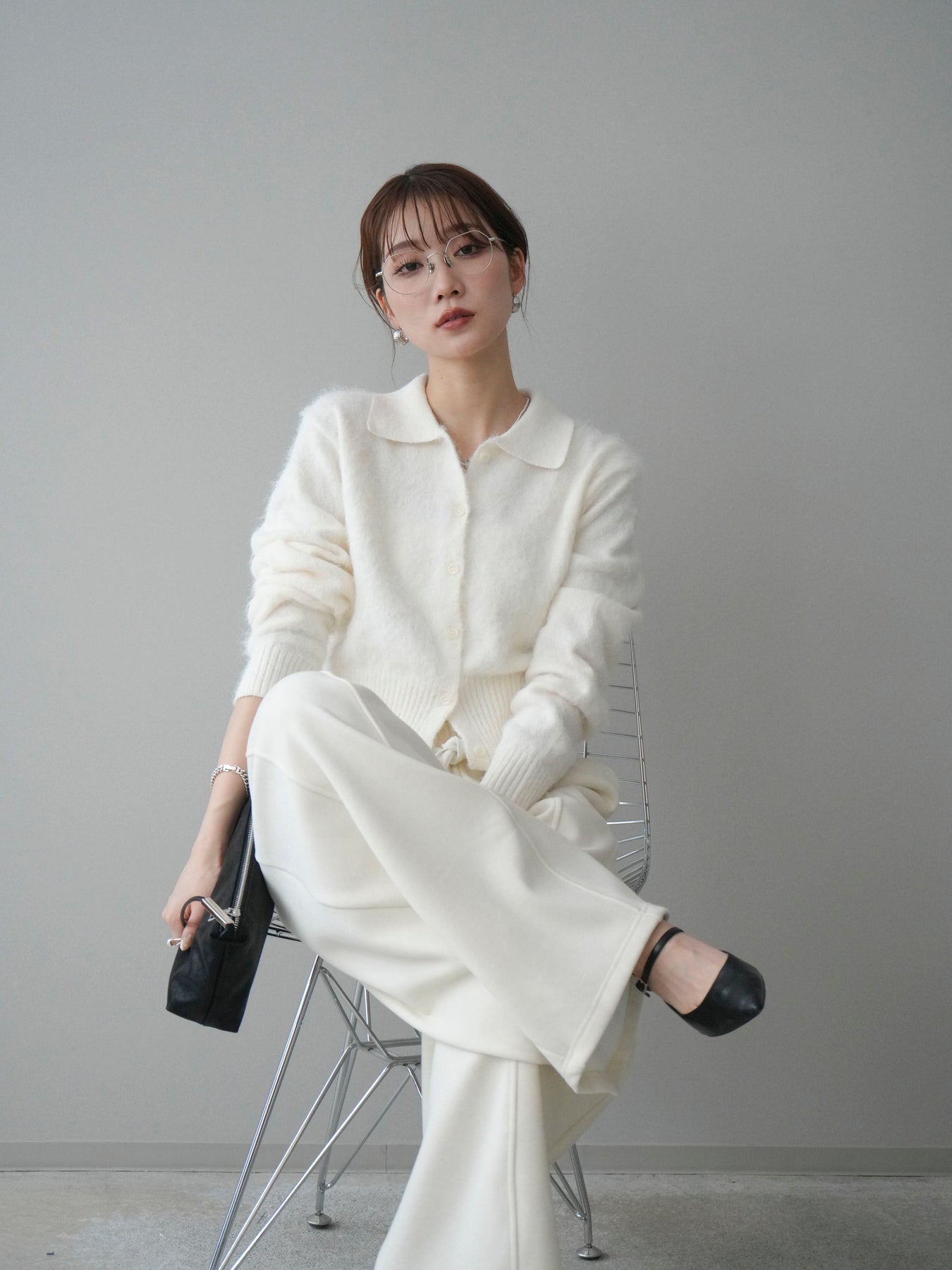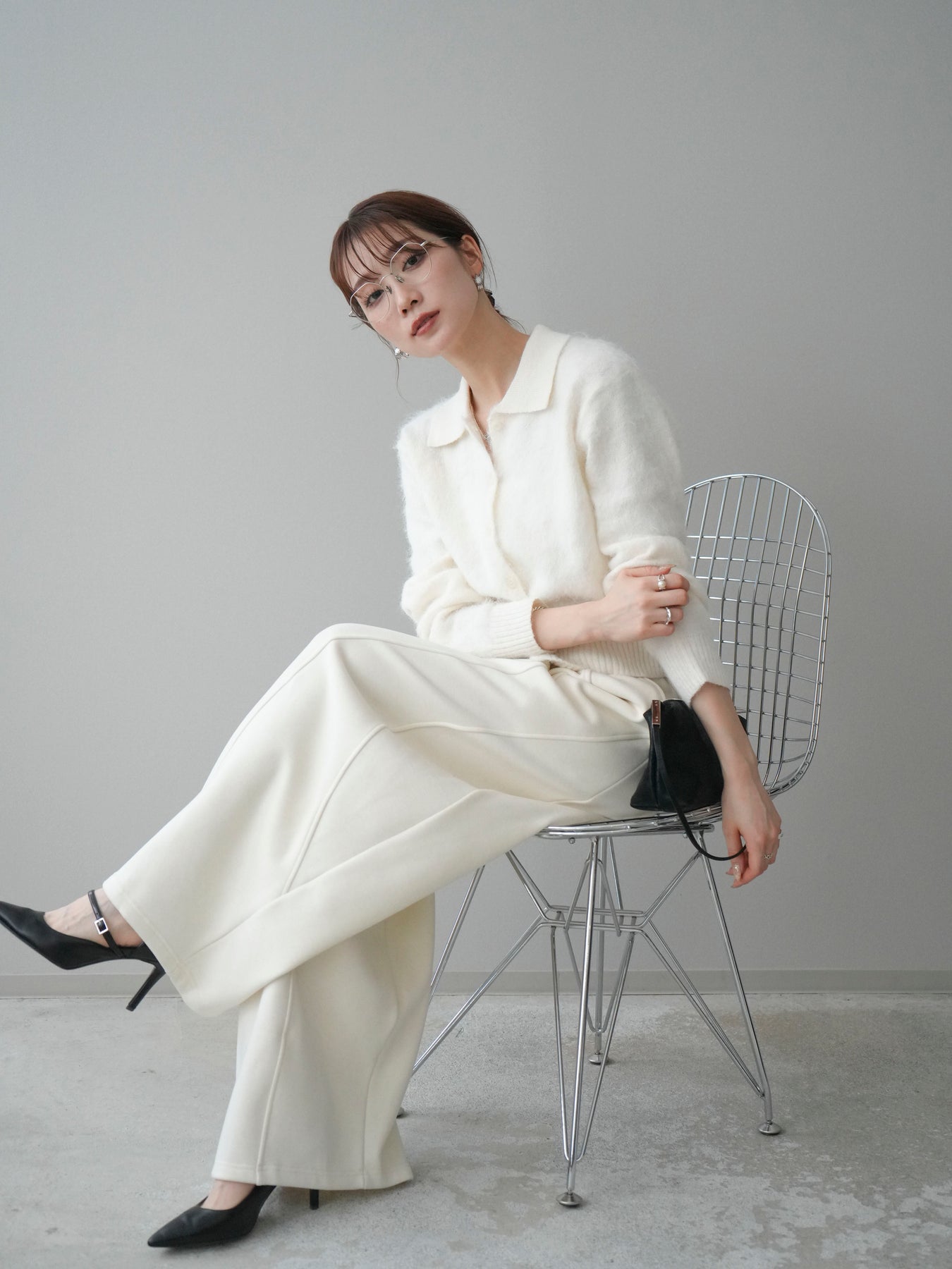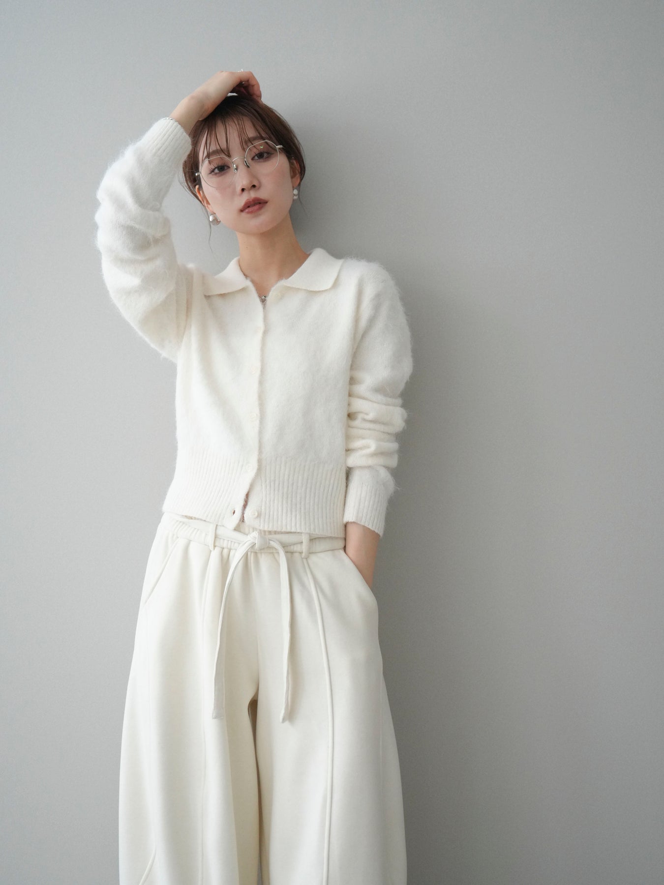 ふんわりとしたモヘアタッチの素材感が魅力の衿付きニットプルオーバー。 やさしい起毛感がシーズンムードを高め、見た目にも暖かみのある一着です。 きちんと感のある衿デザインに、フロントのボタンがほどよいアクセントとなり、甘さと上品さをバランス良く演出。 コンパクトなシルエットで全体がすっきりとまとまり、ボトムスを選ばず着こなしやすいのもポイントです。 一枚で着映えし、デイリーから少しきれいめなスタイリングまで幅広く活躍します。