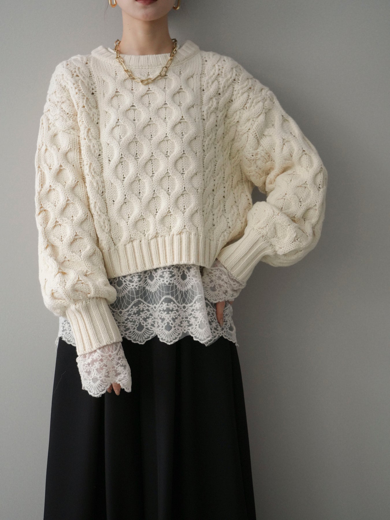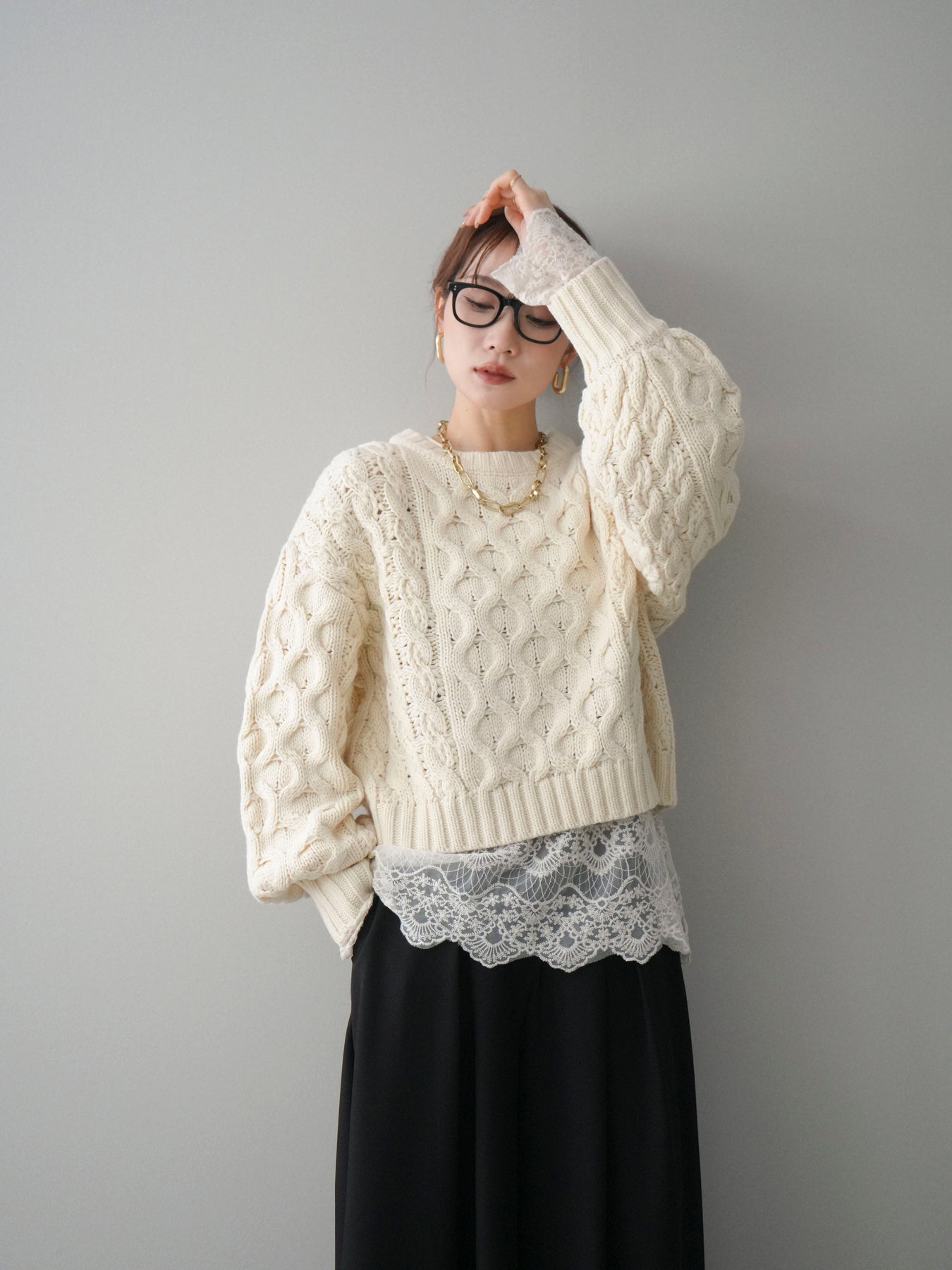 [予約]バルキーケーブルクロップドニットプルオーバー/ivory