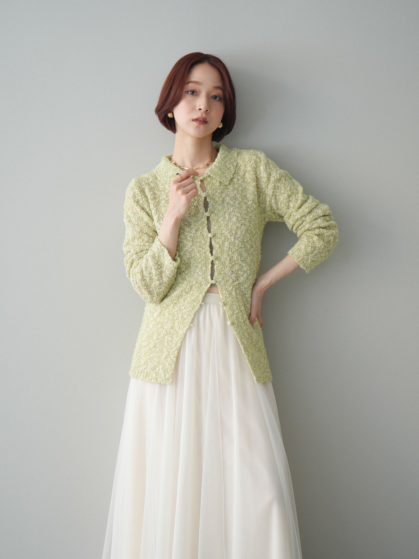 [予約]透かし編みブークレポロニットトップスに関連する商品を探す↓