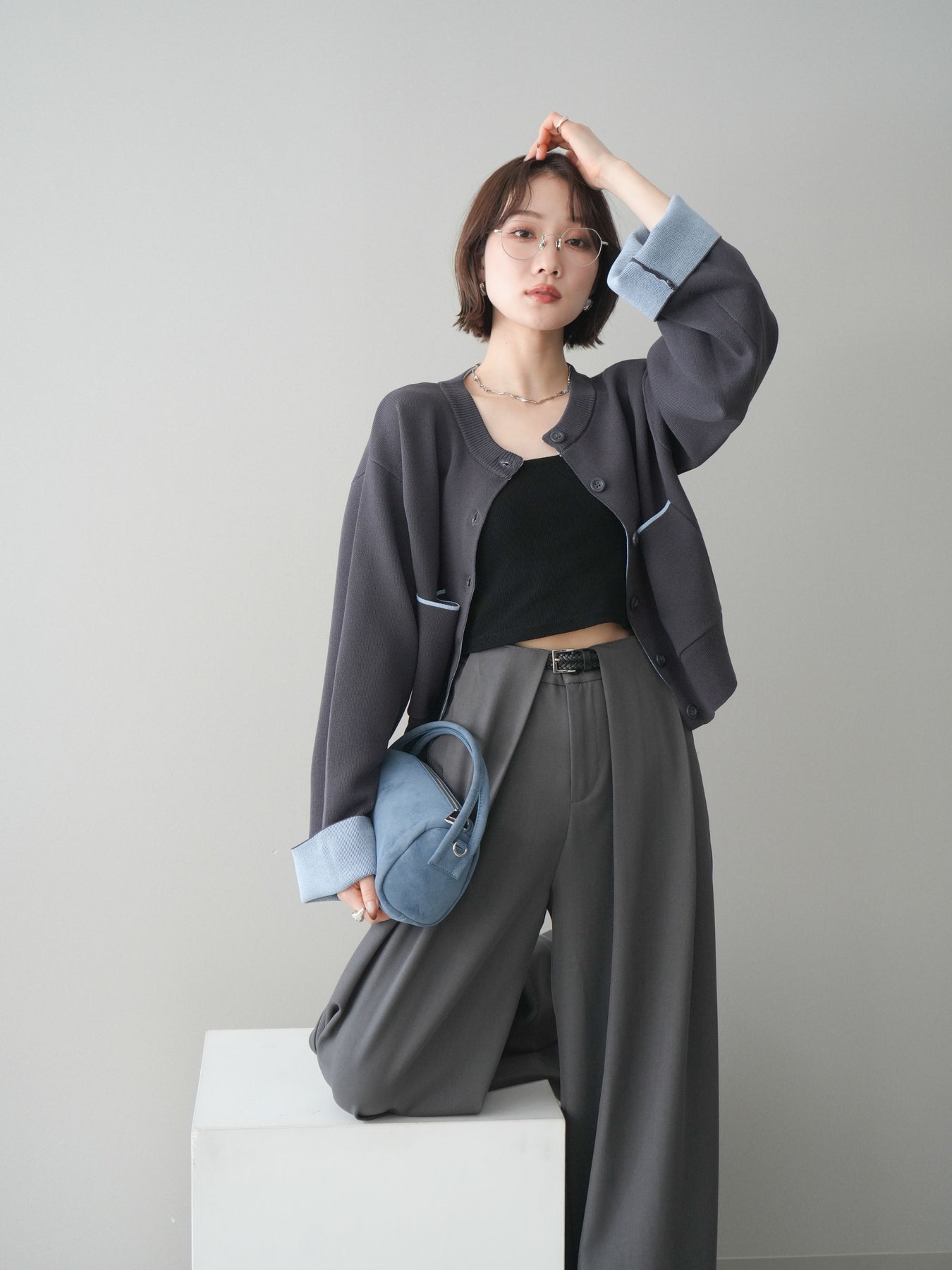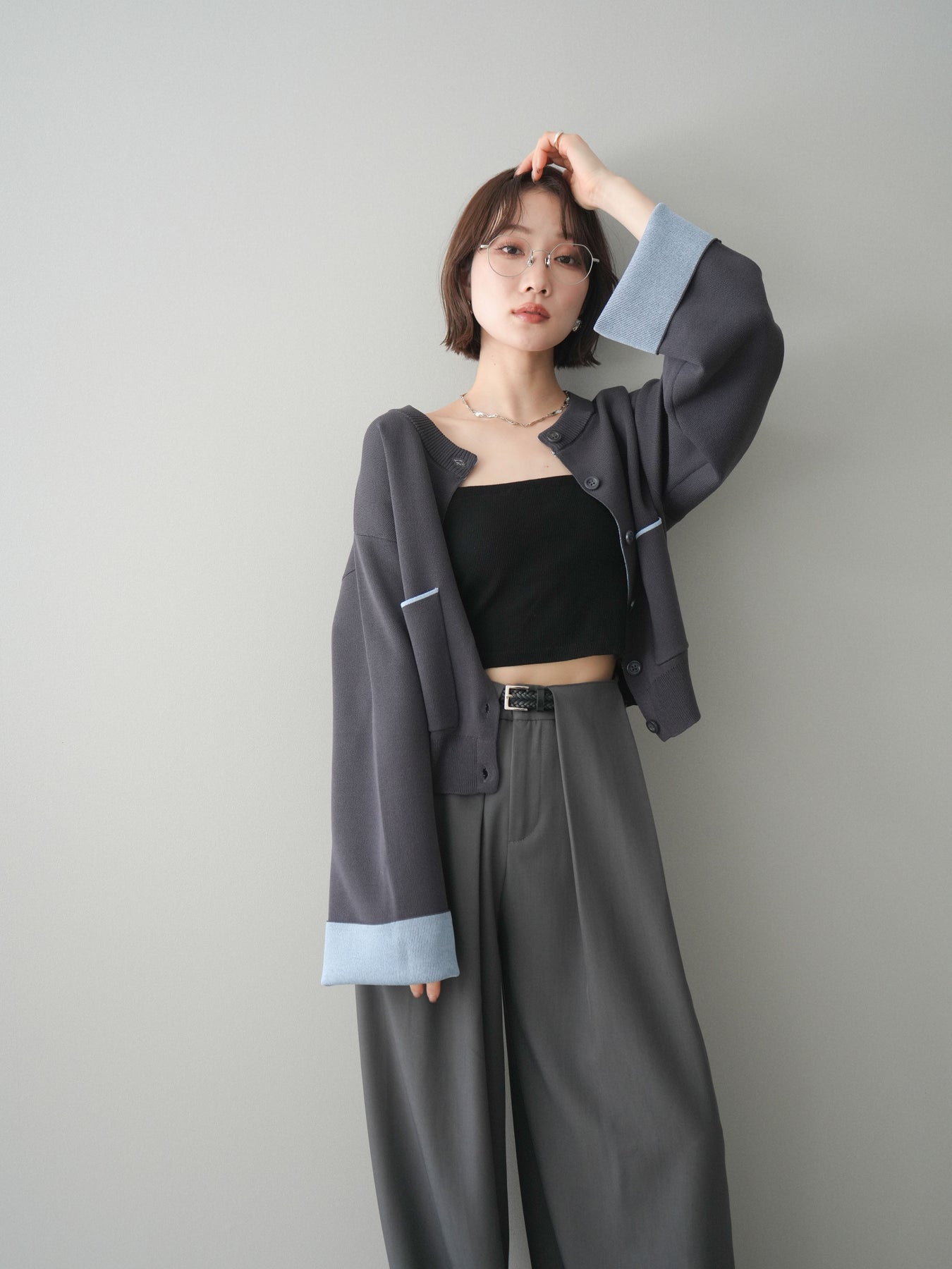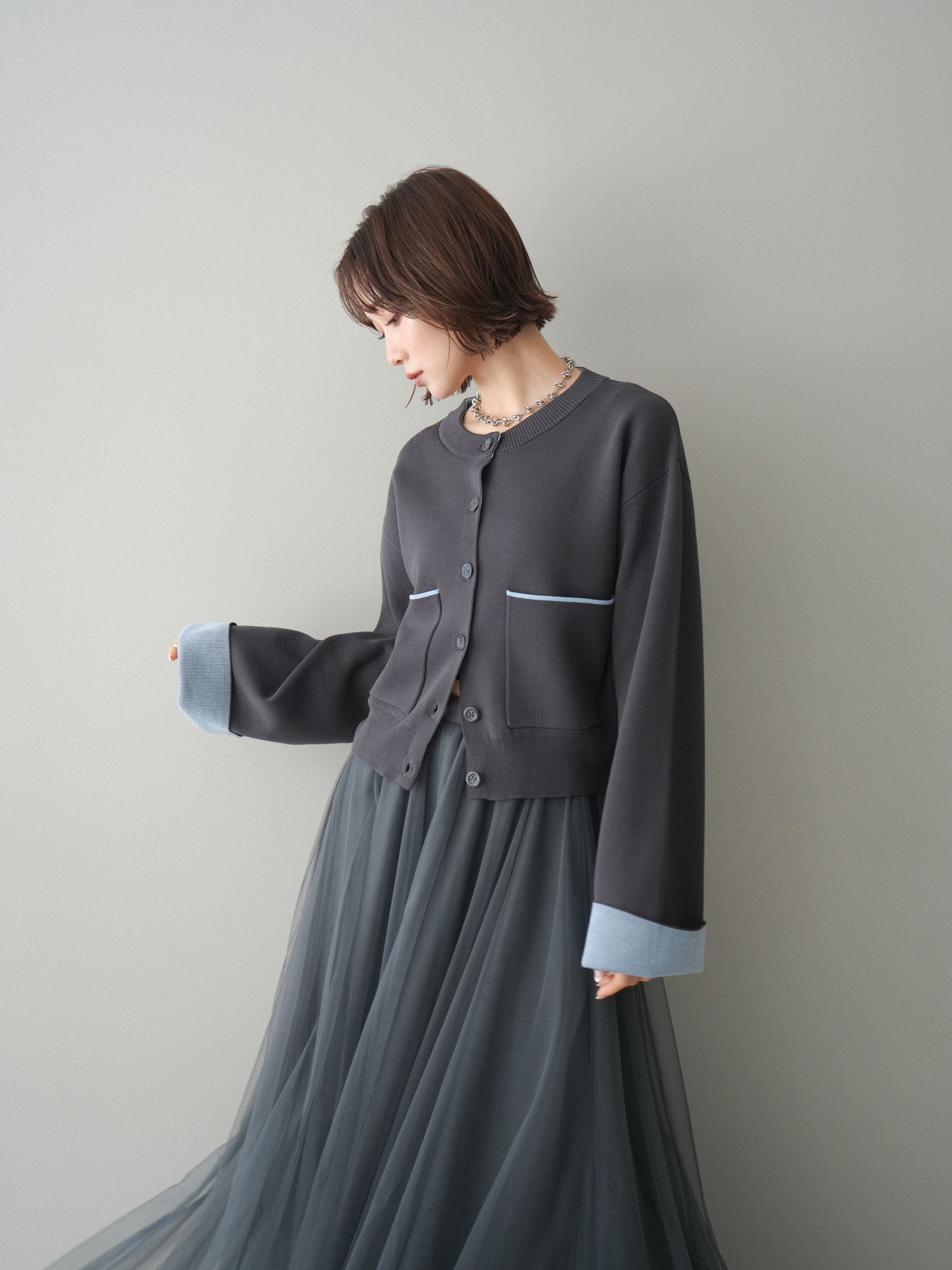 [予約]レーヨンポリダブルフェイスニットカーディガン/charcoal