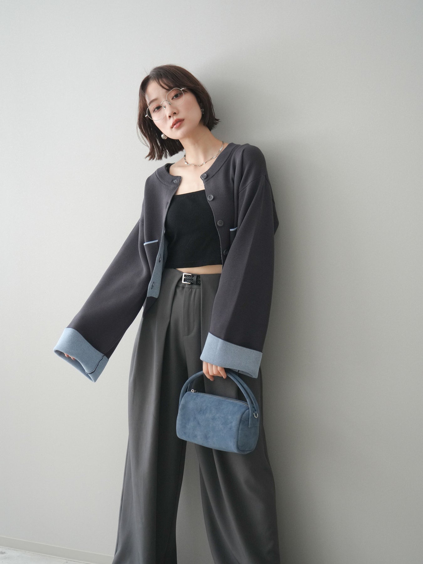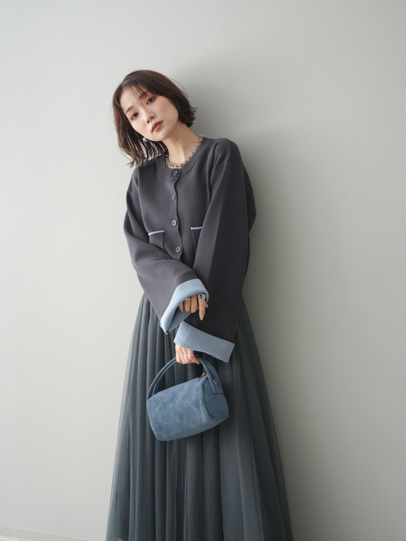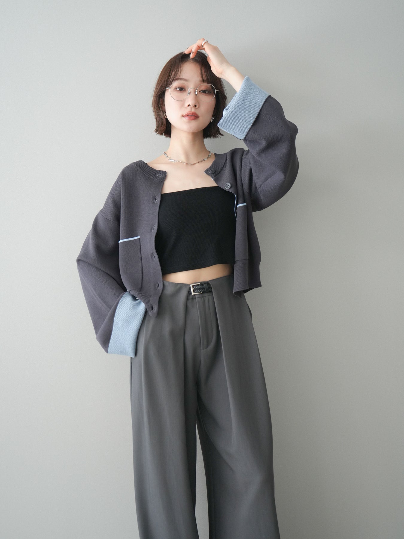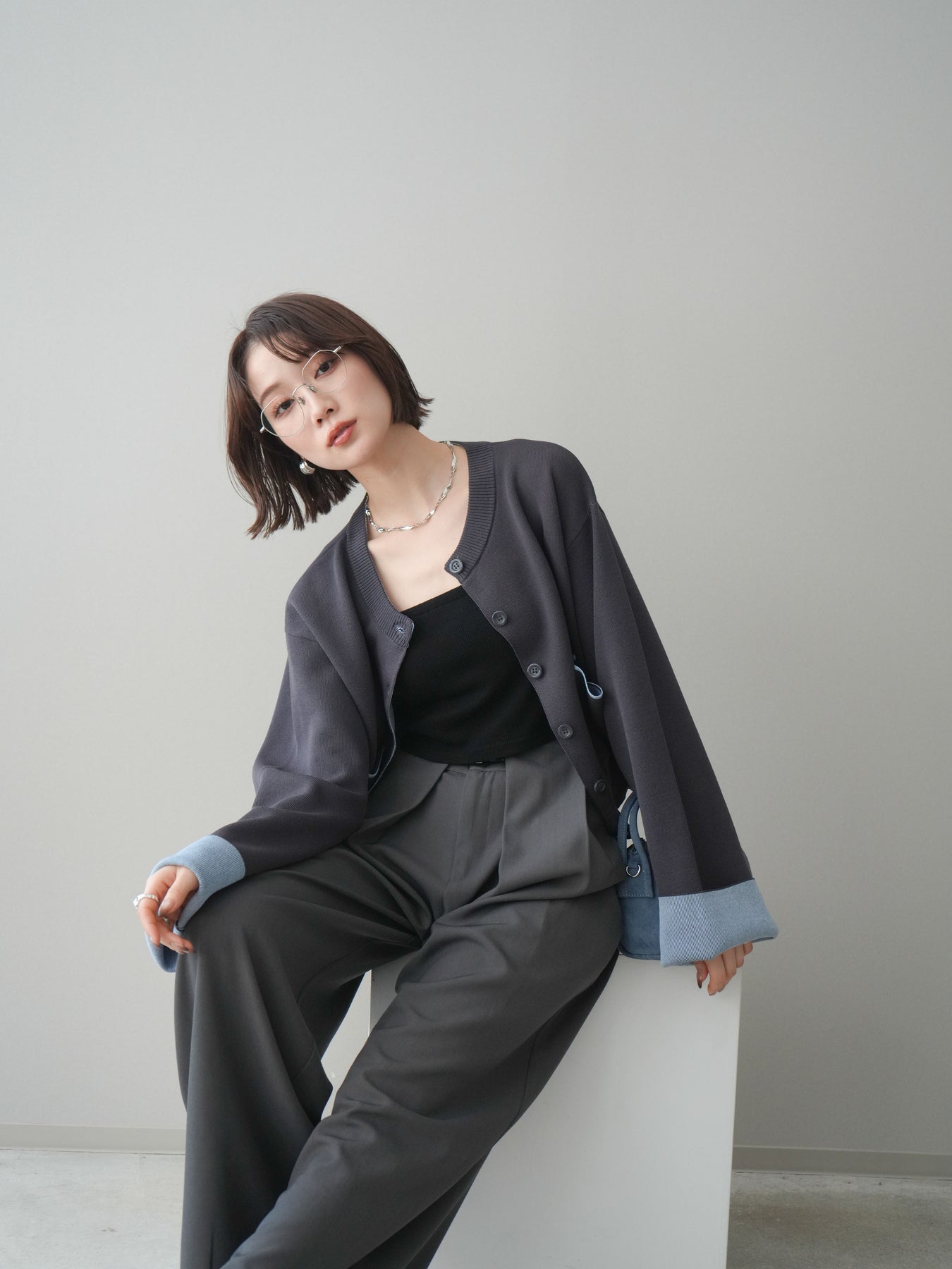 [予約]レーヨンポリダブルフェイスニットカーディガン/charcoal