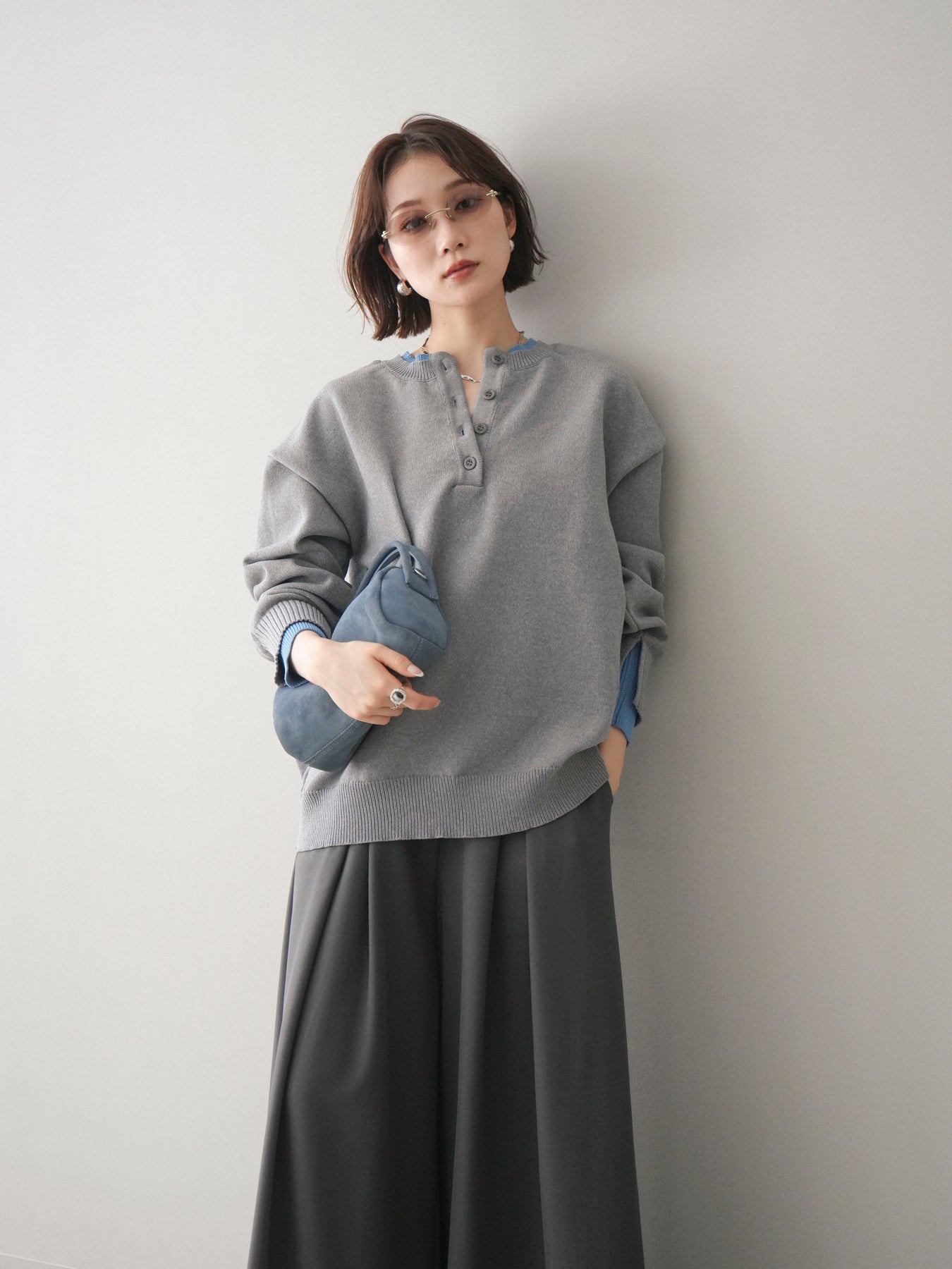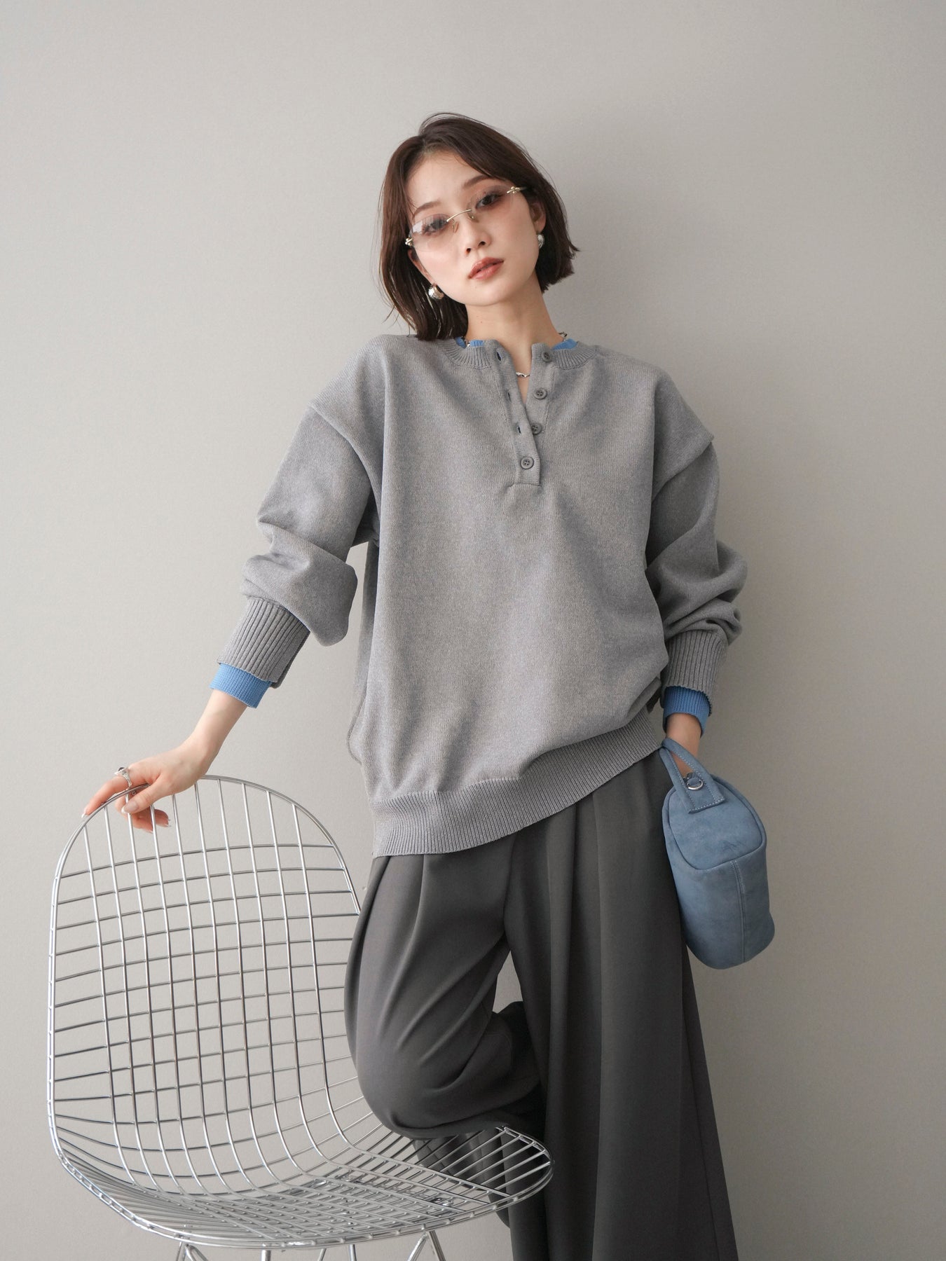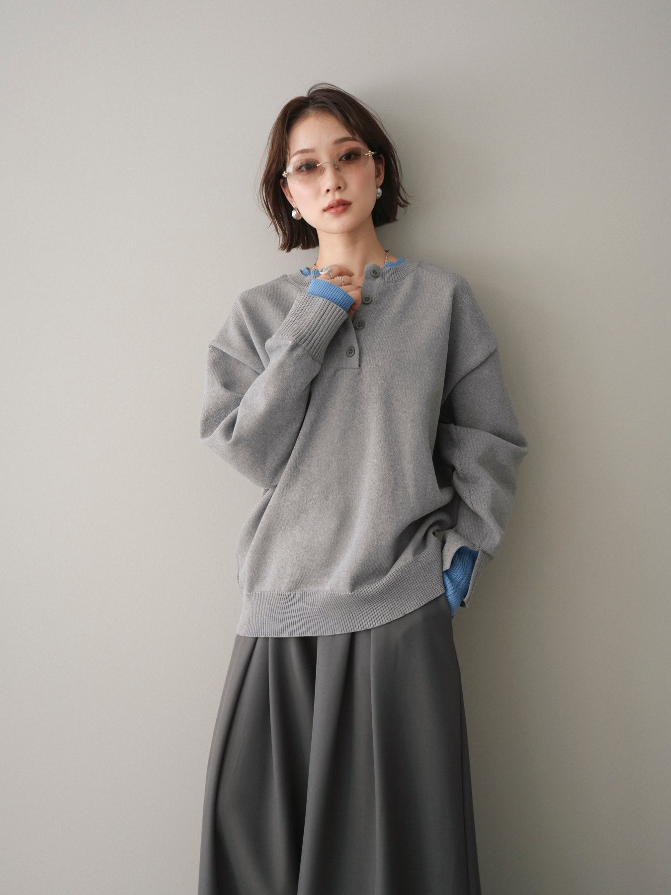 [予約]2WAYネック配色レイヤードニットプルオーバー/gray