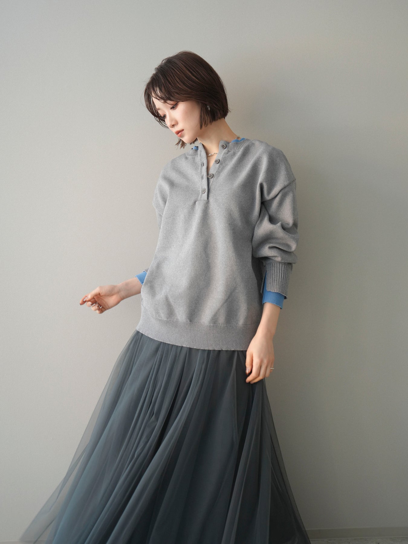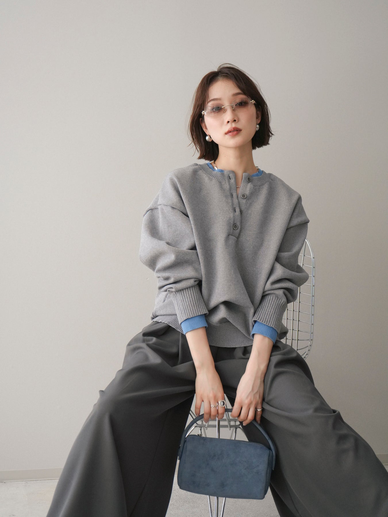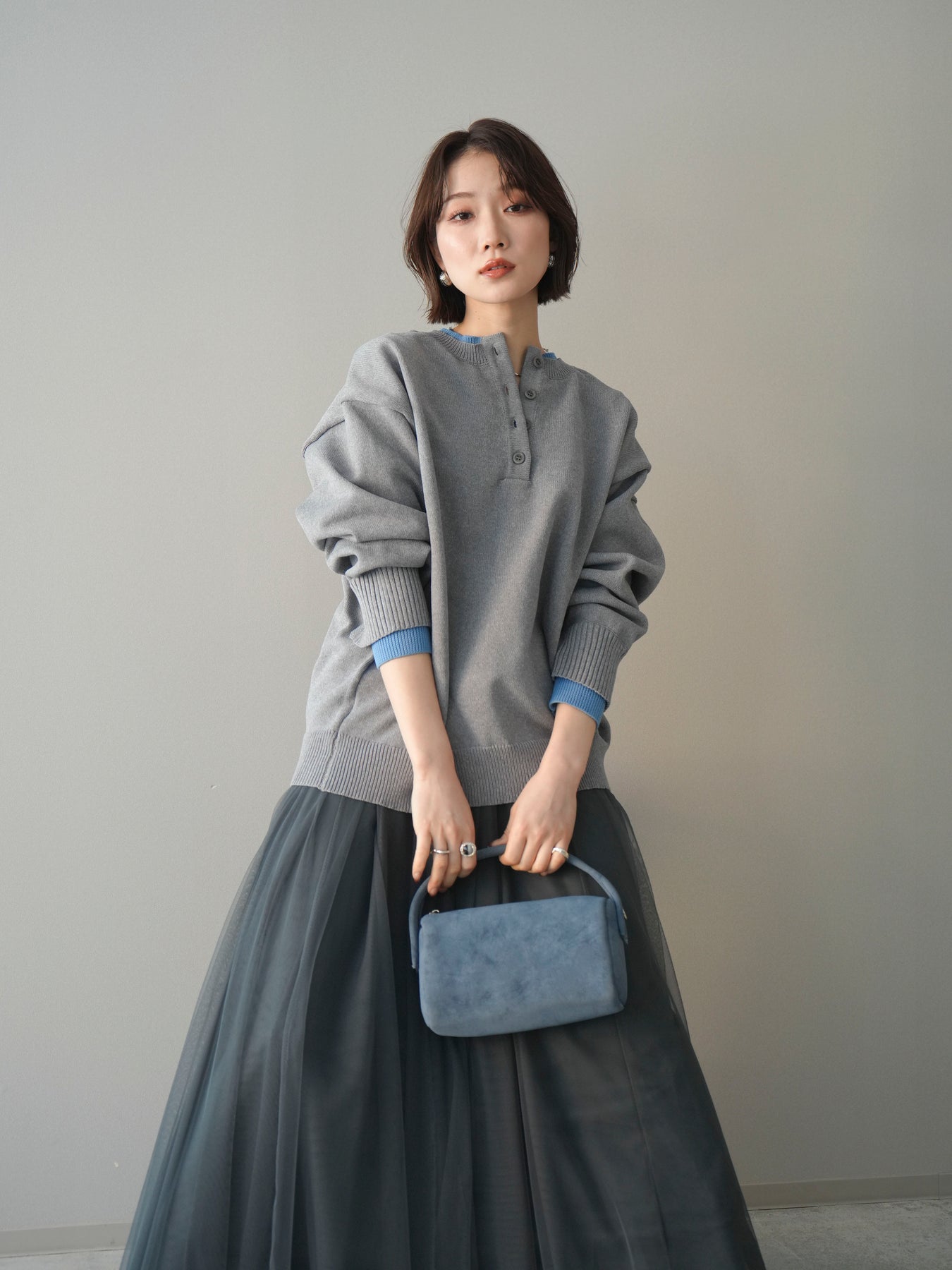 [予約]2WAYネック配色レイヤードニットプルオーバー/gray