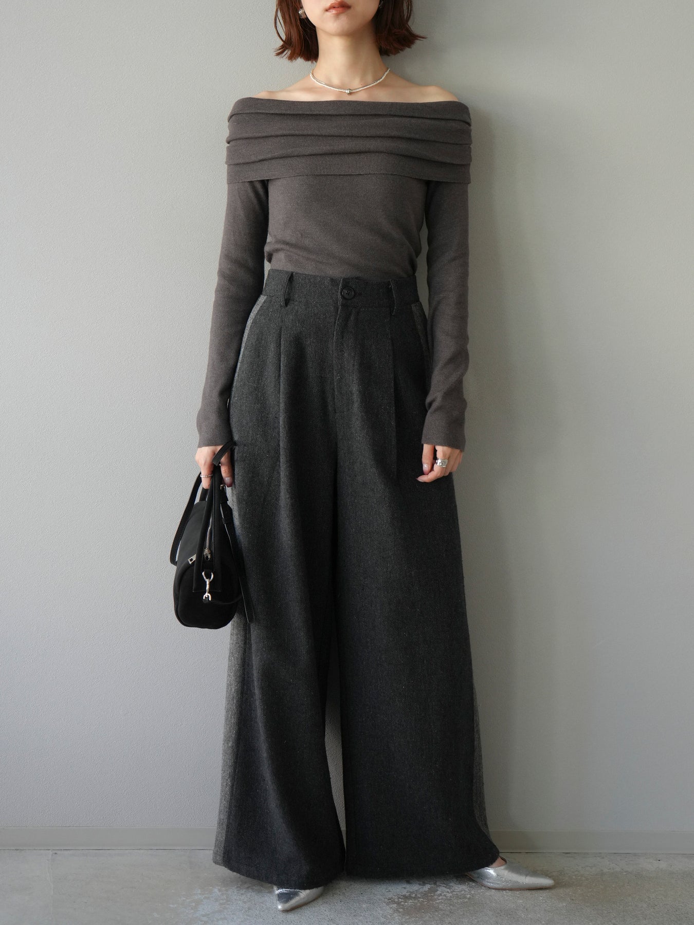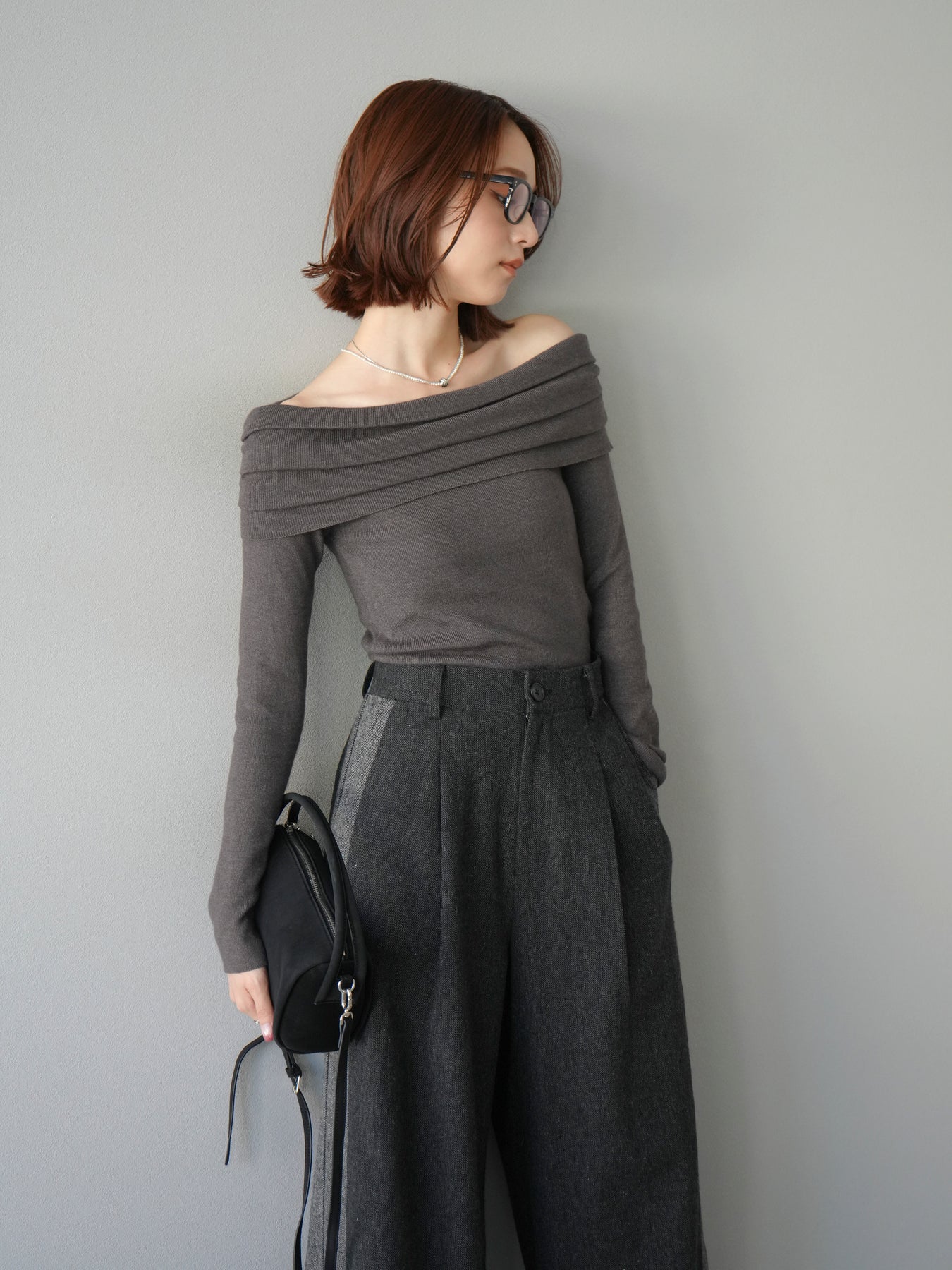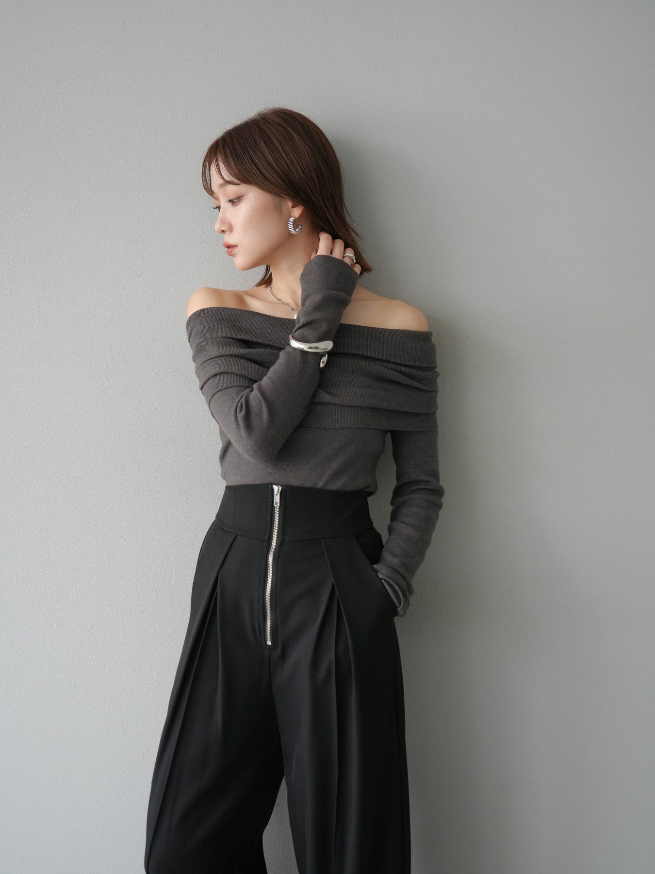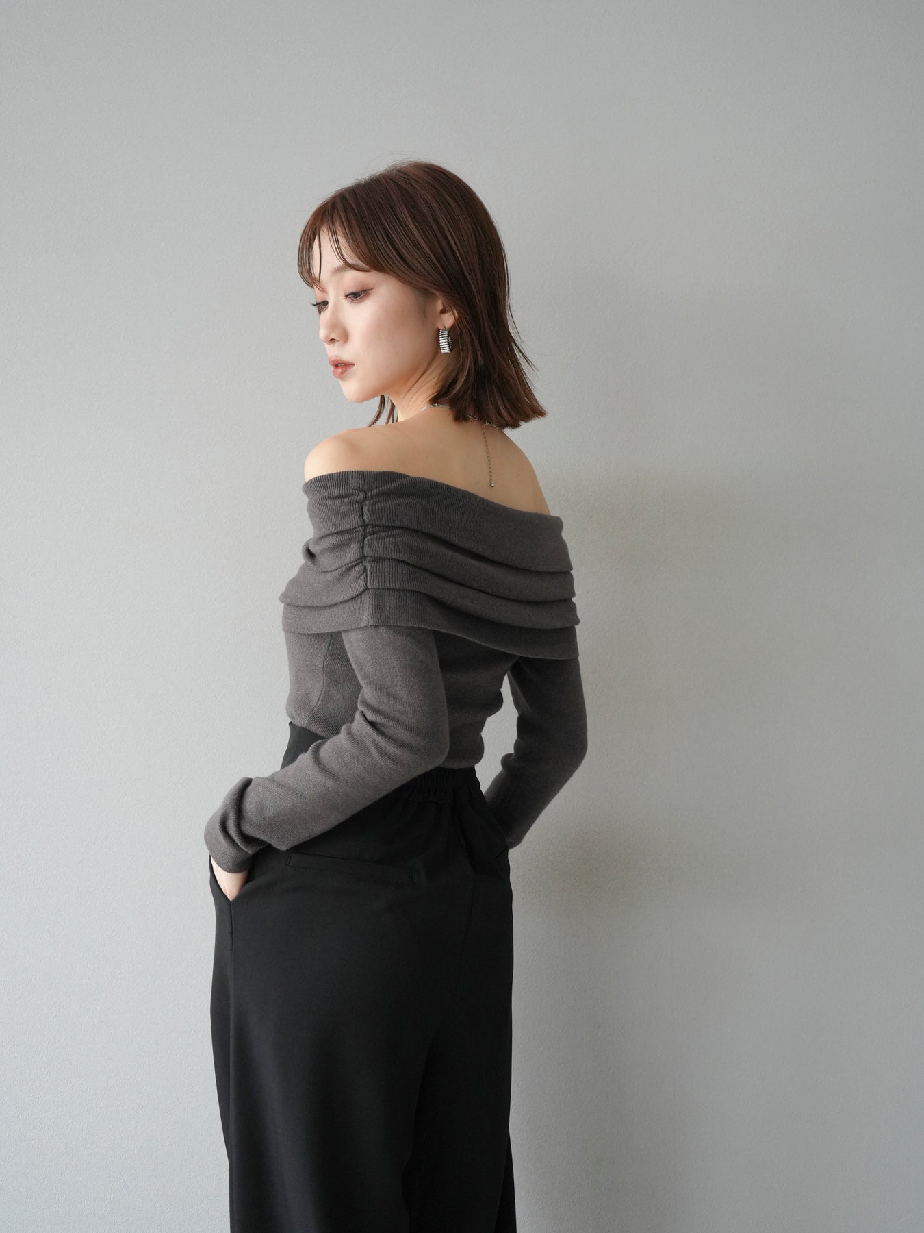 [予約]オフショルニットプルオーバー/チャコール