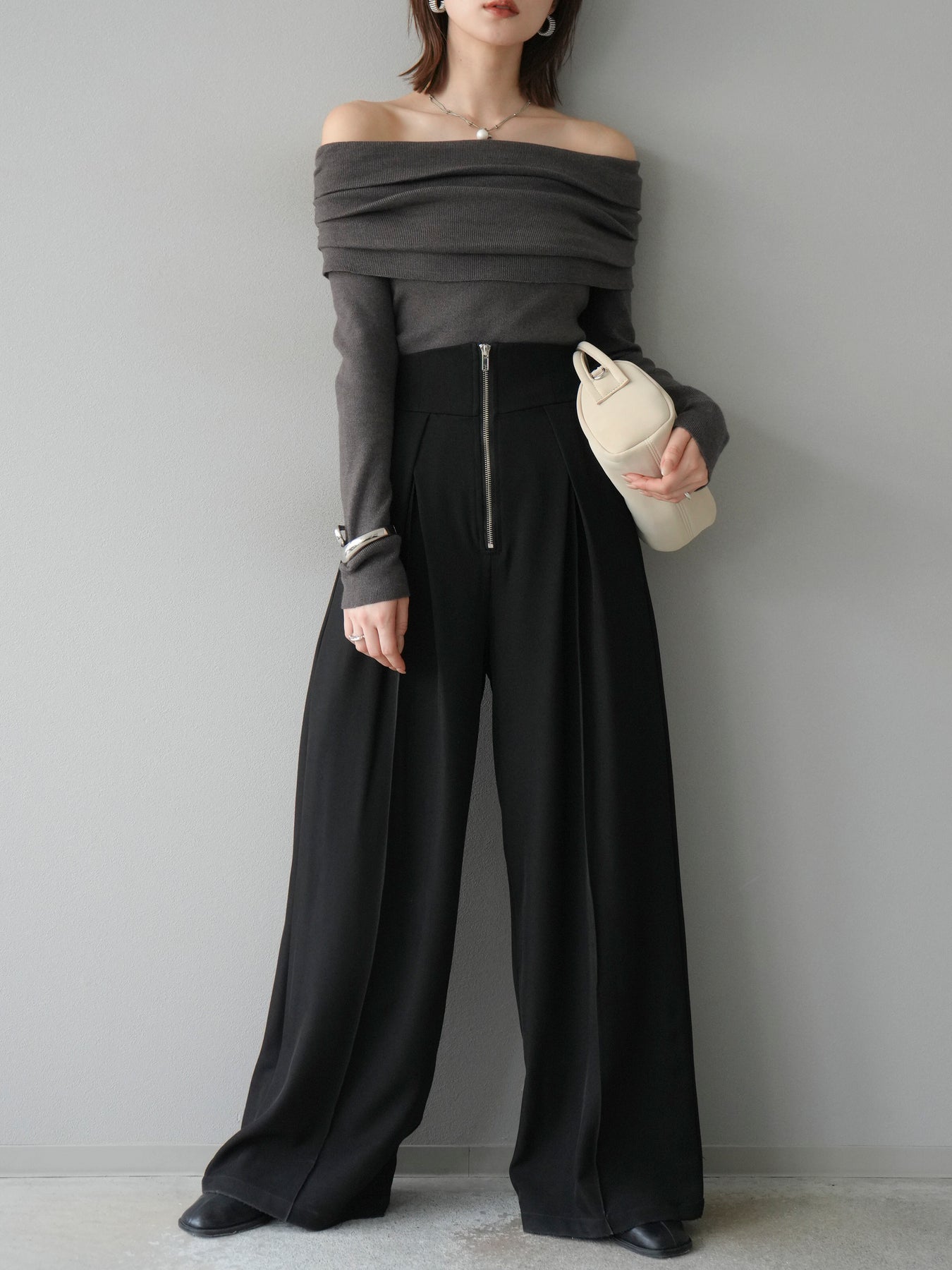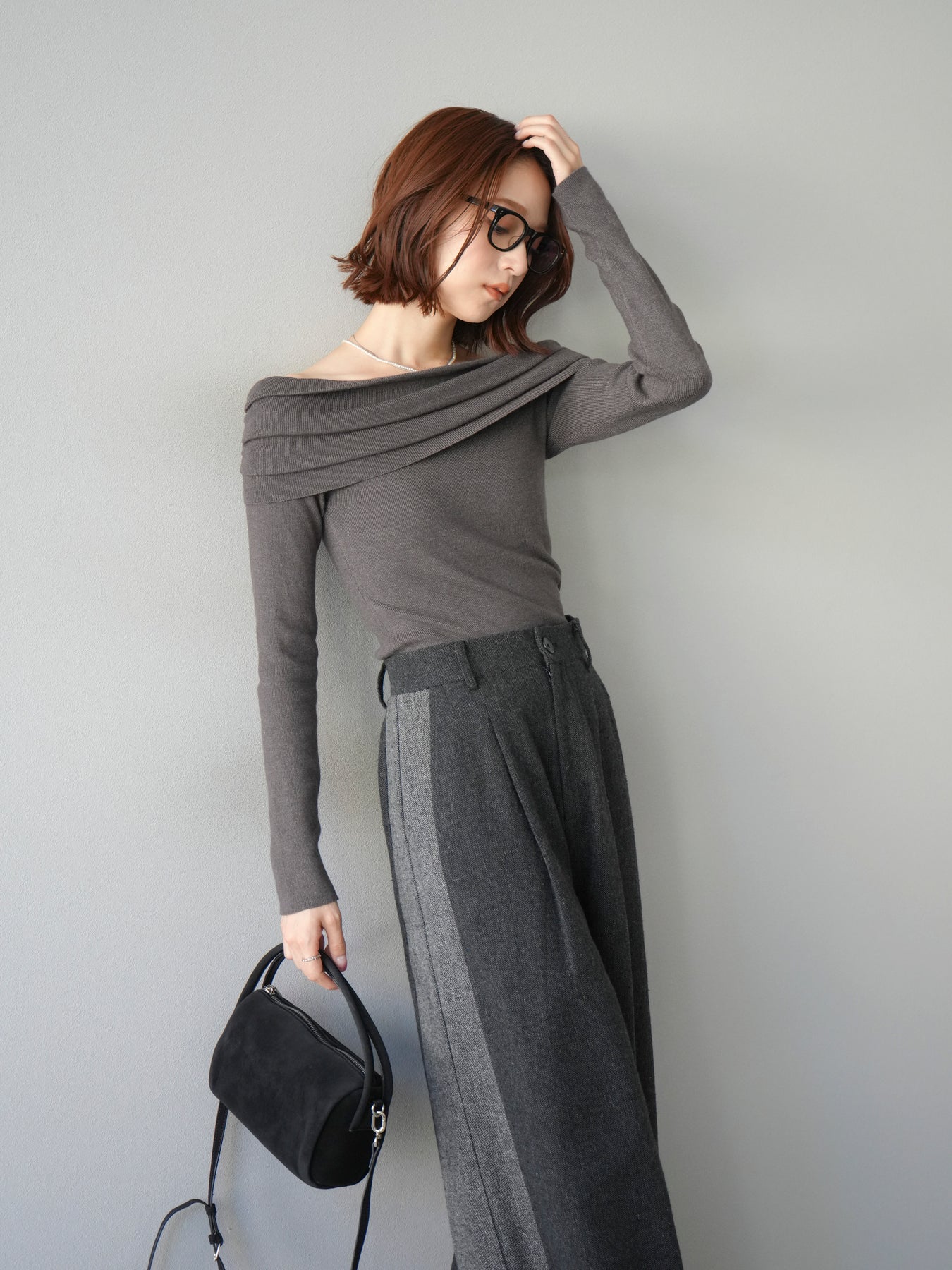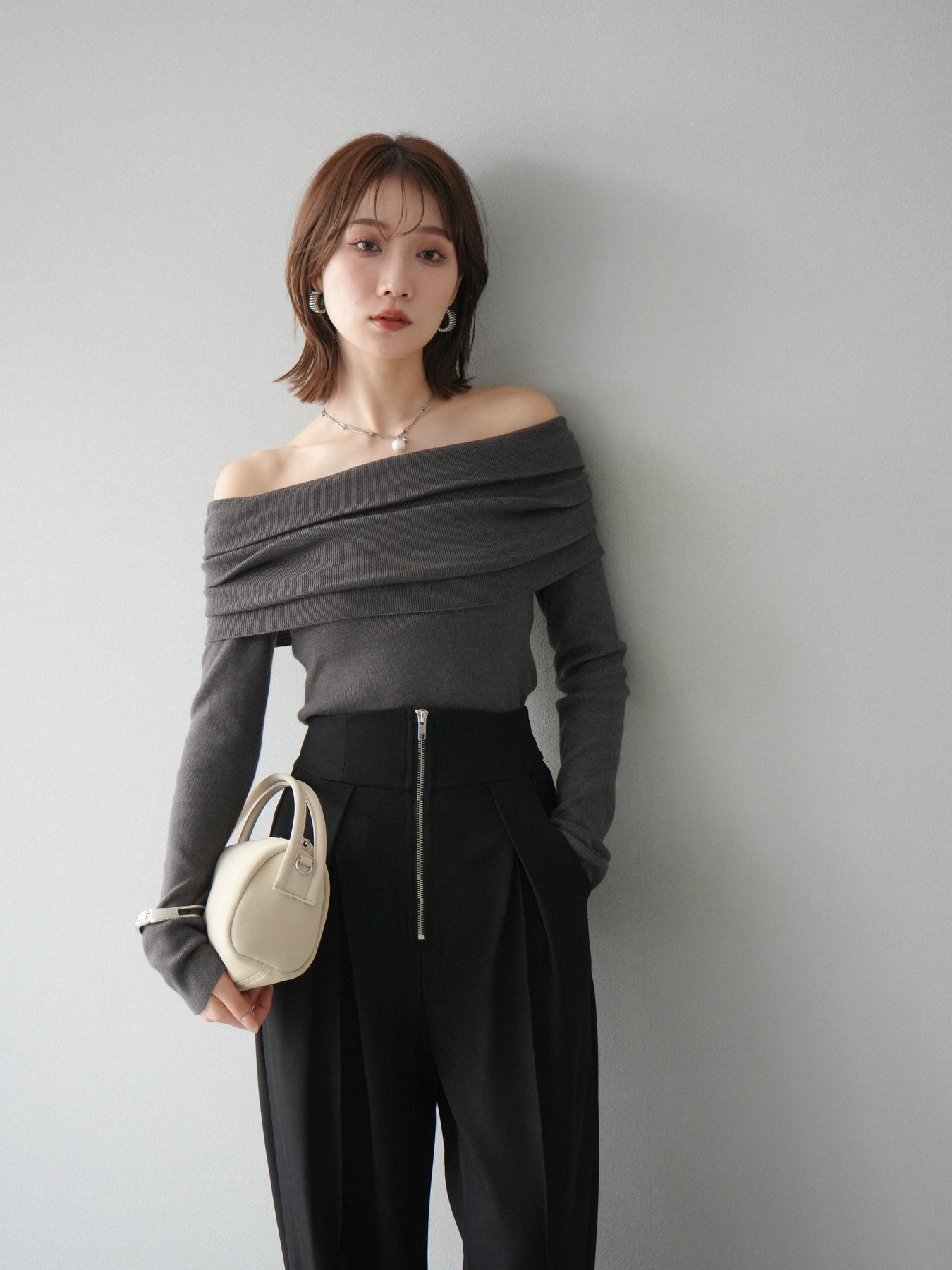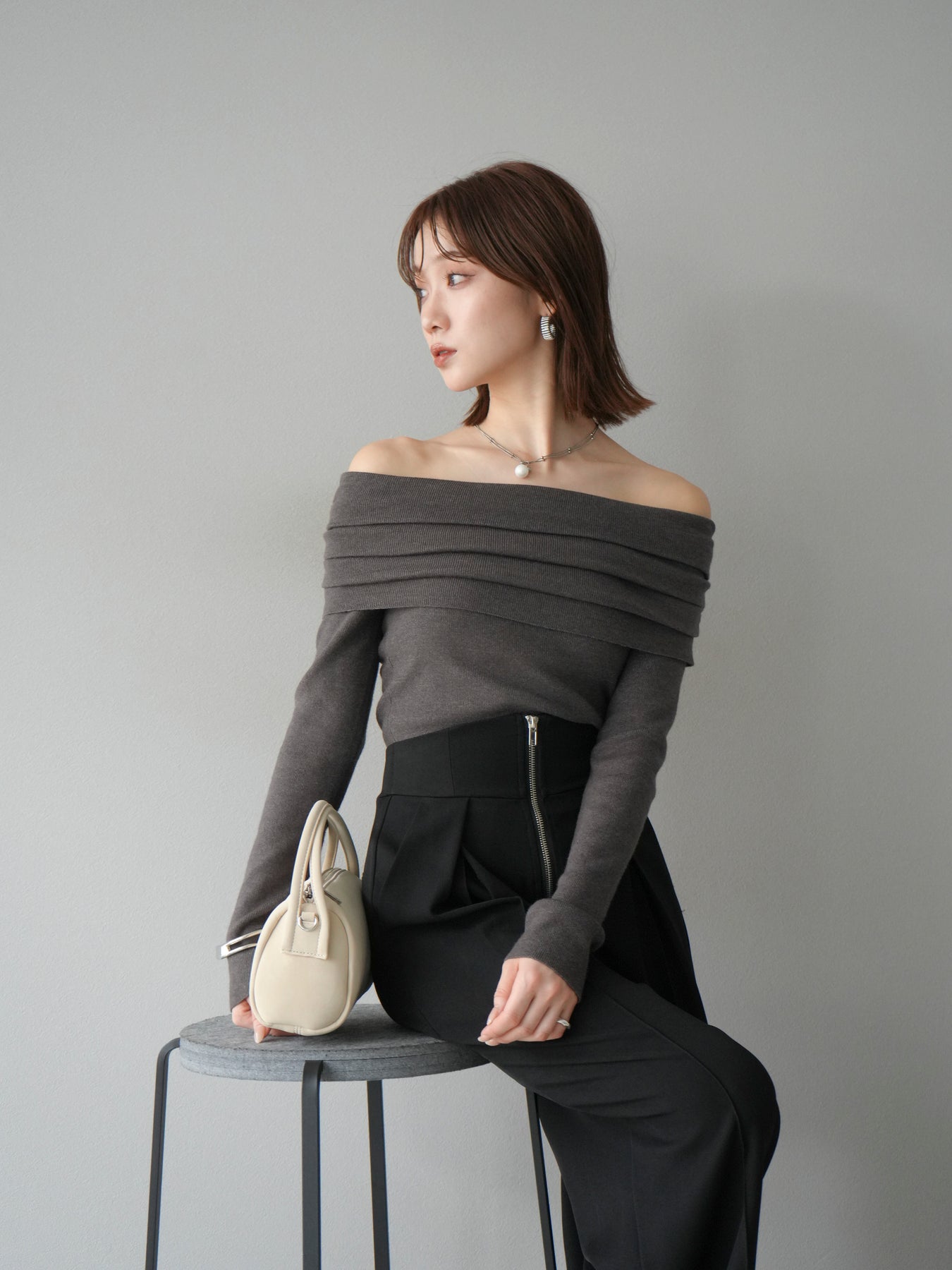[予約]オフショルニットプルオーバー/チャコール