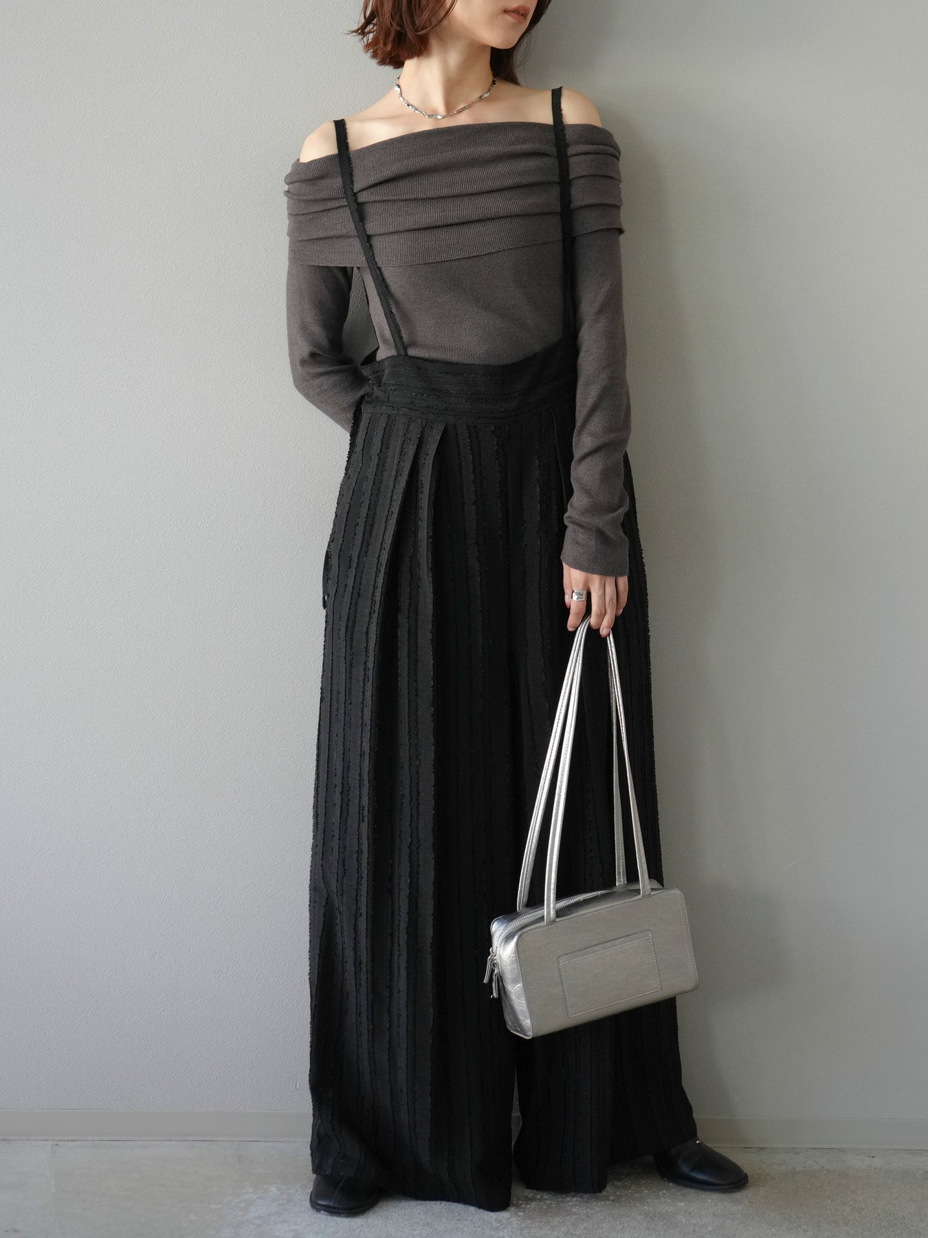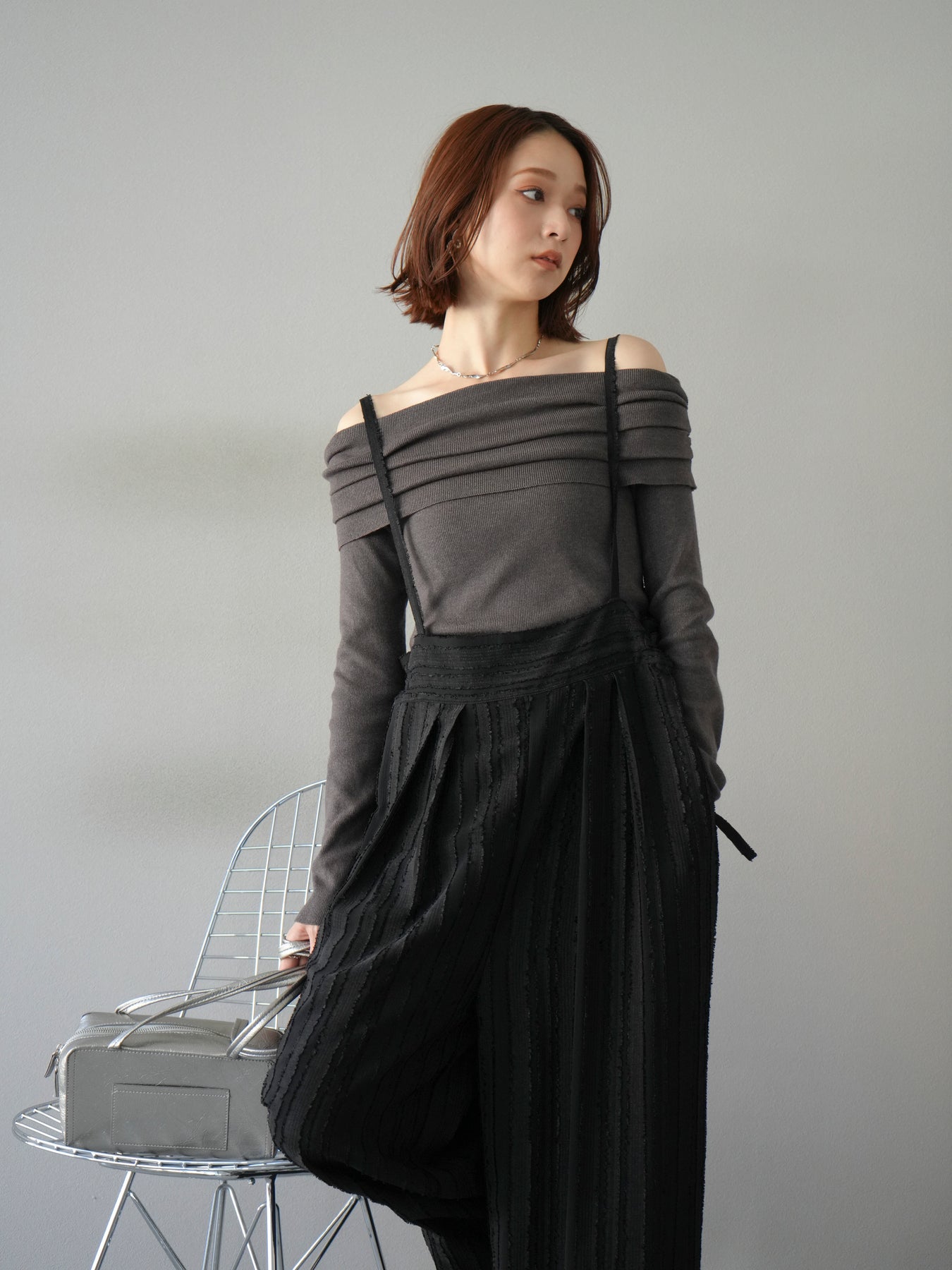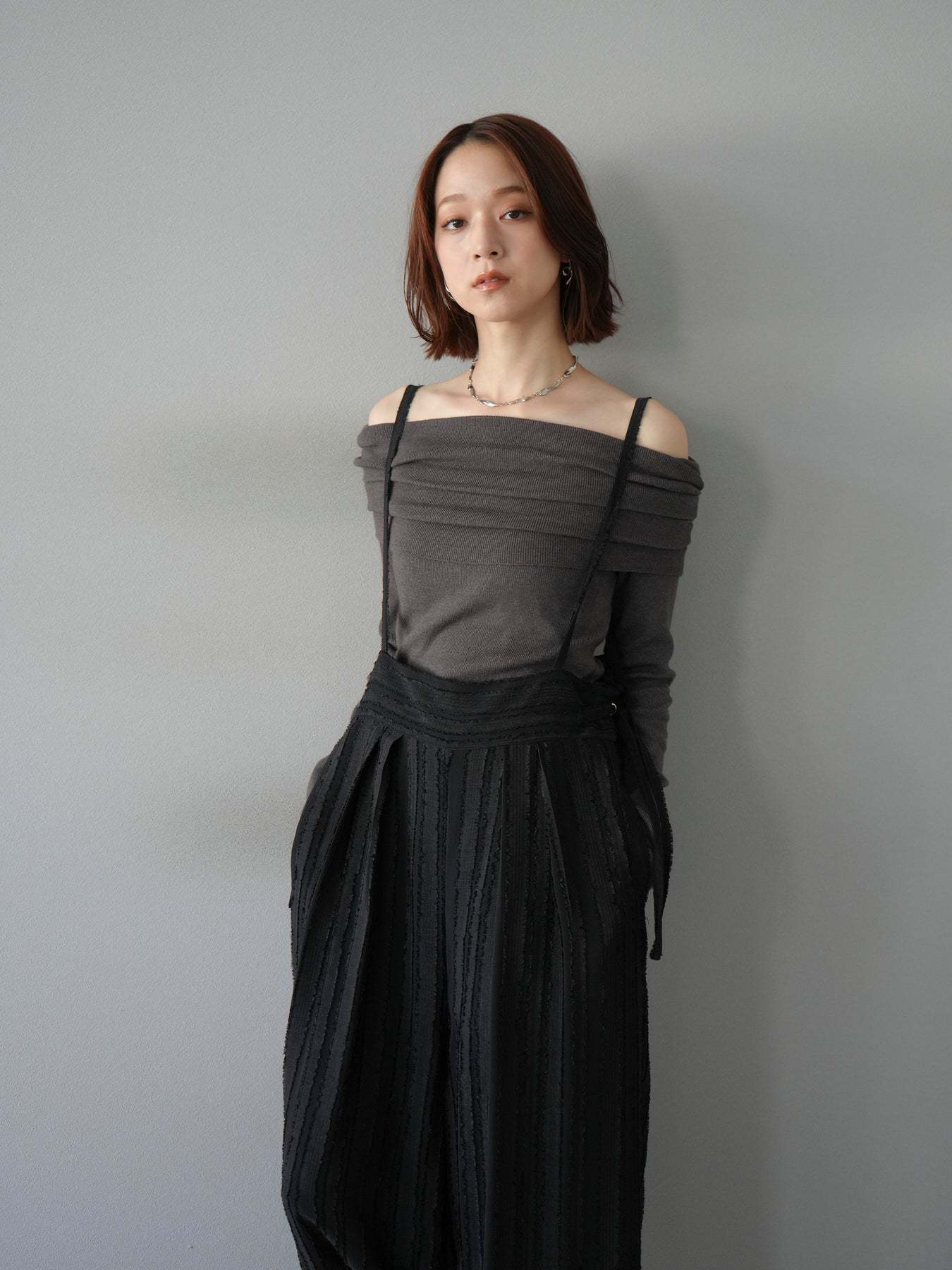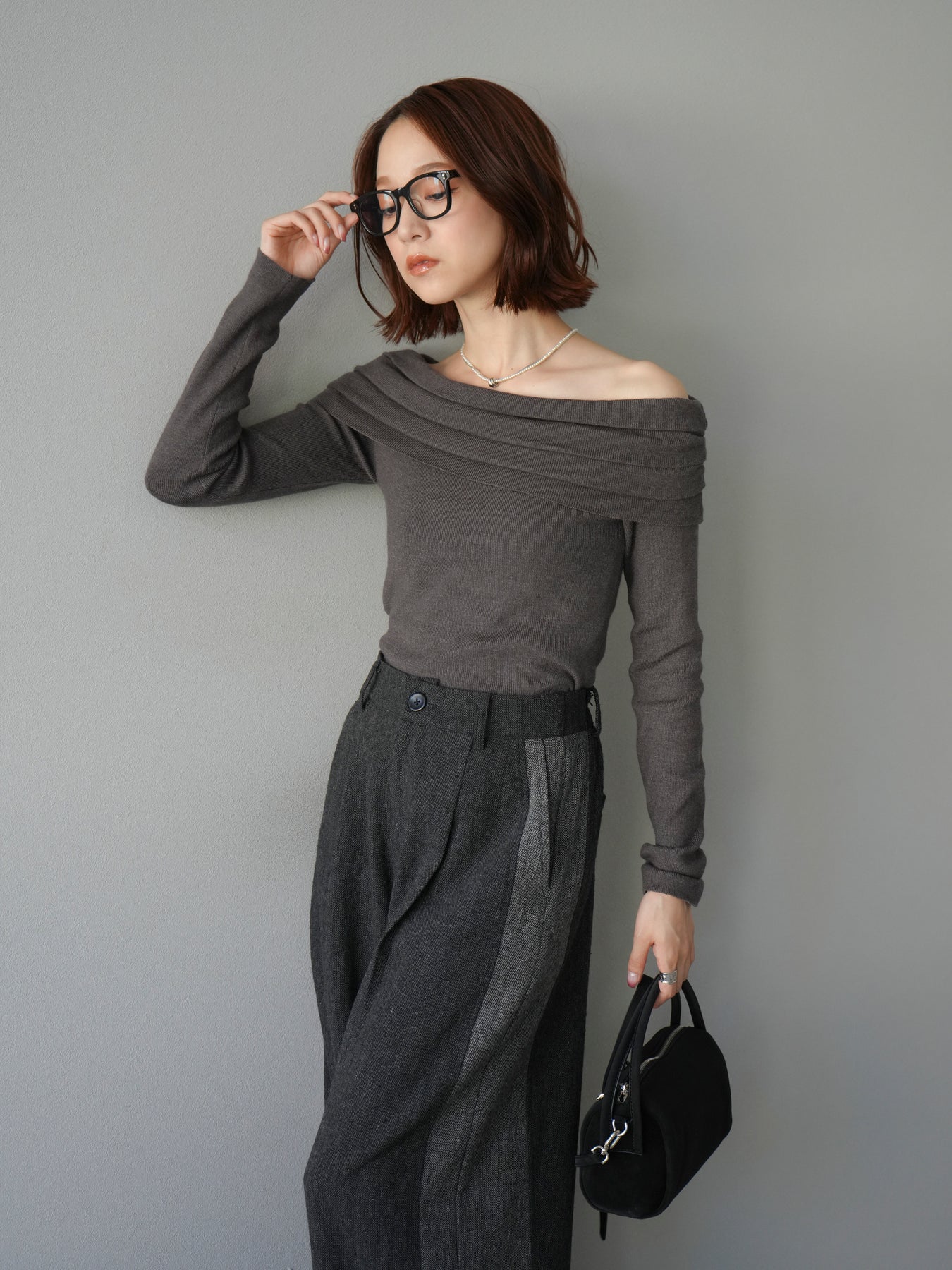 [予約]オフショルニットプルオーバー/チャコール