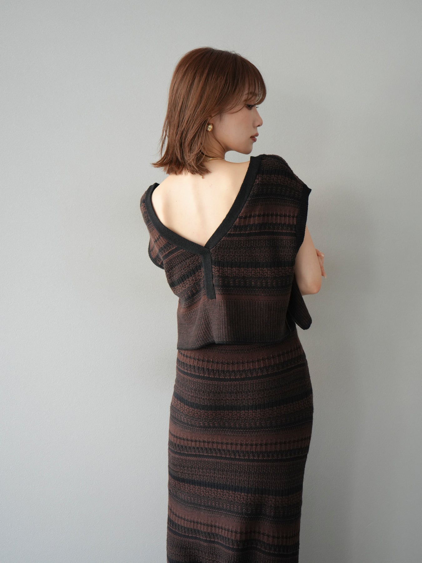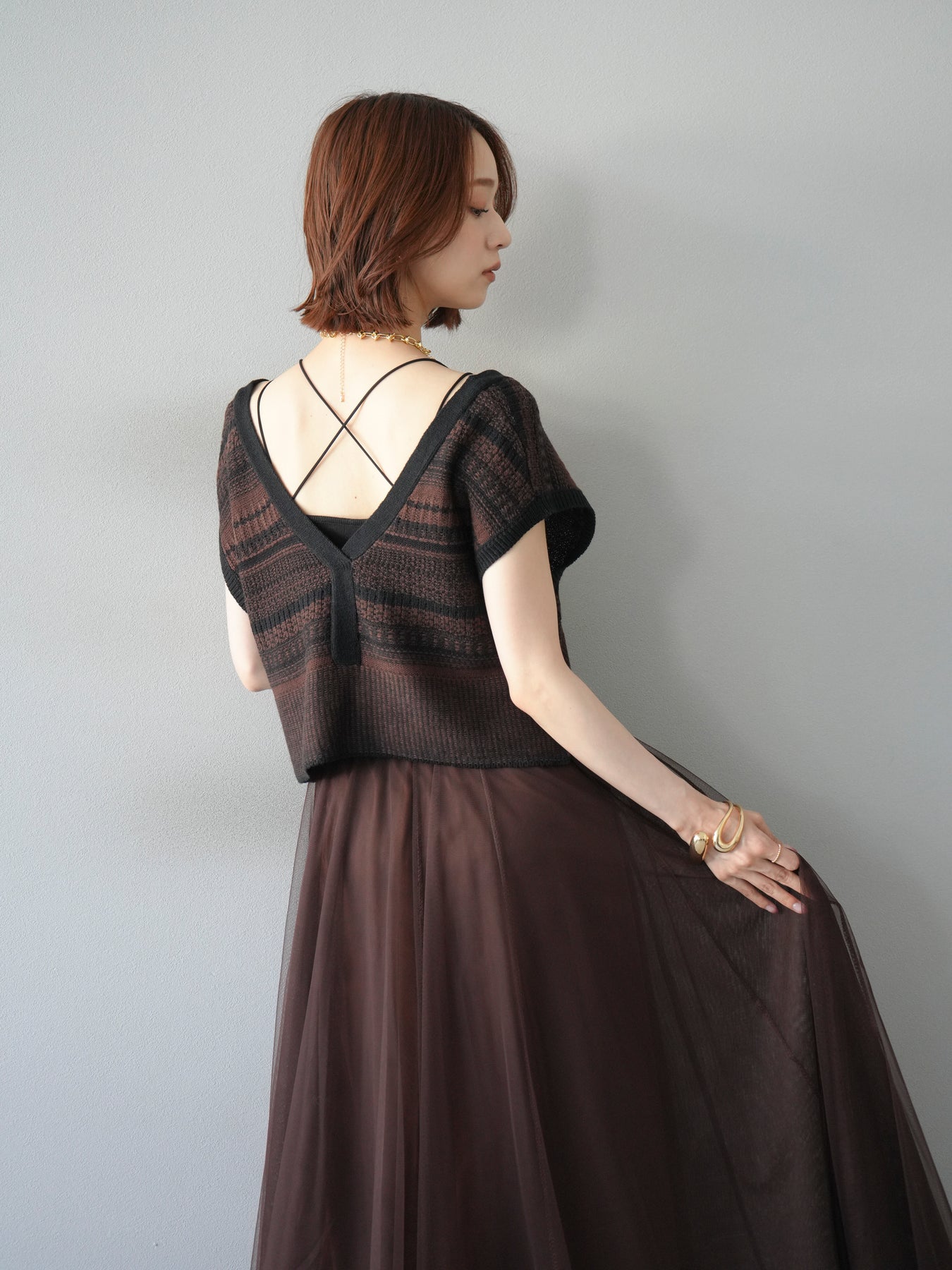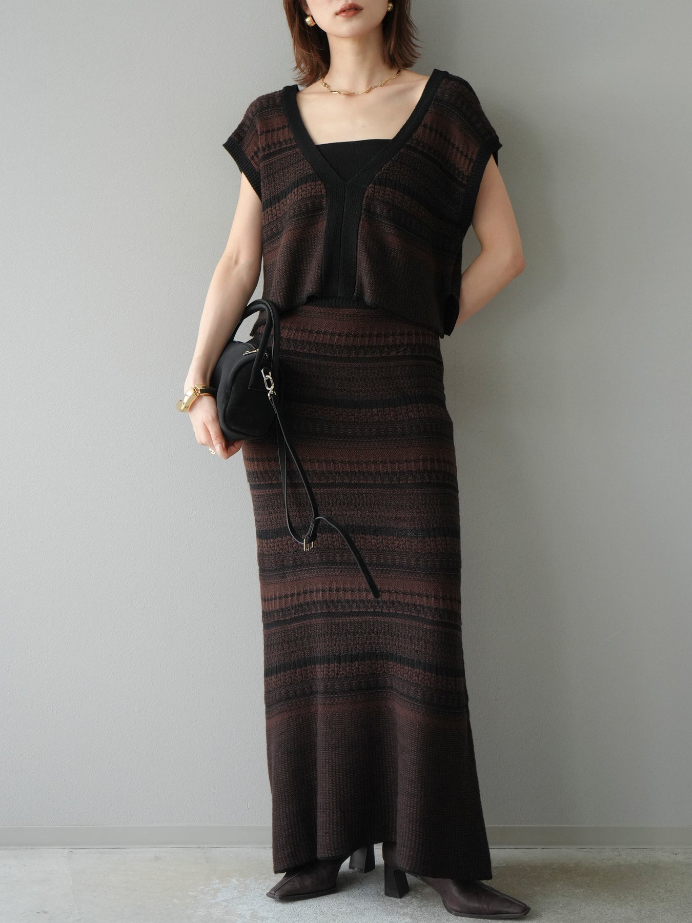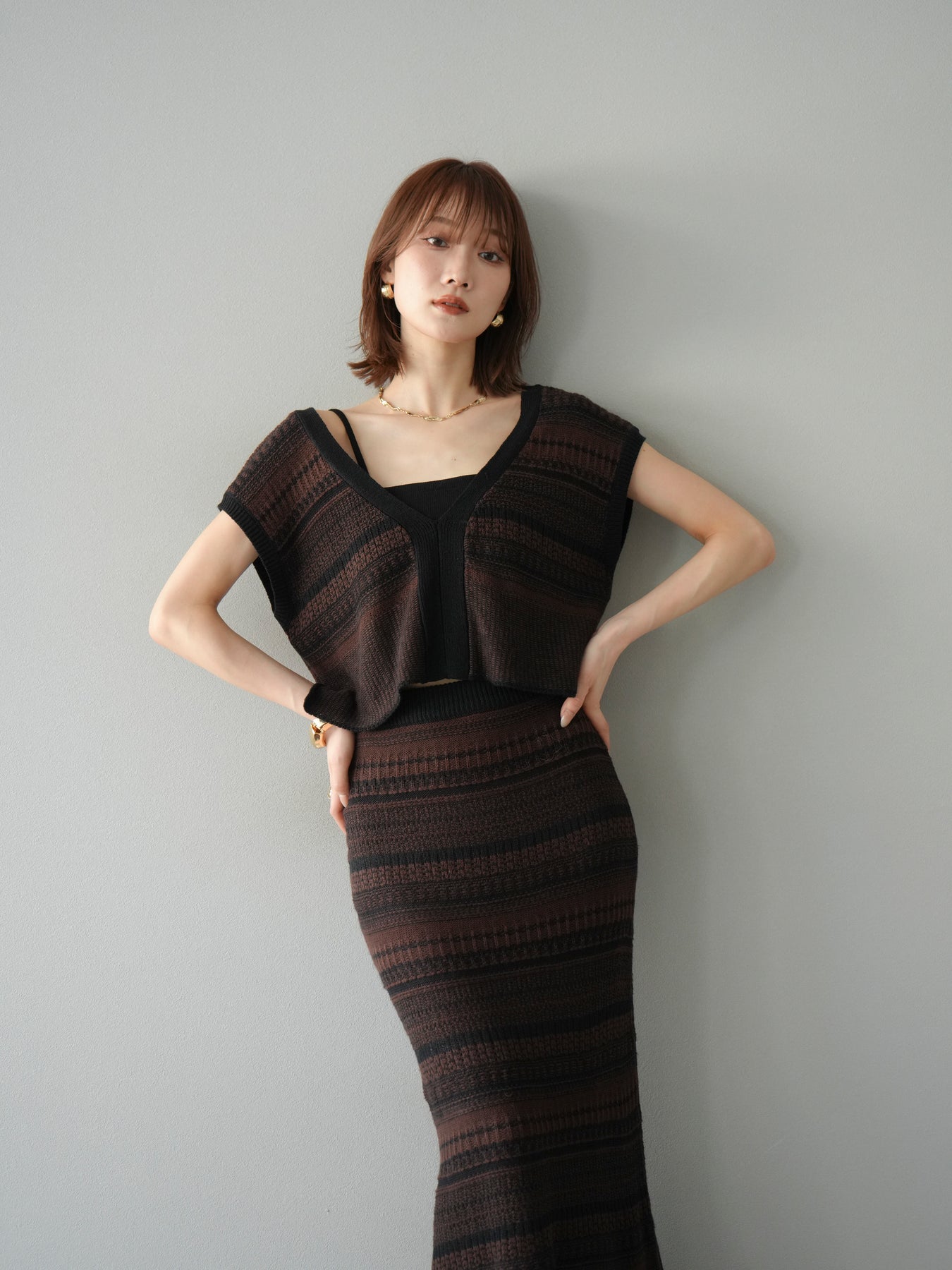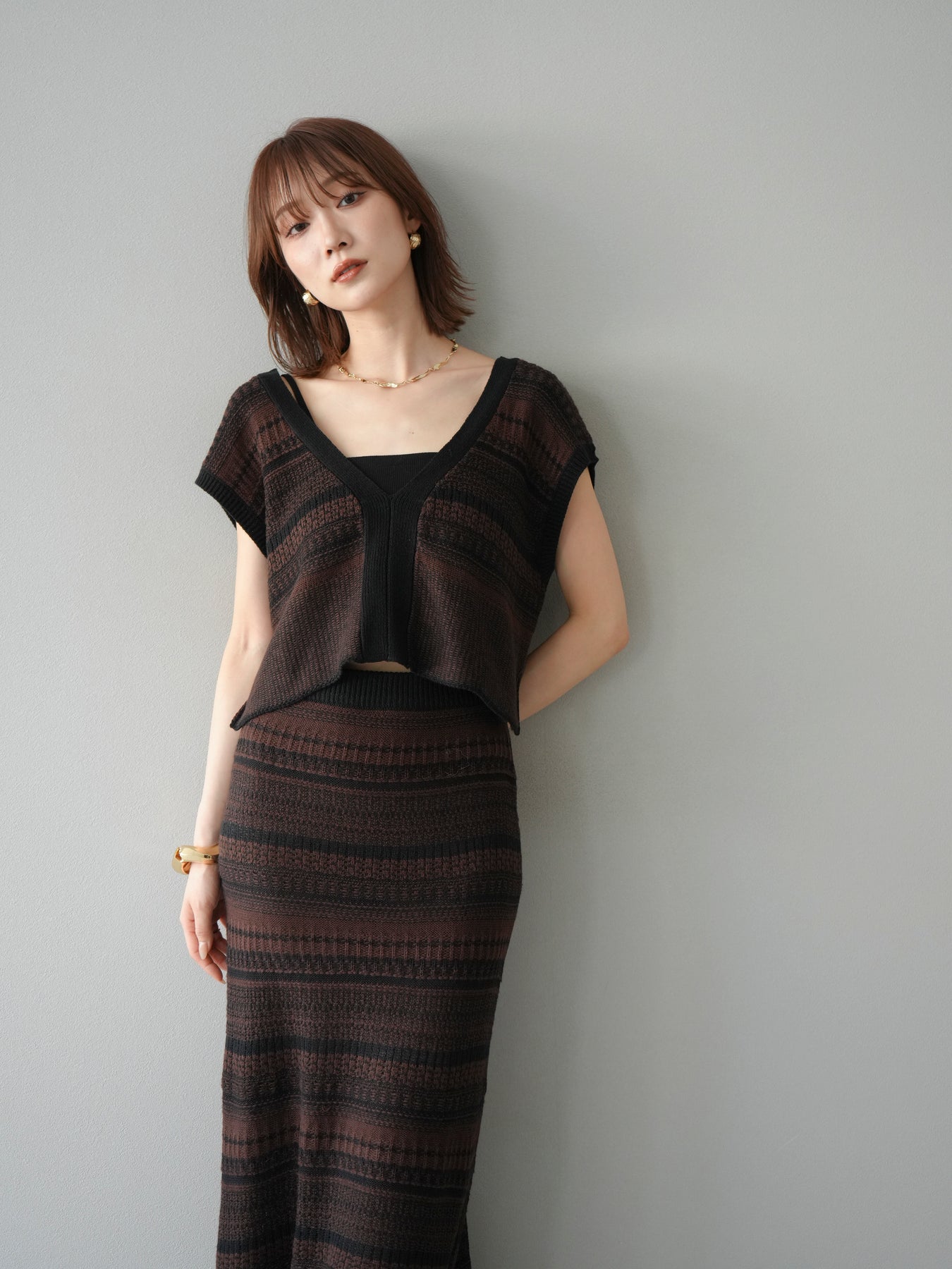 [予約]ガーター編み2WAYニットベスト/ブラウン×ブラック