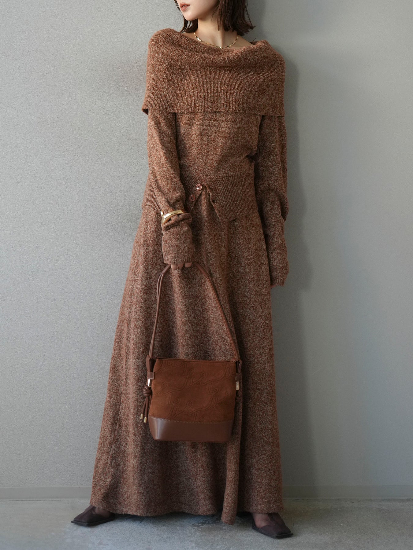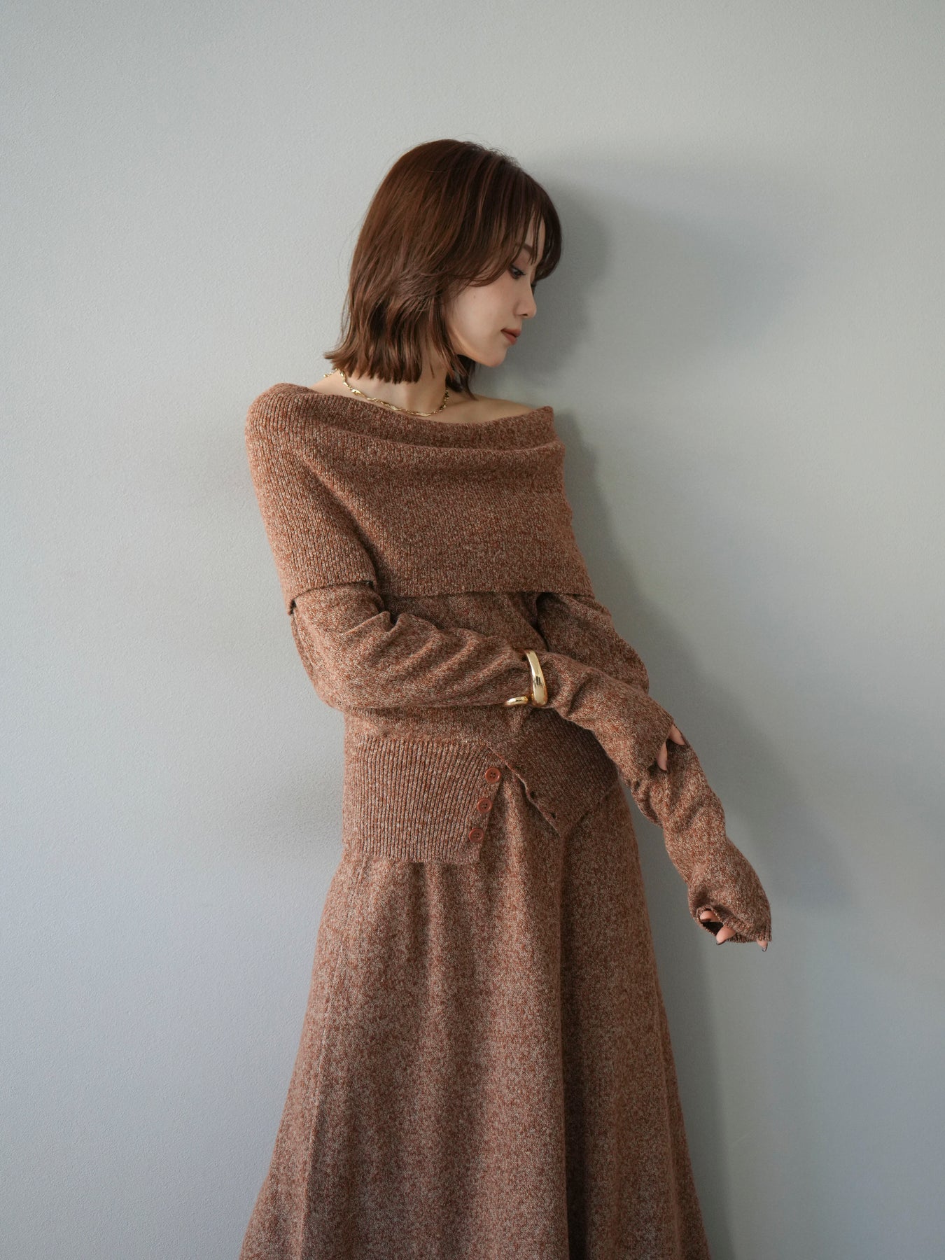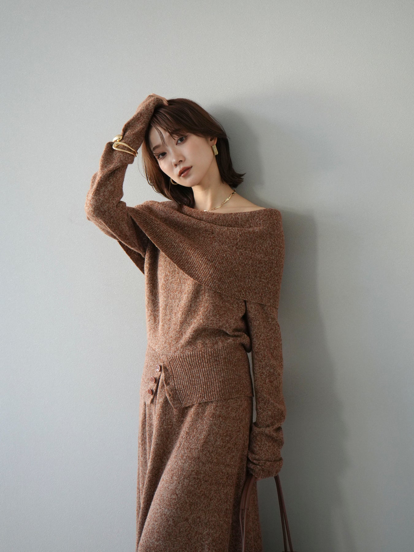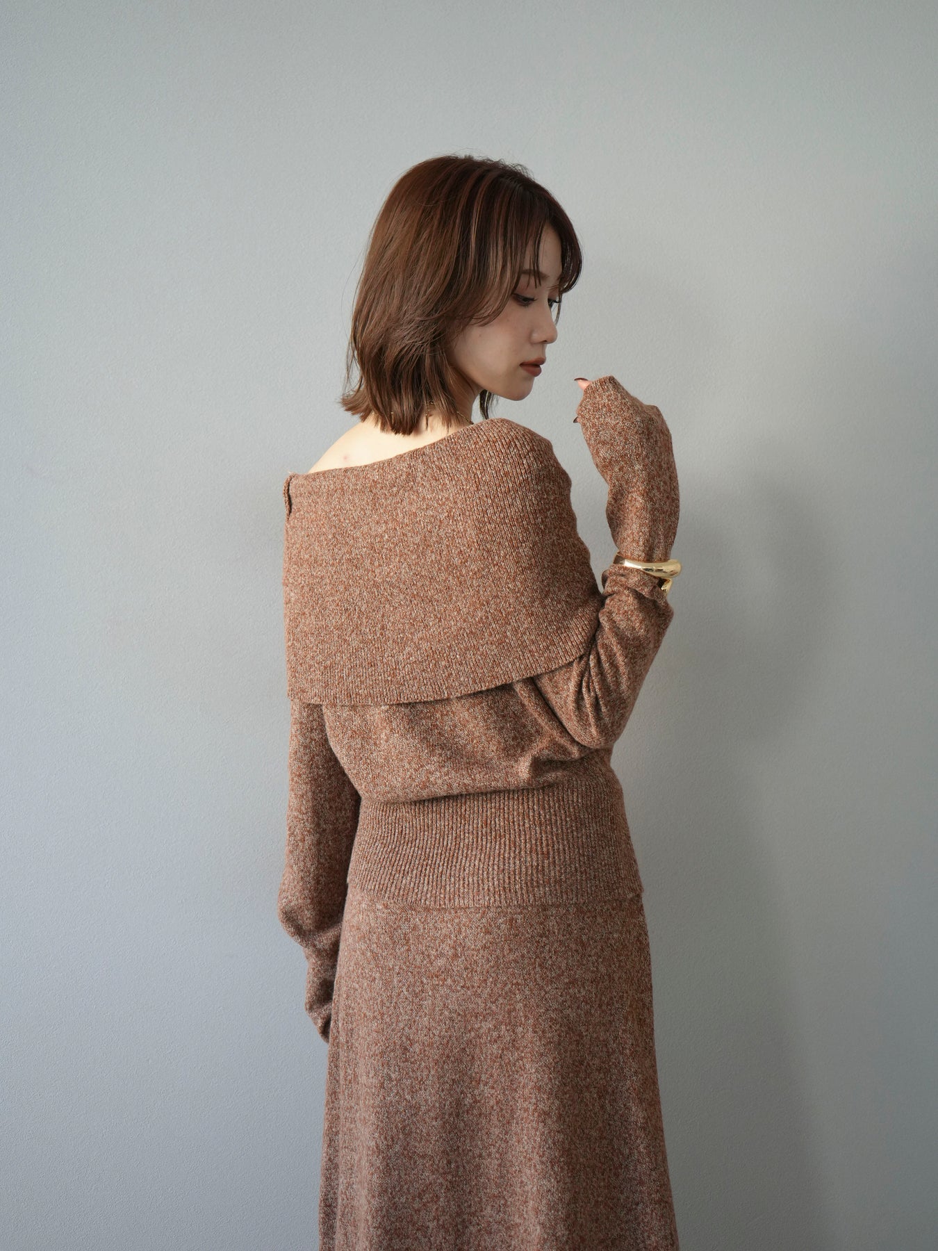 [予約]ミックスヤーンオフショルニットプルオーバー/オレンジ