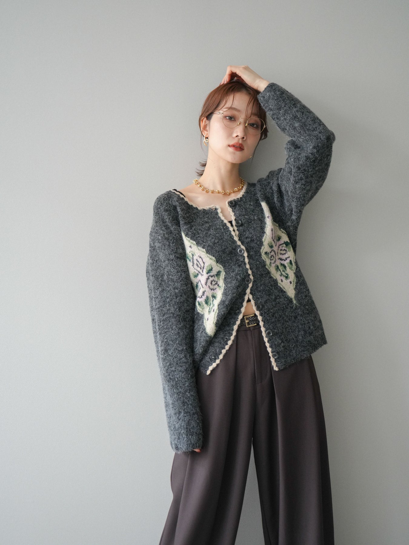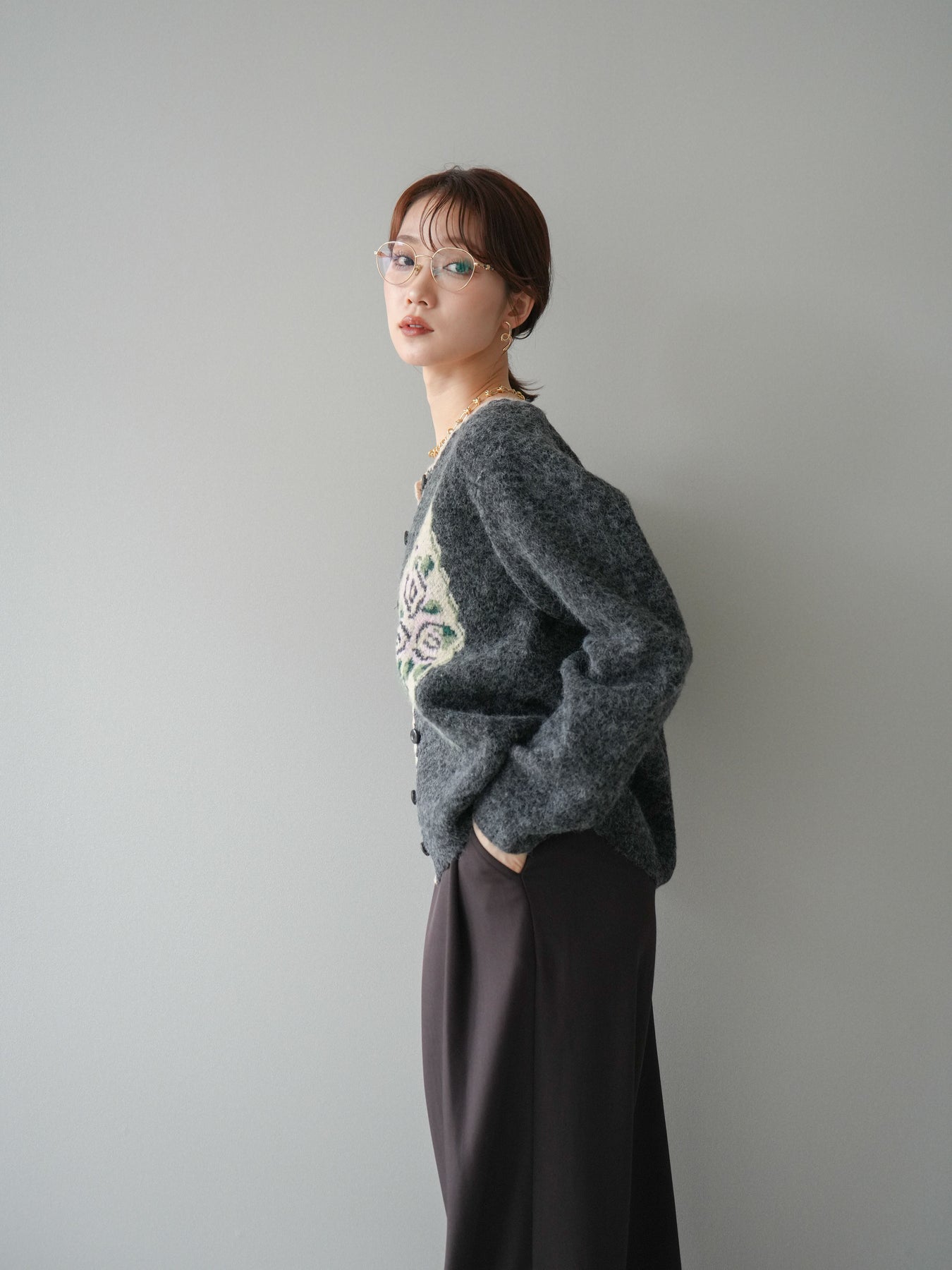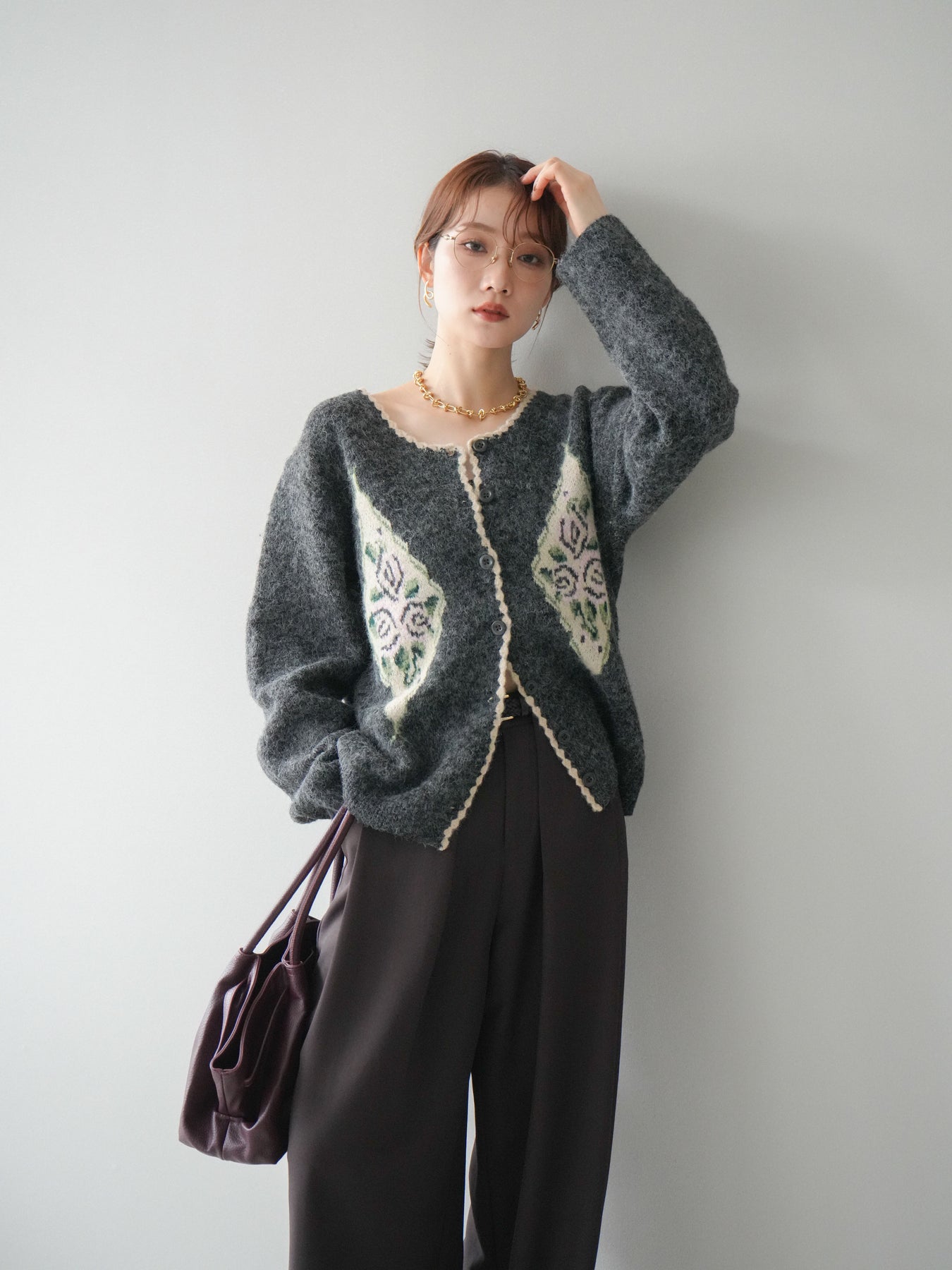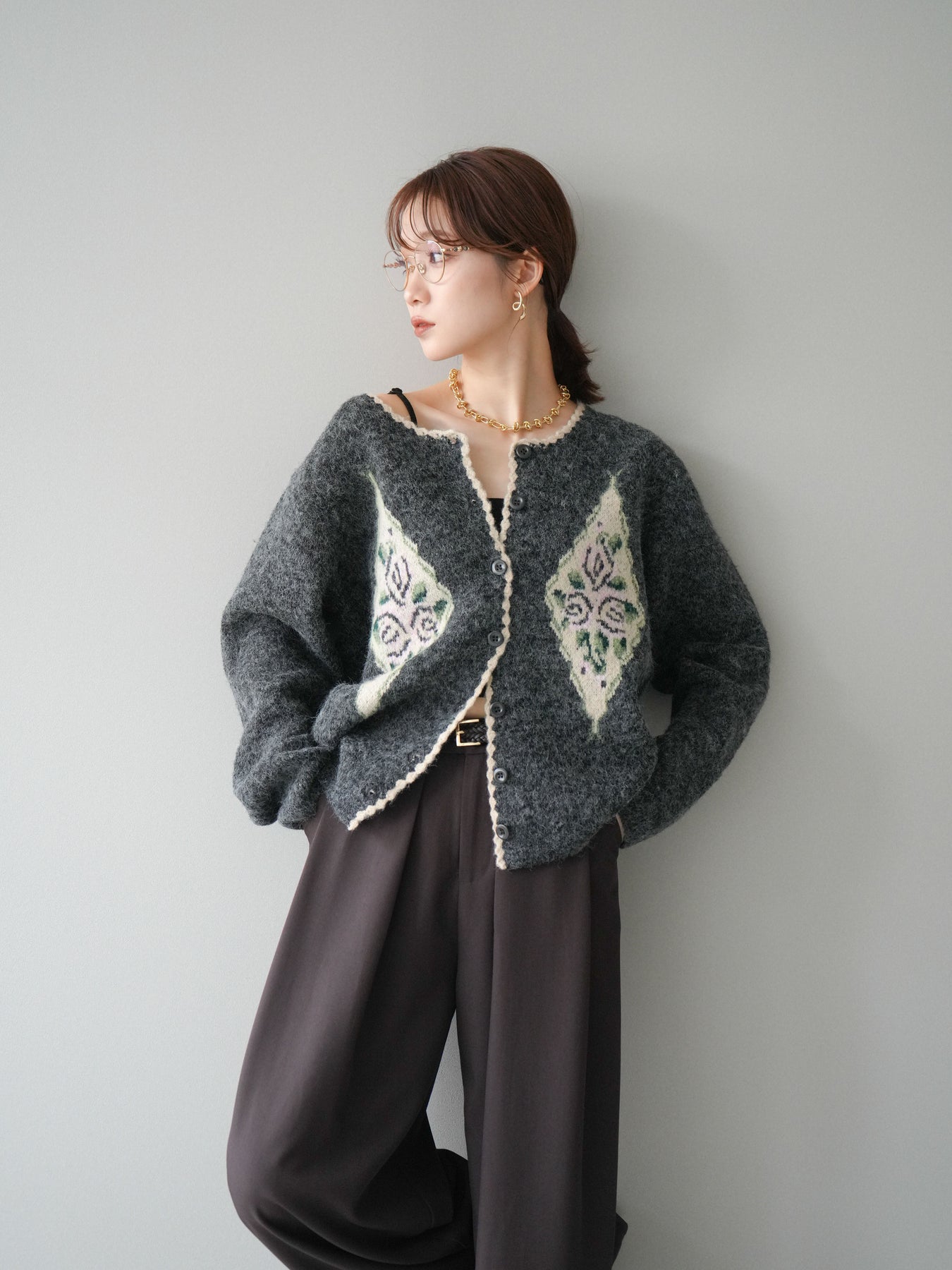 [予約]アンティークフラワージャガードニットカーディガン/charcoal