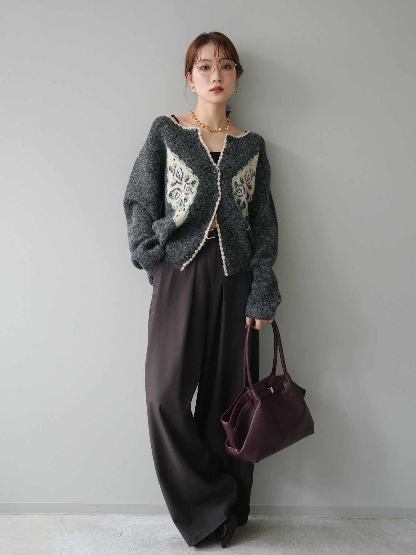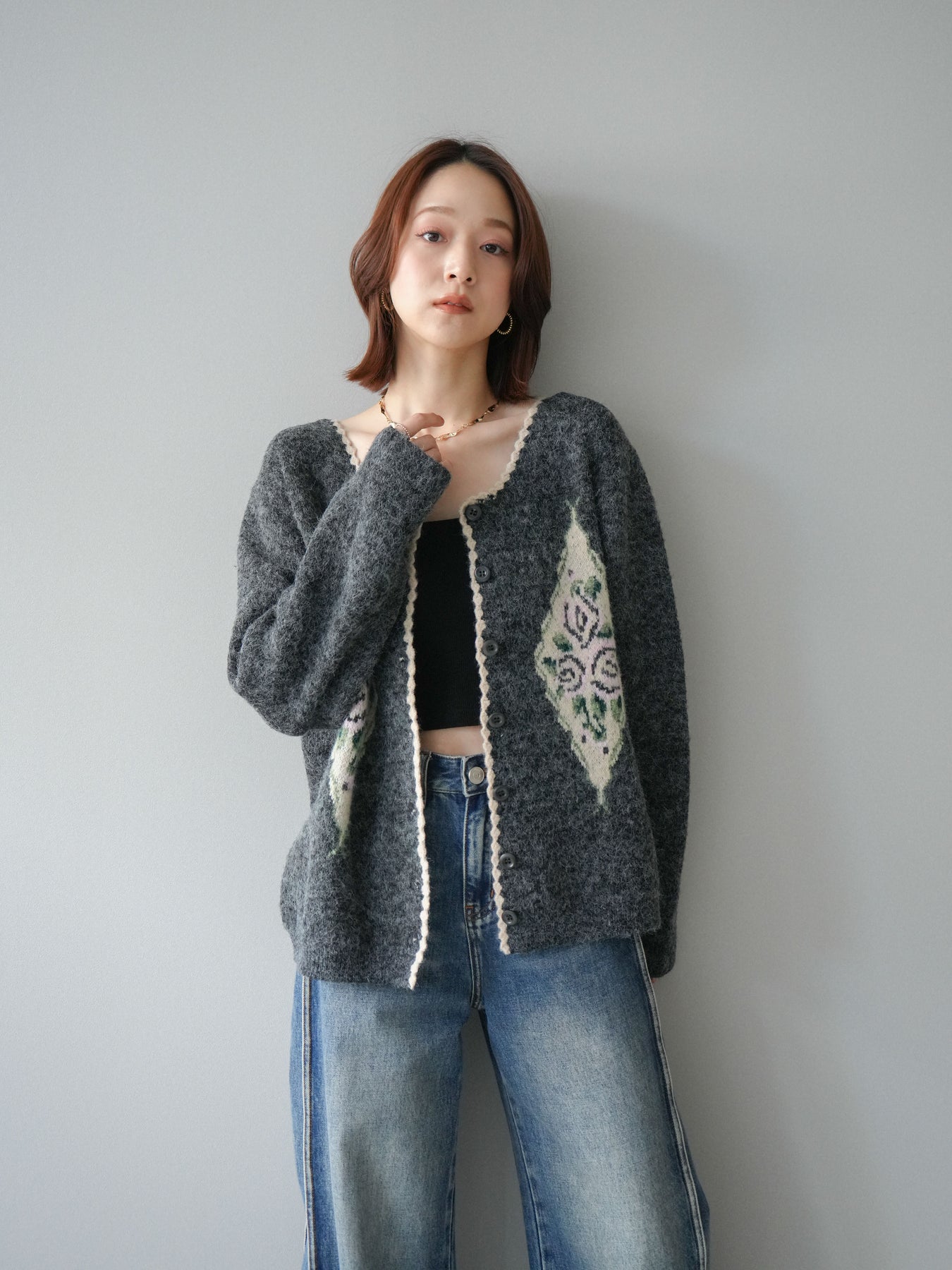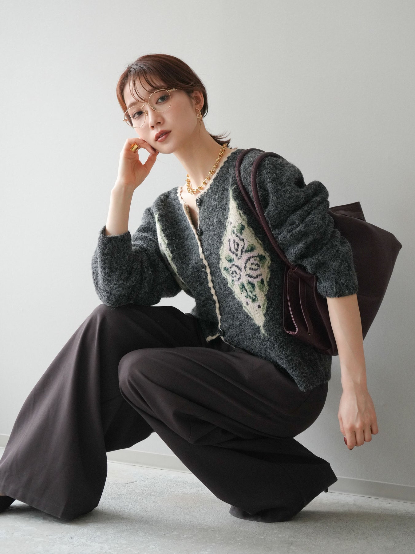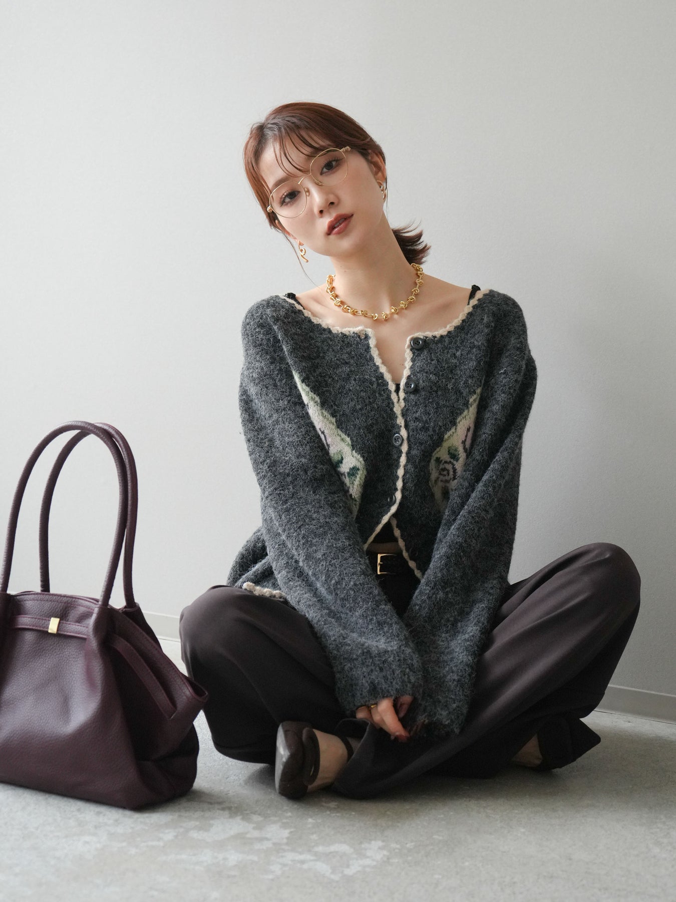 [予約]アンティークフラワージャガードニットカーディガン/charcoal