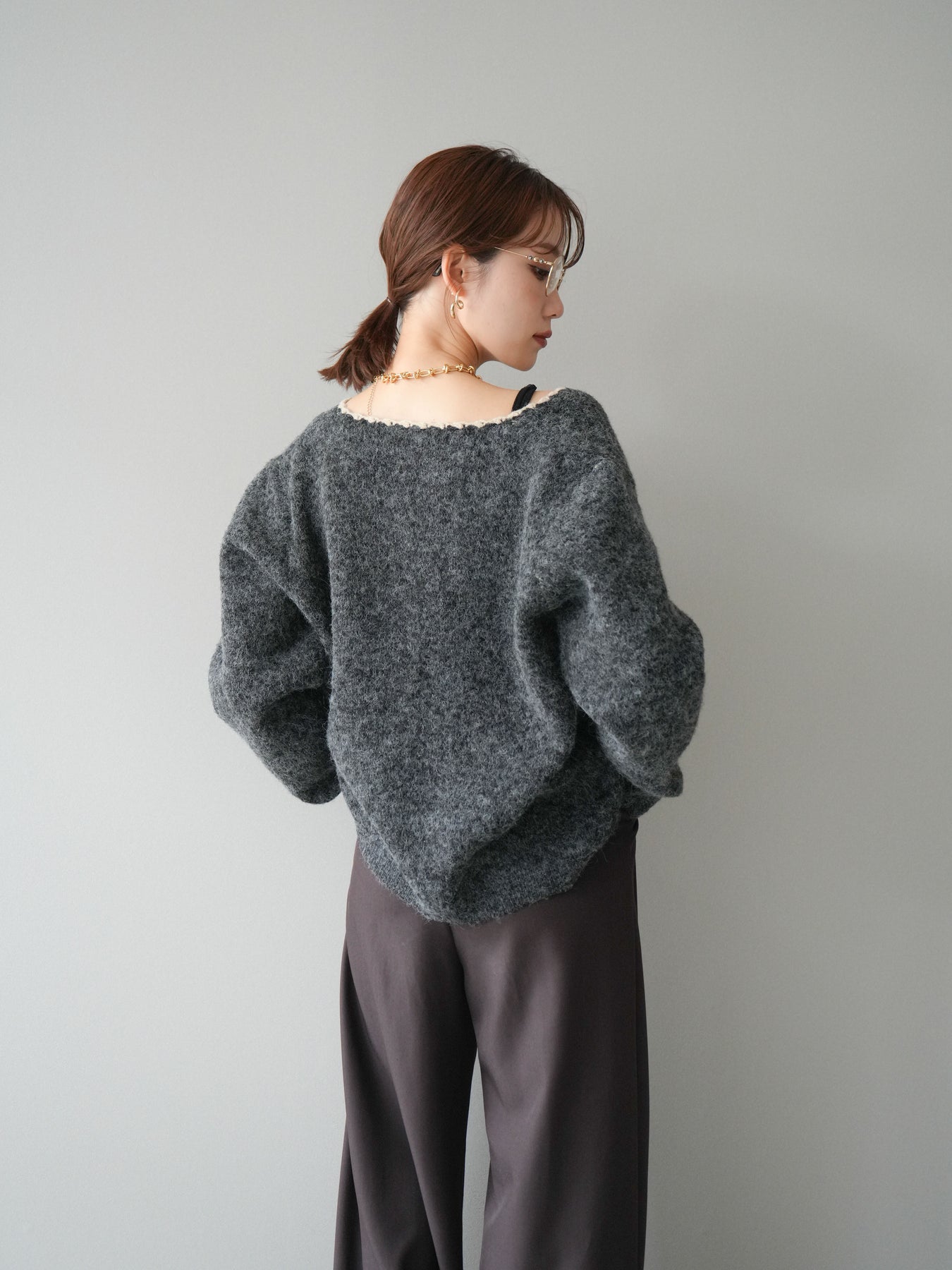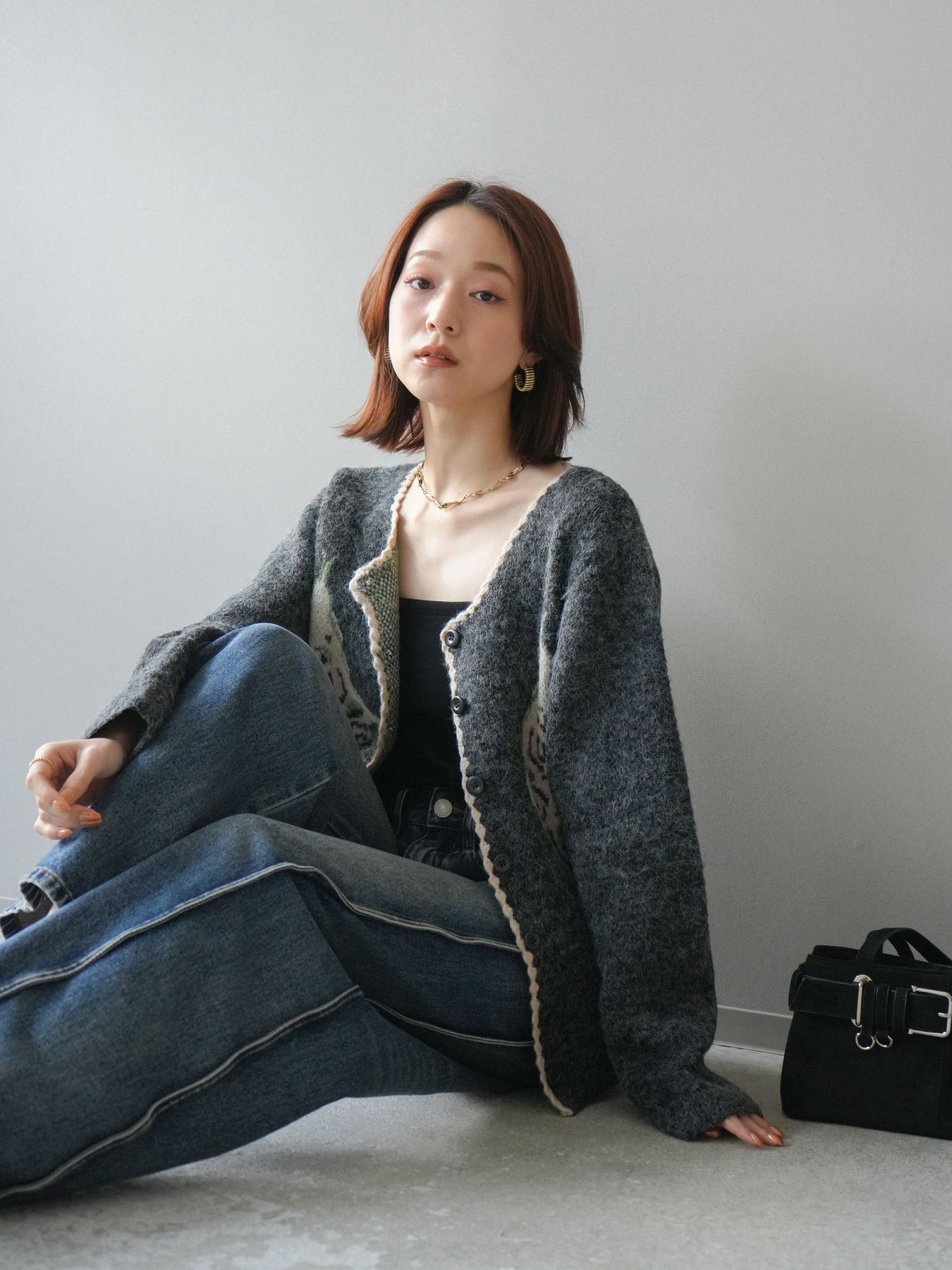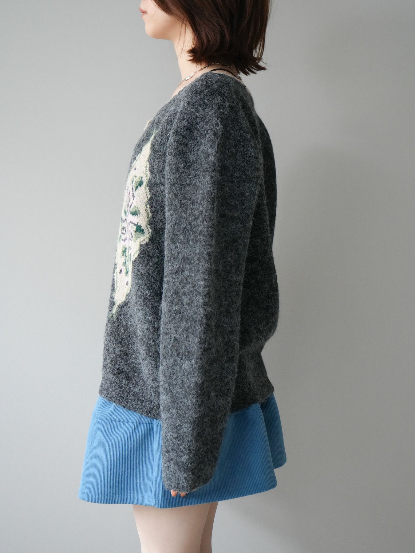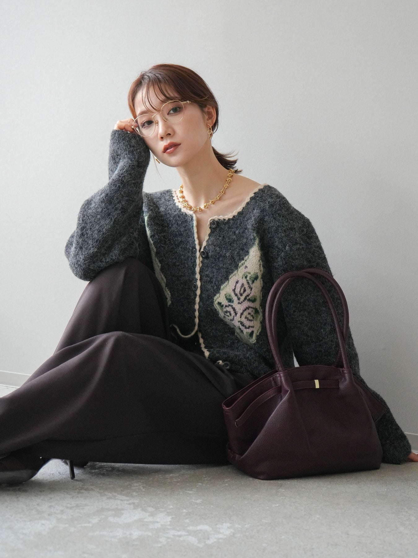 [予約]アンティークフラワージャガードニットカーディガン/charcoal