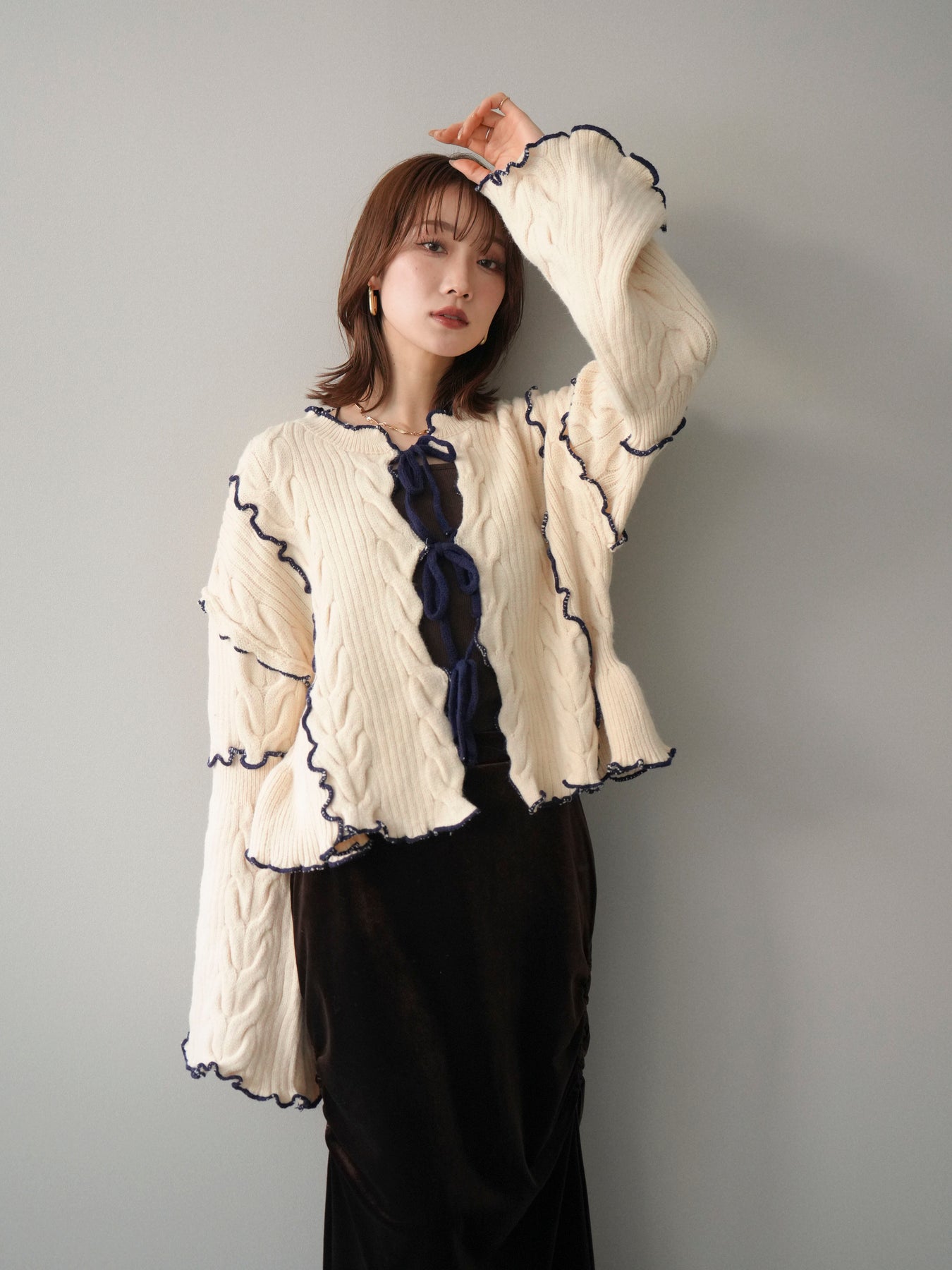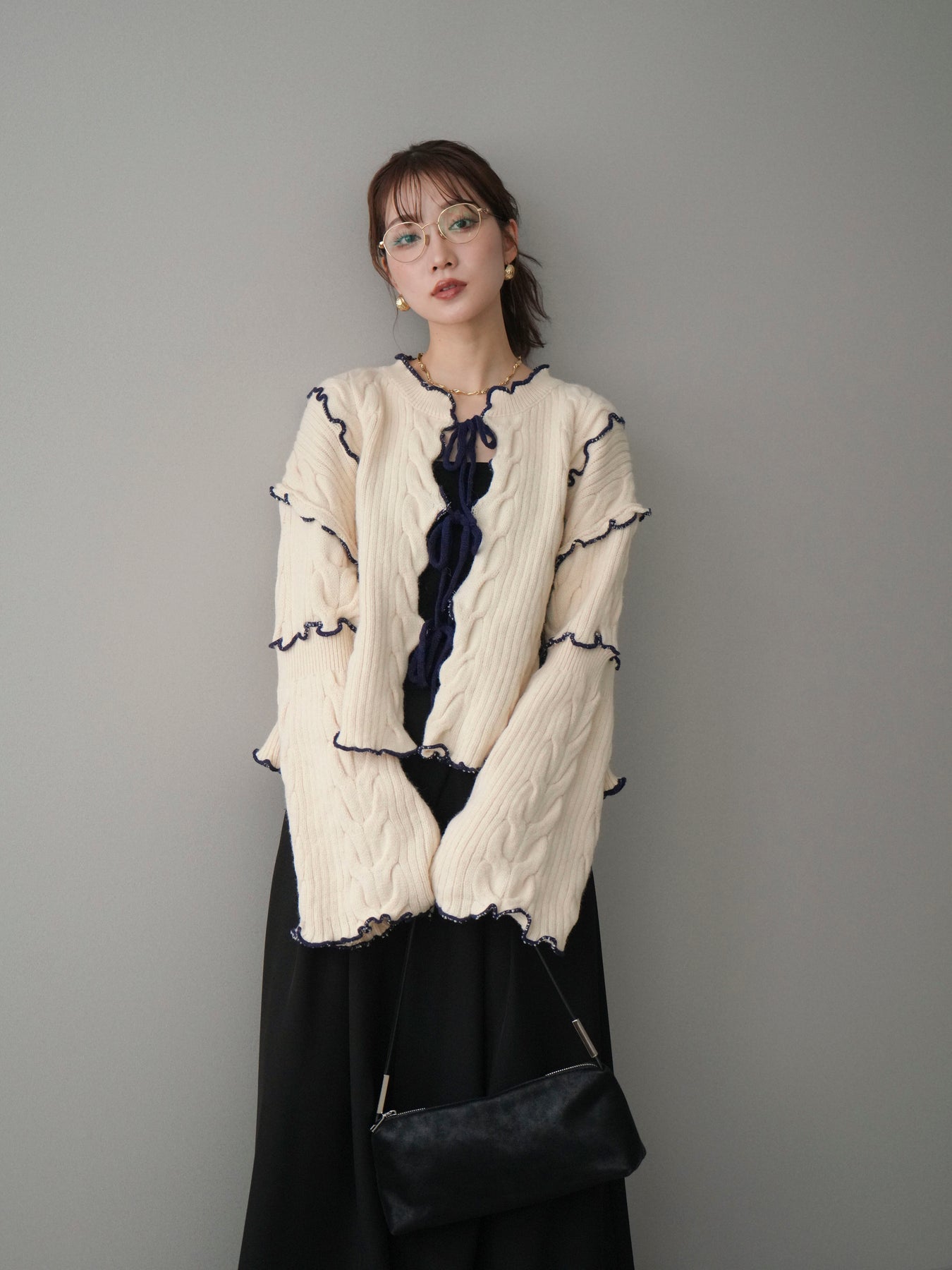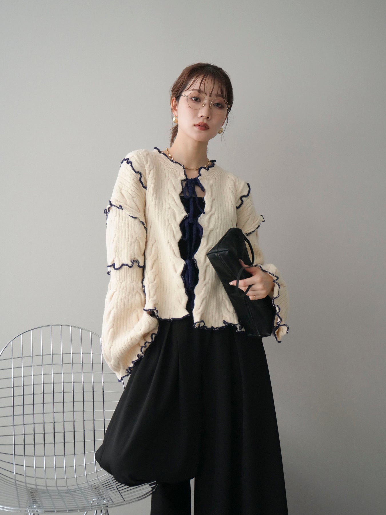 [予約]フロントリボン配色メローニットカーディガン/ivory