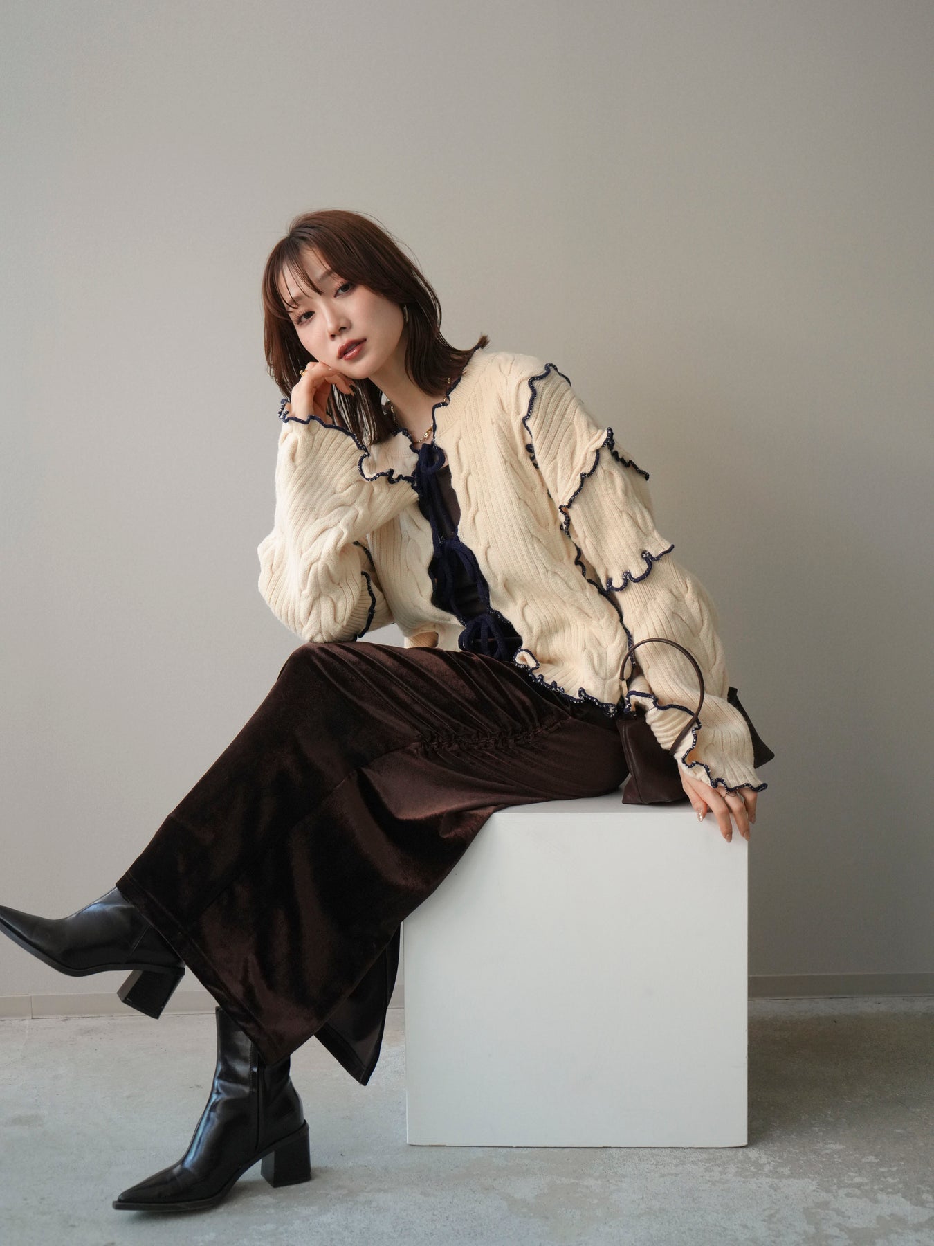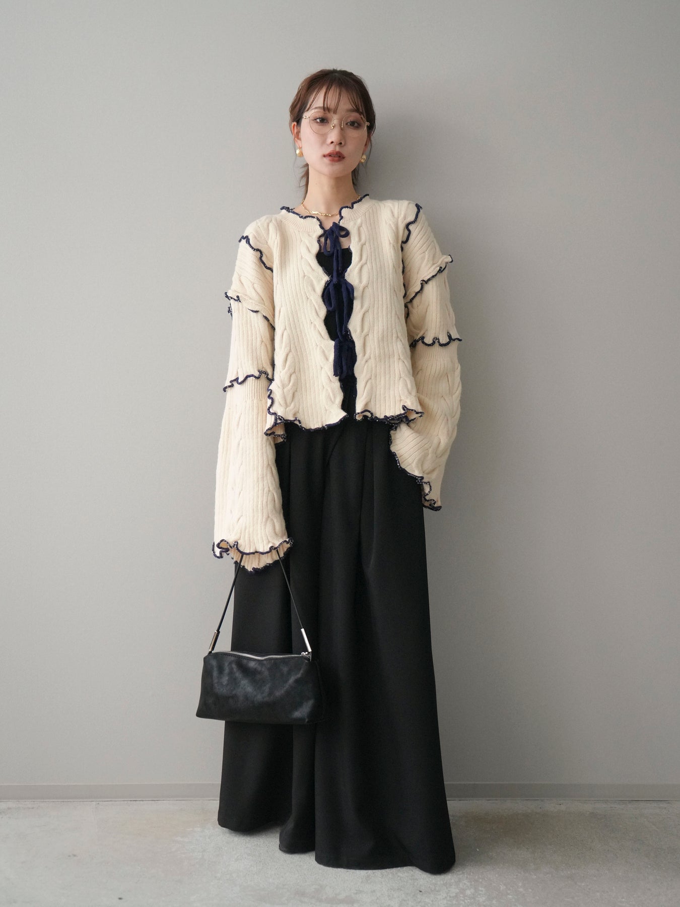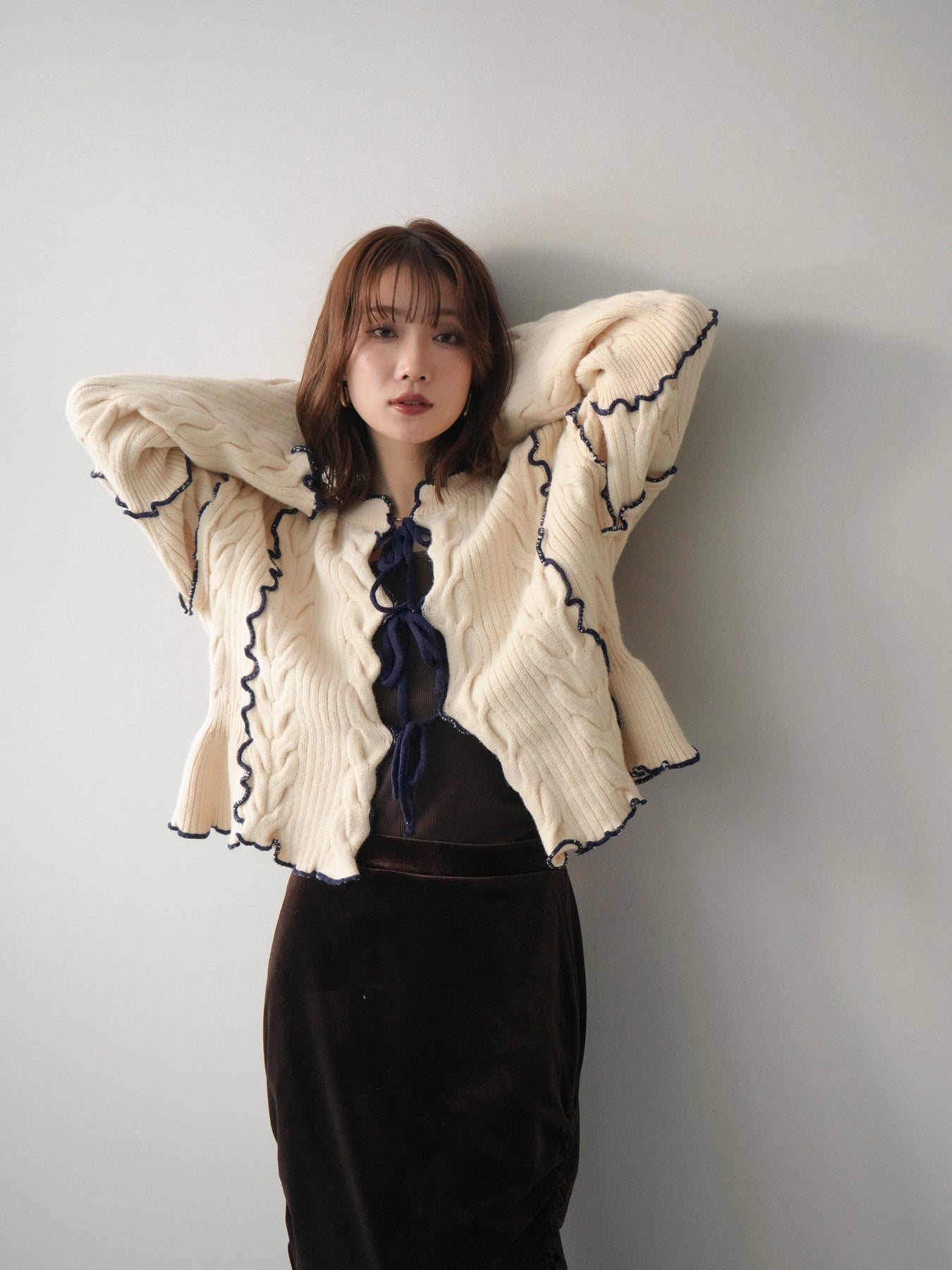 [予約]フロントリボン配色メローニットカーディガン/ivory