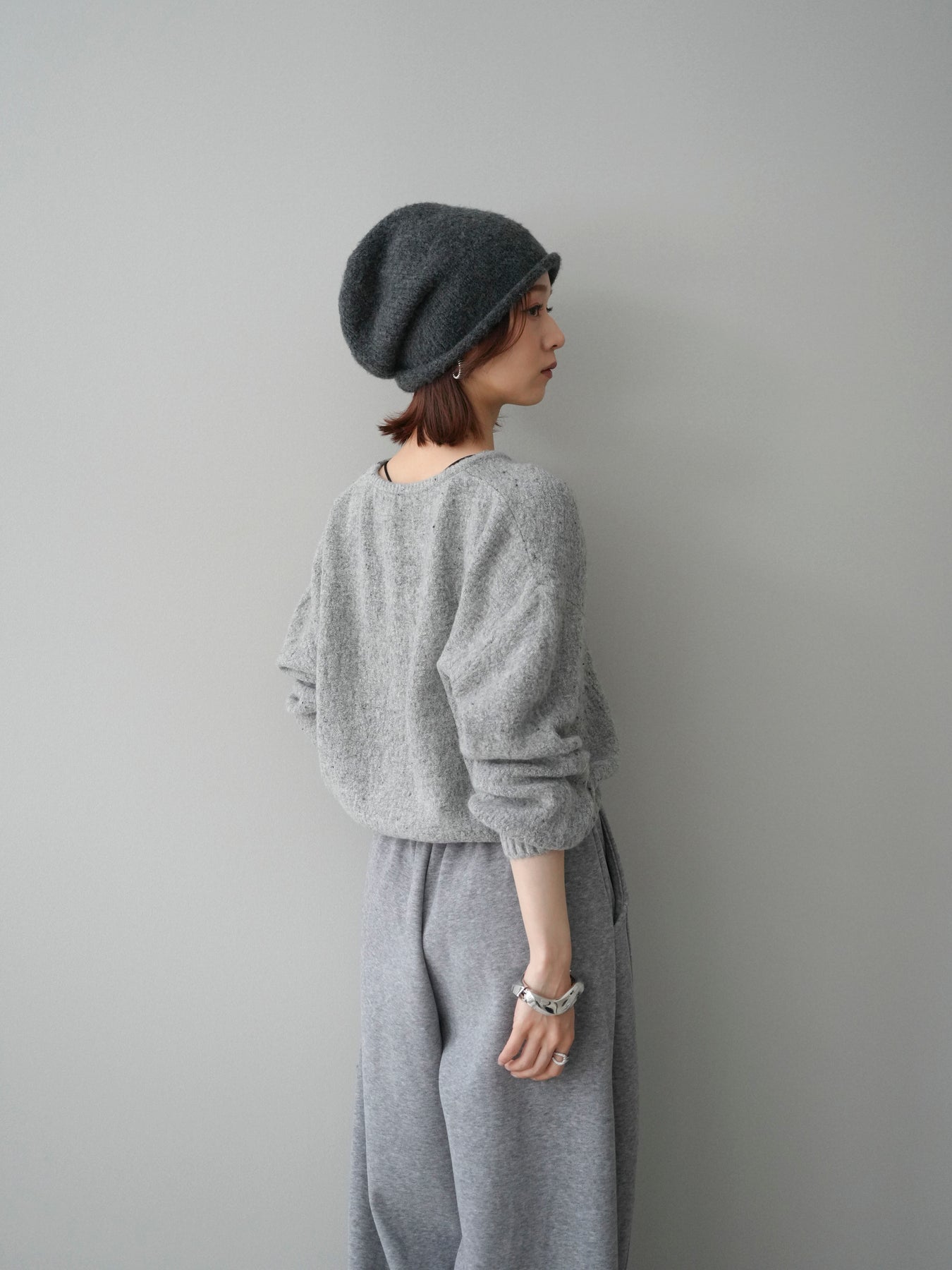 ・お手入れ方法:水温30℃以下手洗いでのお洗濯をお薦めします。素材の特性上、洗濯の際に色落ち・縮みが生じる恐れがありますので単独で・短時間でのお洗濯をお薦めします。裏返してネットに入れ手洗いコースで洗濯、洗濯後は形を整えてから干してください。※タンブラー乾燥は控えてください。 濡れたままの状態で擦れると、色落ち色移りすることがあります。つけ置き洗いや雨や汗で濡れたまま放置は避け、速やかに処理してください。着用中の摩擦や汗、水濡れ、濃淡差があるものとの重ね着にご注意ください。 また、素材の特性上伸びやすい為ハンガーの使用はお控えいただき畳んで保管ください。