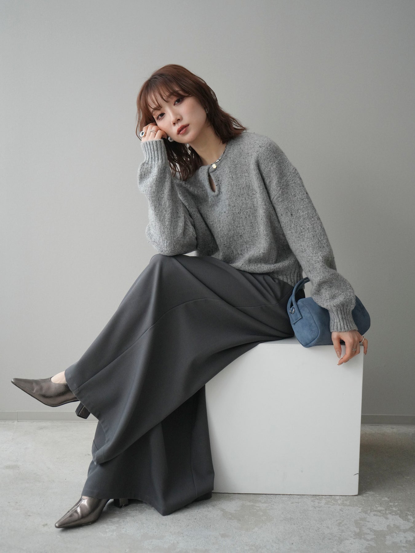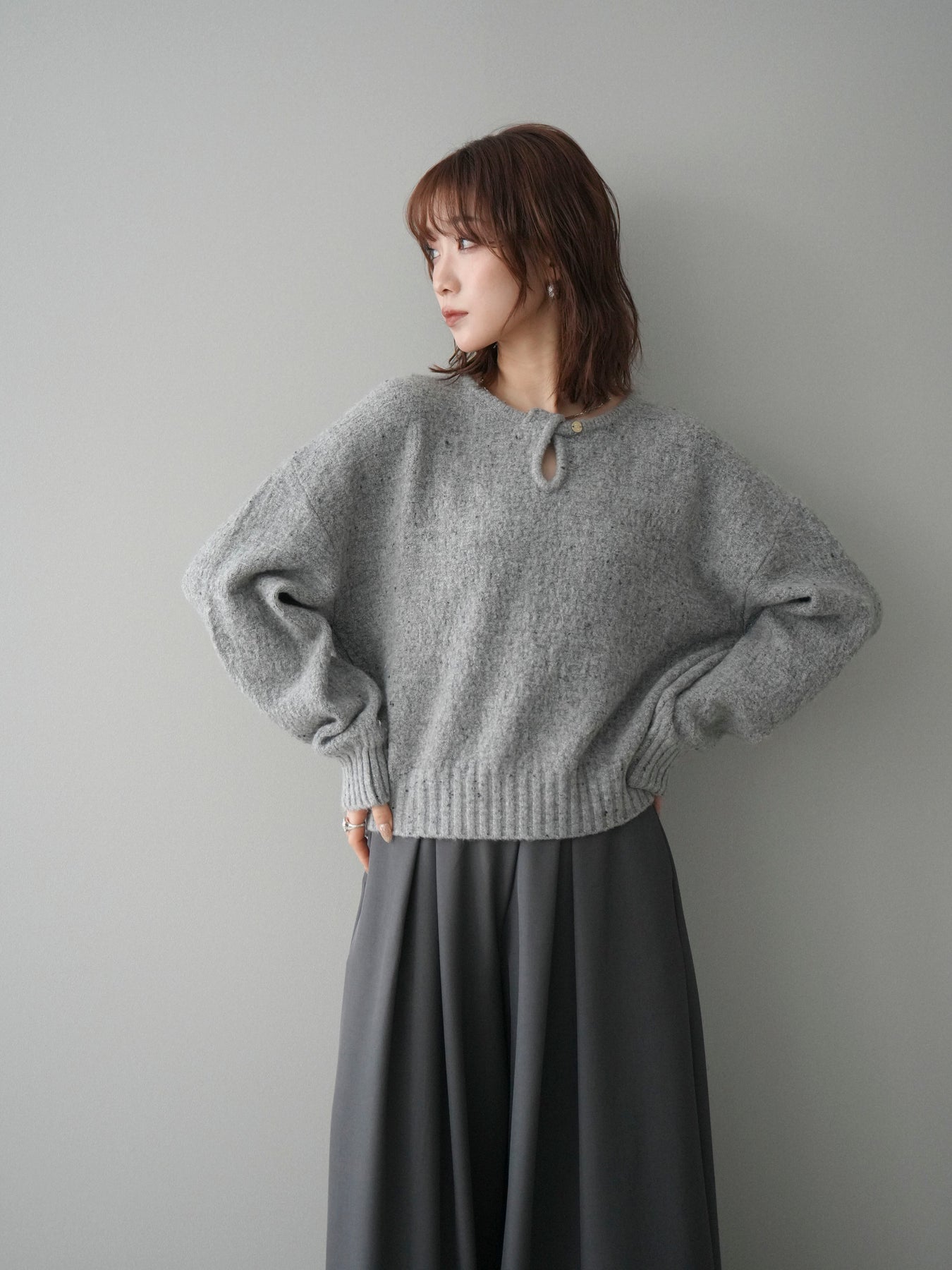 [予約]ツイストネックラメネップヤーンニットプルオーバーに関連する商品を探す↓
