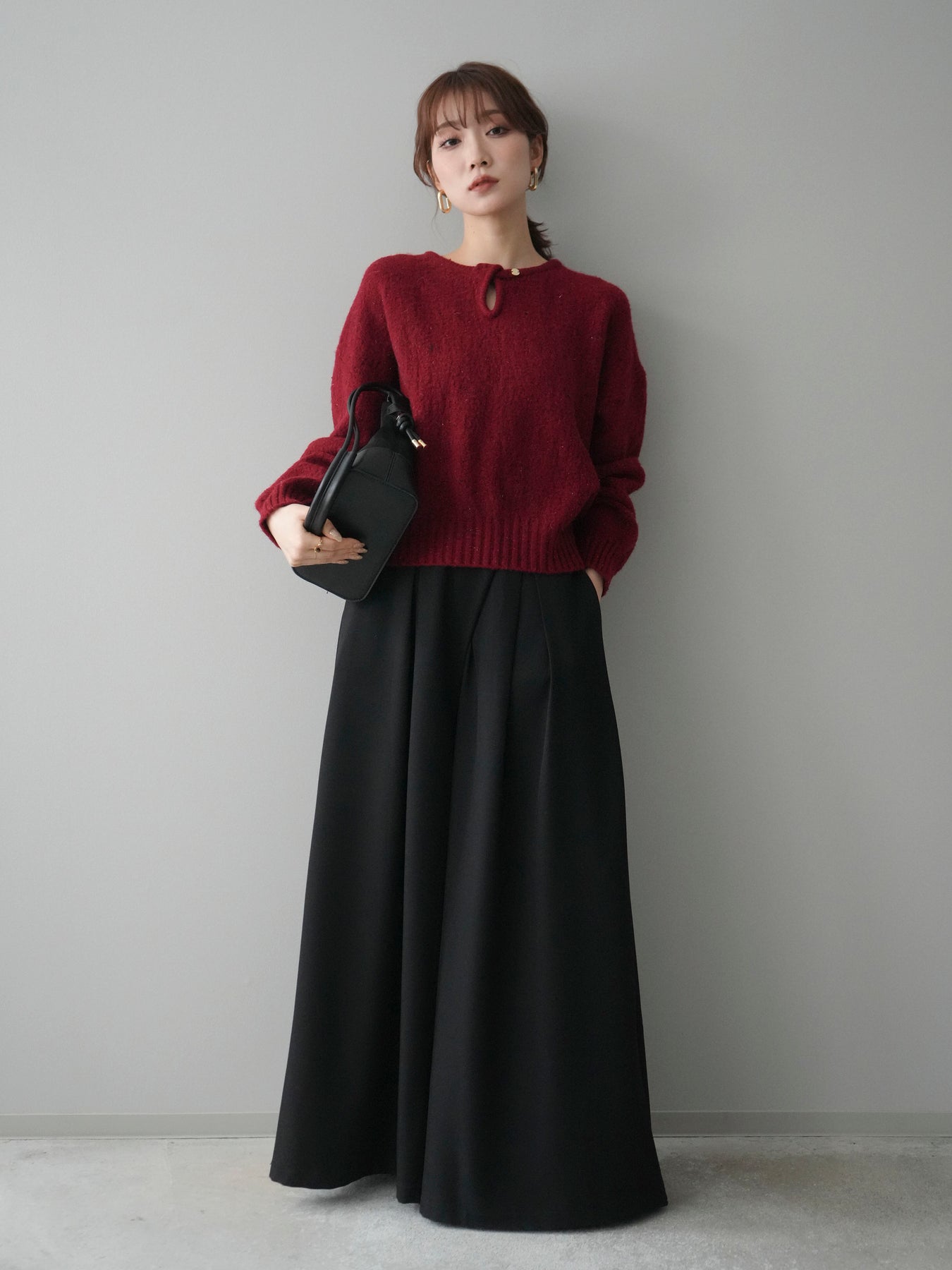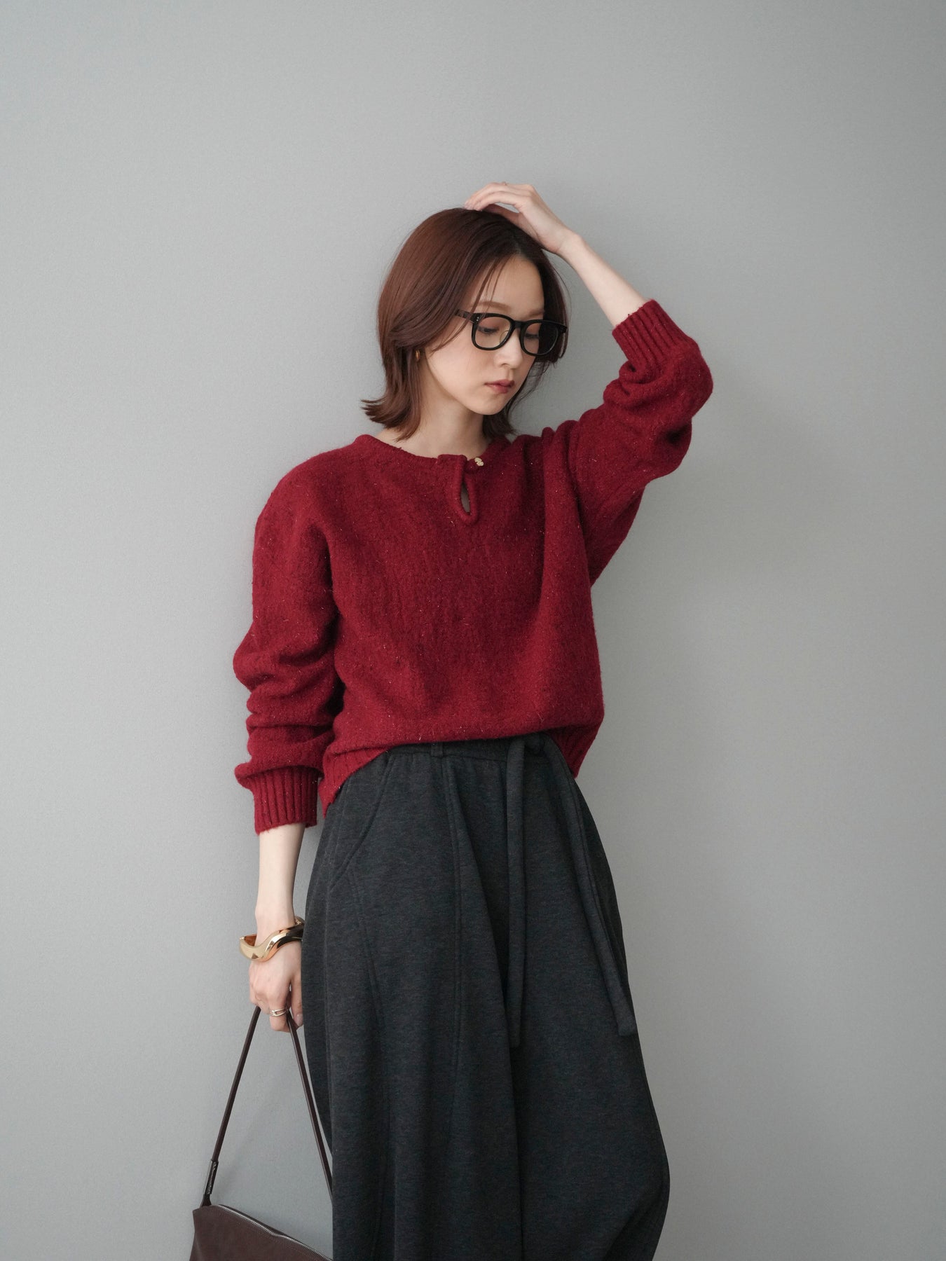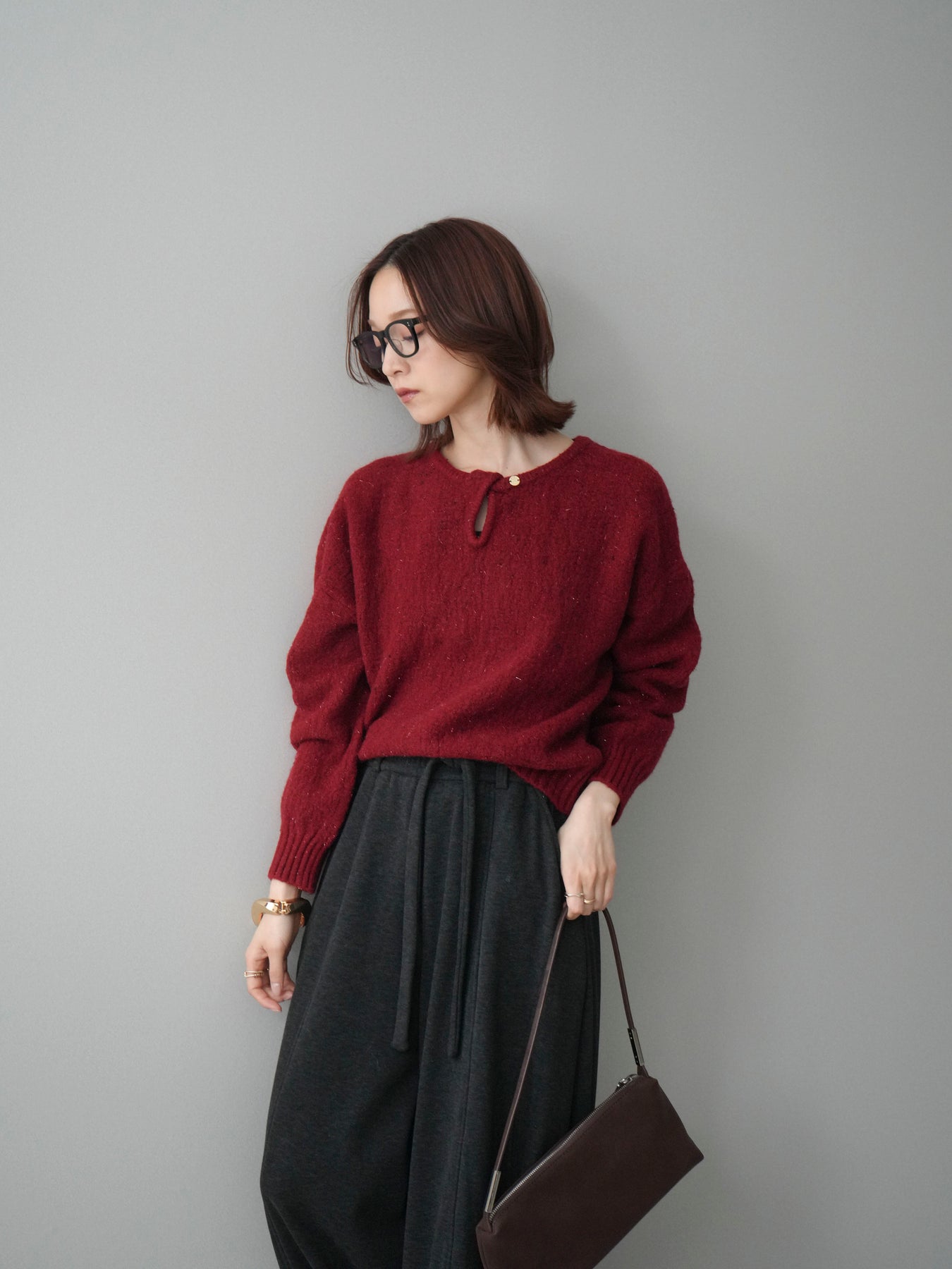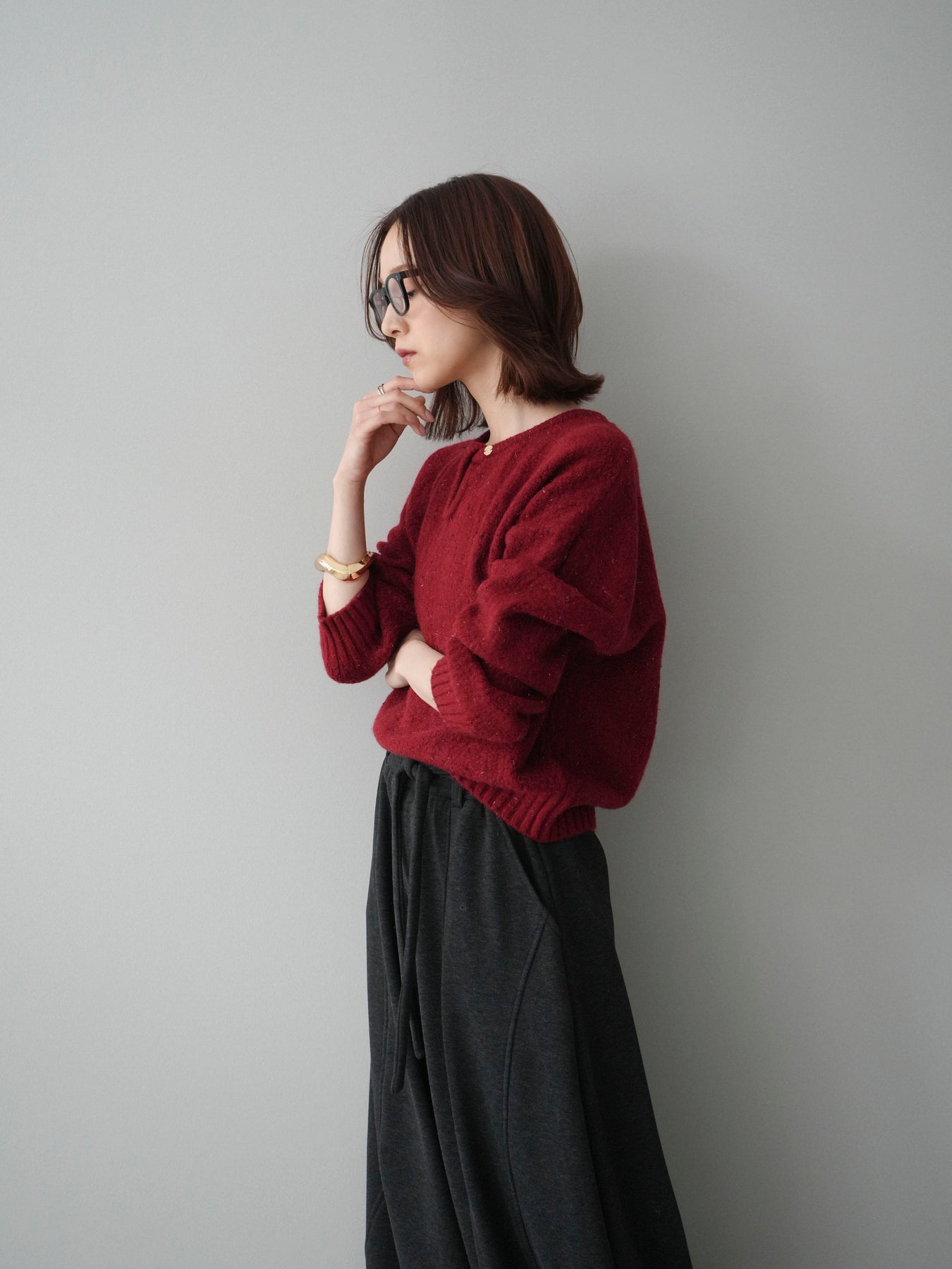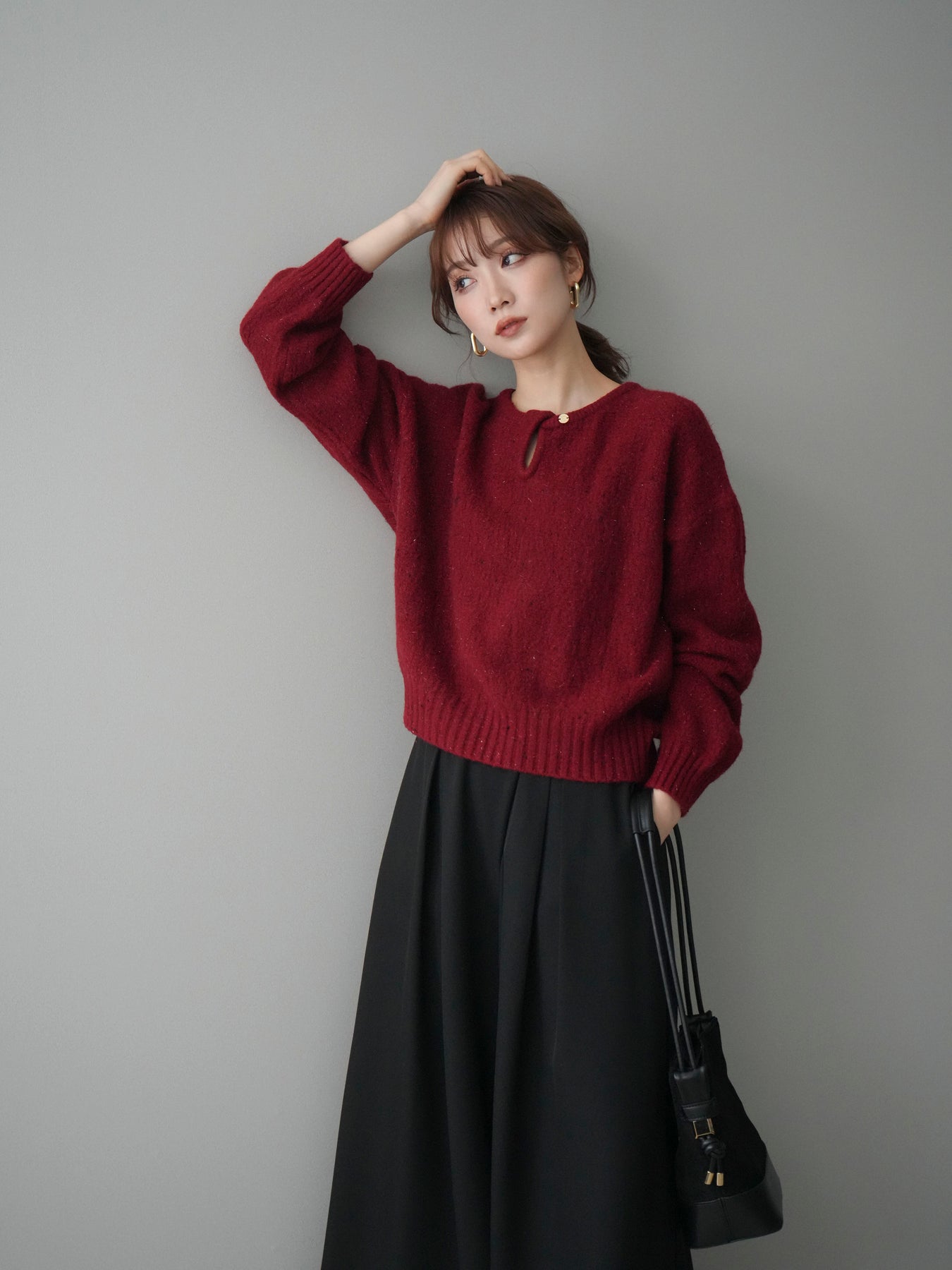[予約]ツイストネックラメネップヤーンニットプルオーバー/red