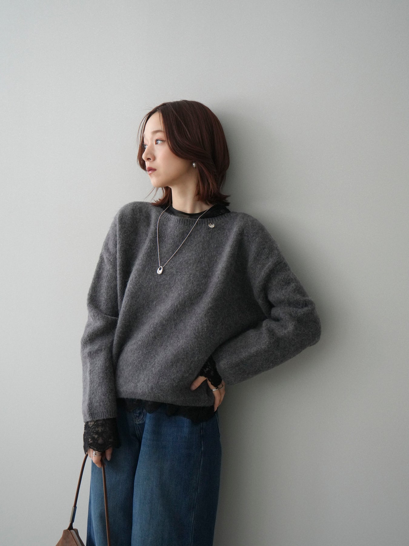 やわらかなアンゴラタッチの風合いが魅力のニットプルオーバー。 ふんわりとした起毛感が肌になじみ、シーズンムードを高めてくれる一着です。 首元をきれいに見せてくれるボートネックデザインが、程よい抜け感と上品さを演出。 コンパクトなクロップド丈でバランスが取りやすく、ハイウエストのボトムとも好相性です。 シンプルながらも素材感が引き立ち、デイリーからきれいめまで幅広く活躍します。