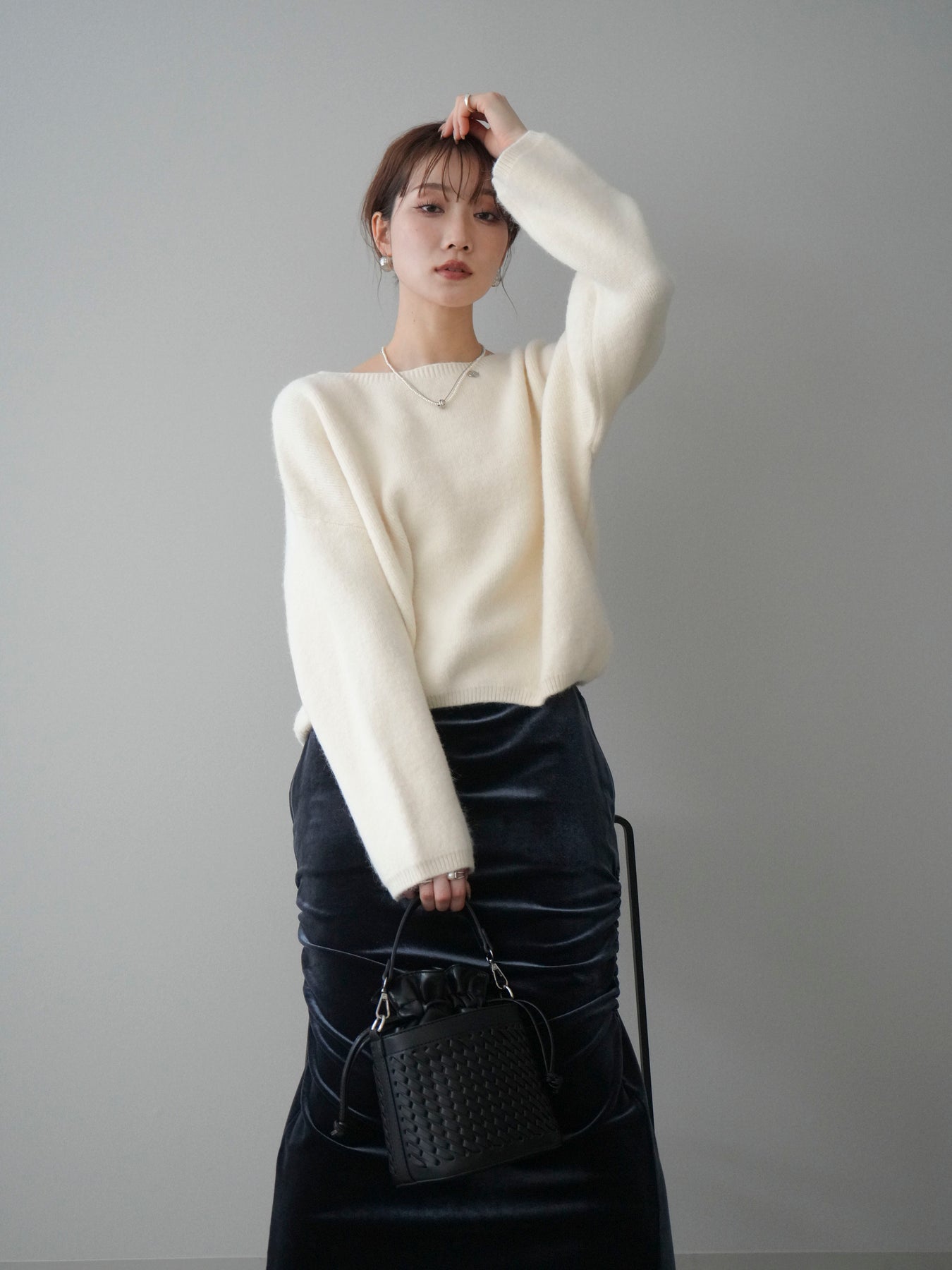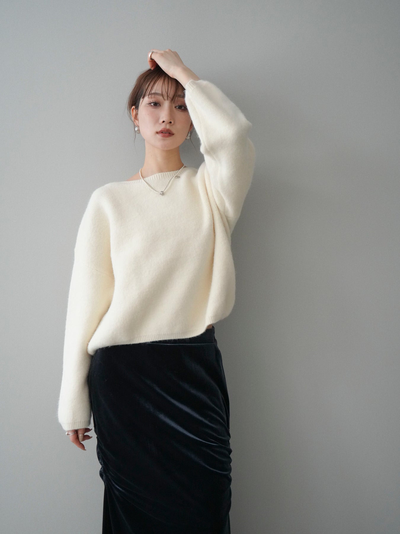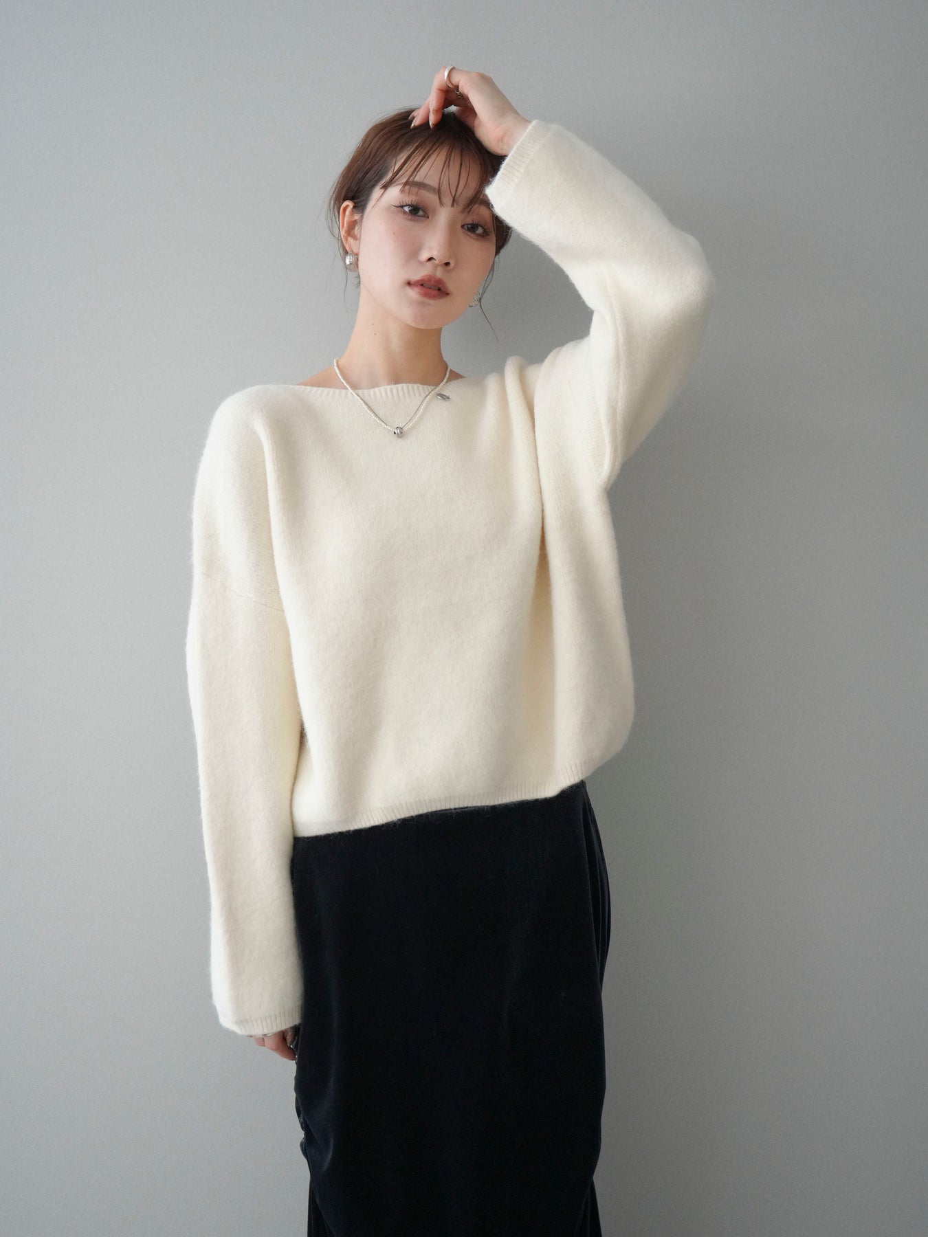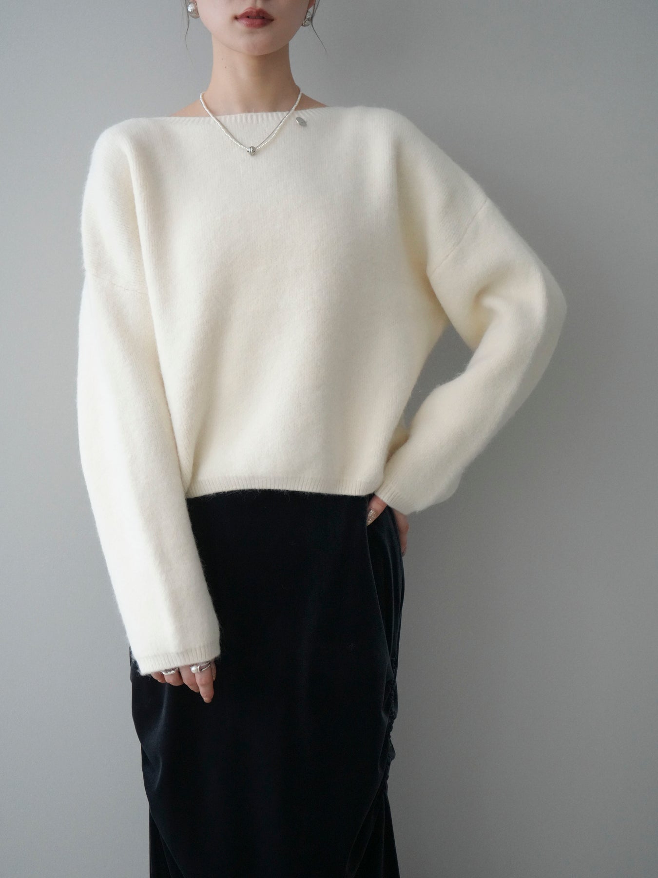 [予約]アンゴラタッチボートネッククロップドプルオーバー/ivory