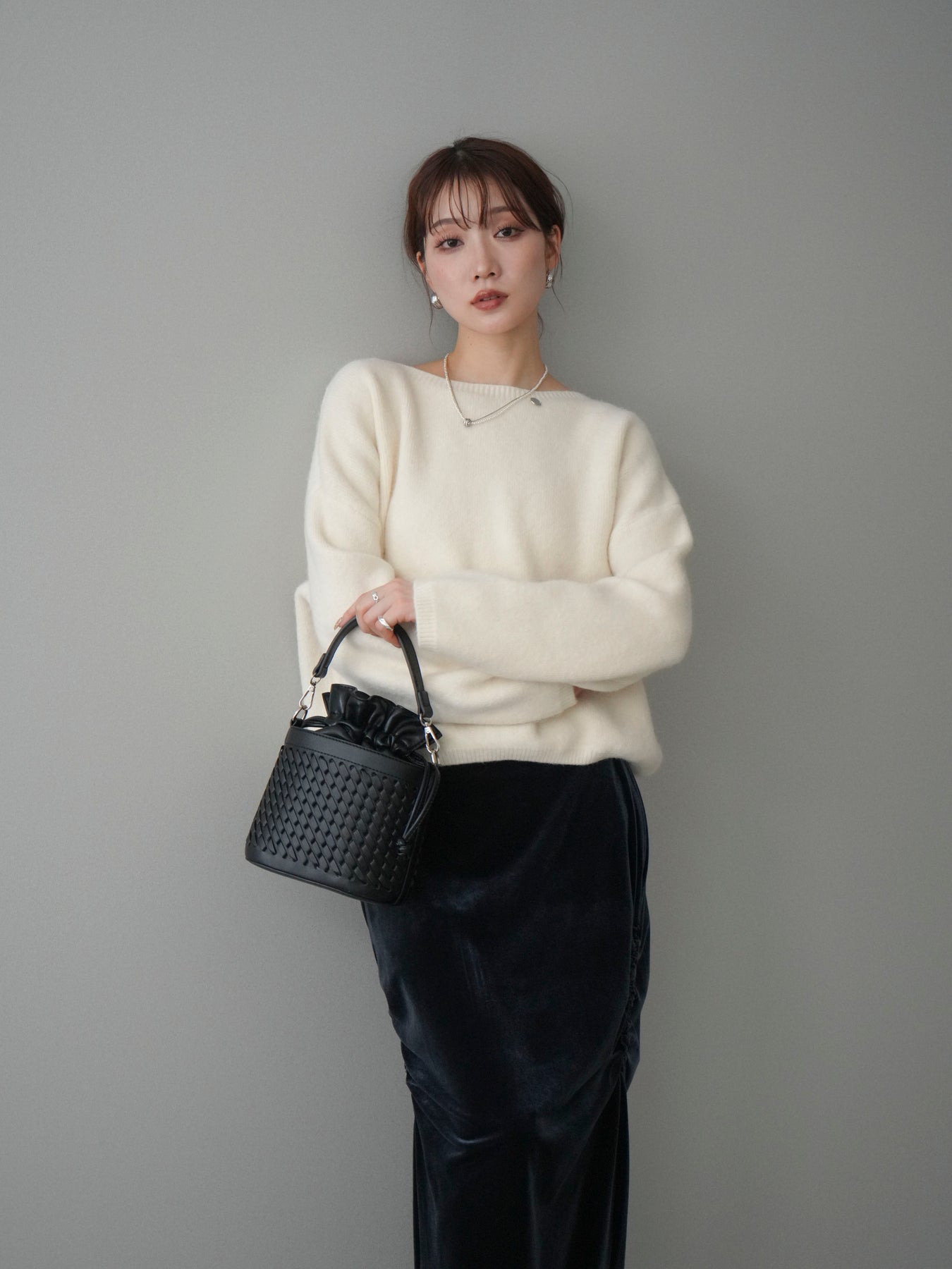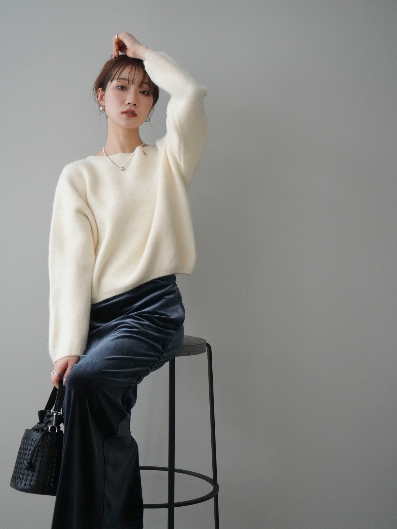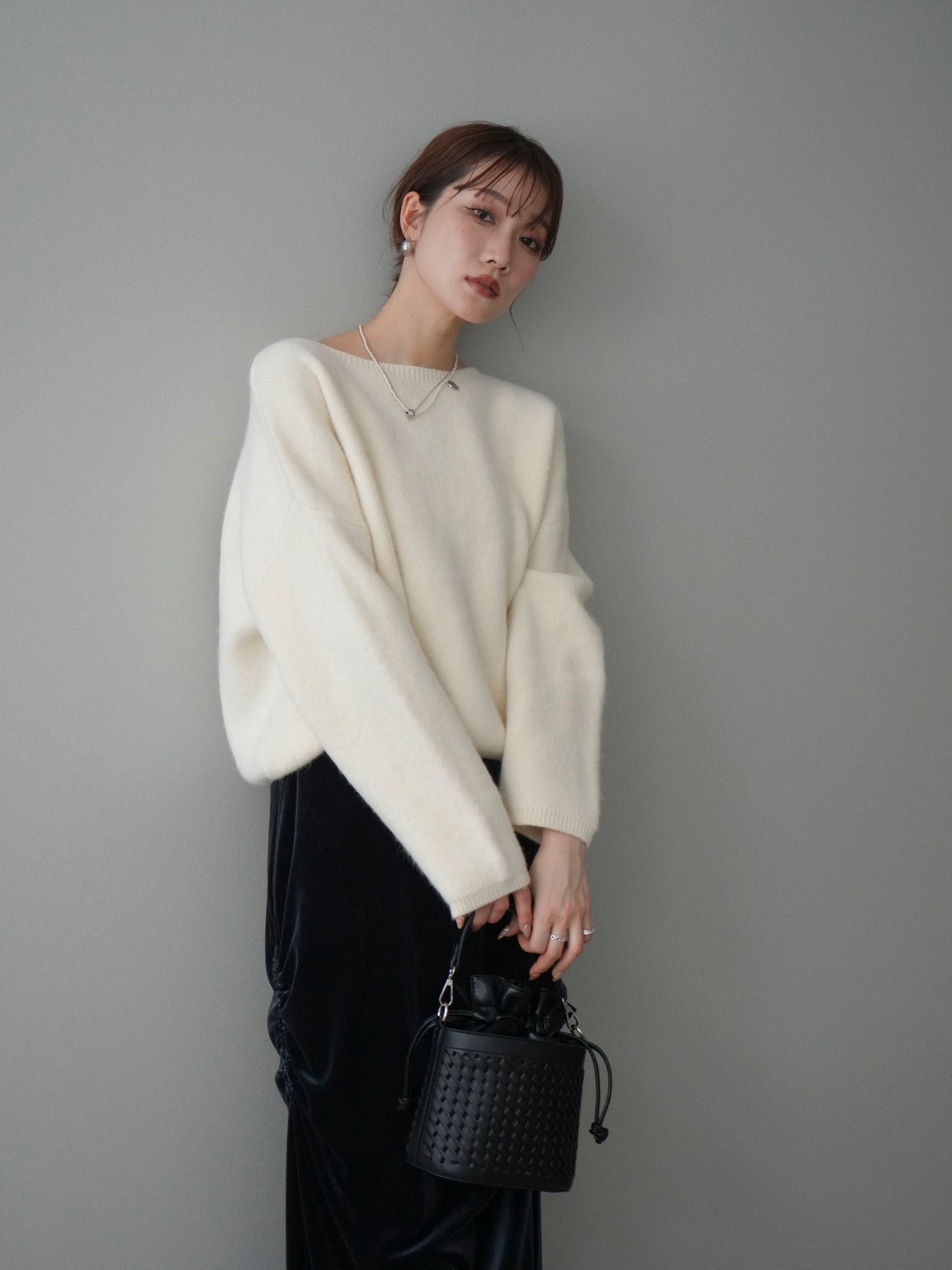 [予約]アンゴラタッチボートネッククロップドプルオーバー/ivory