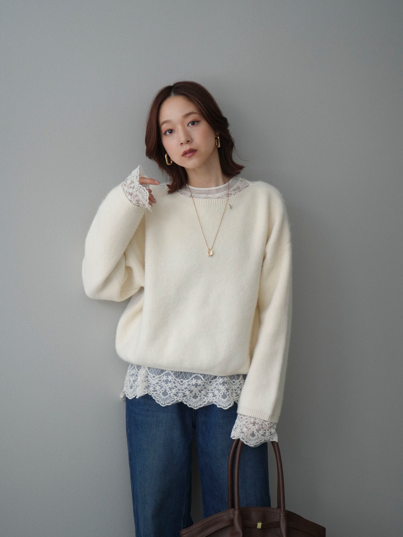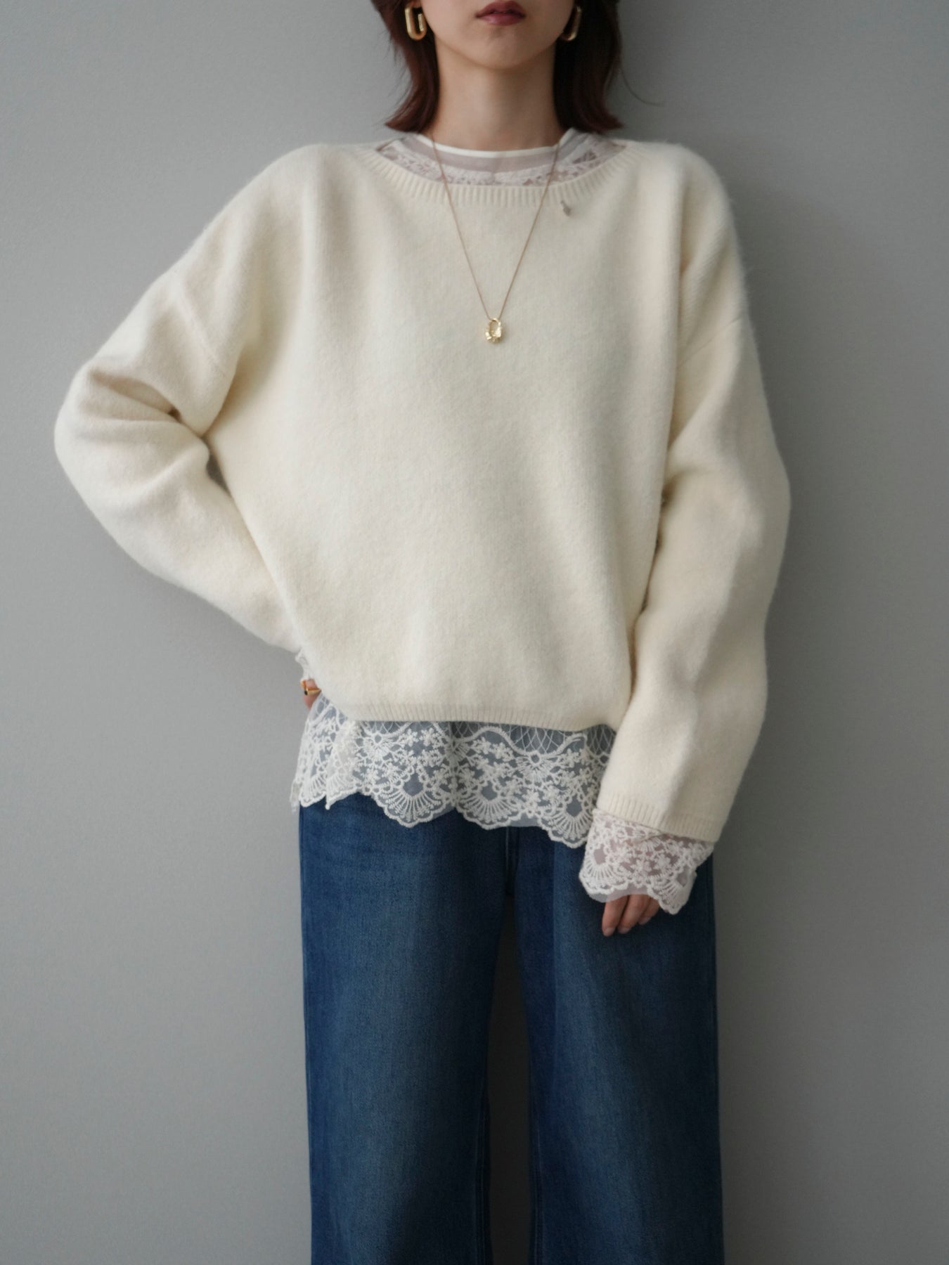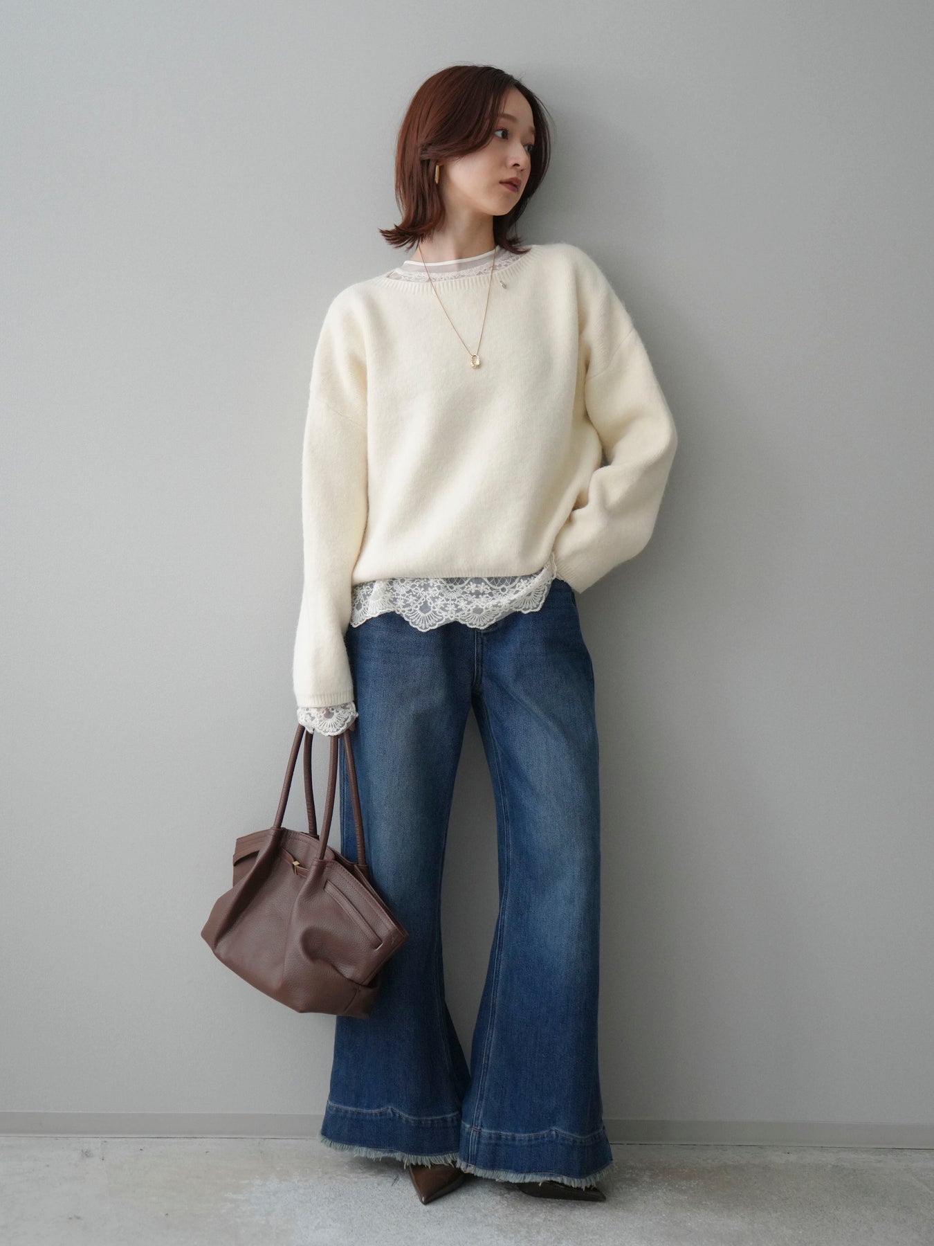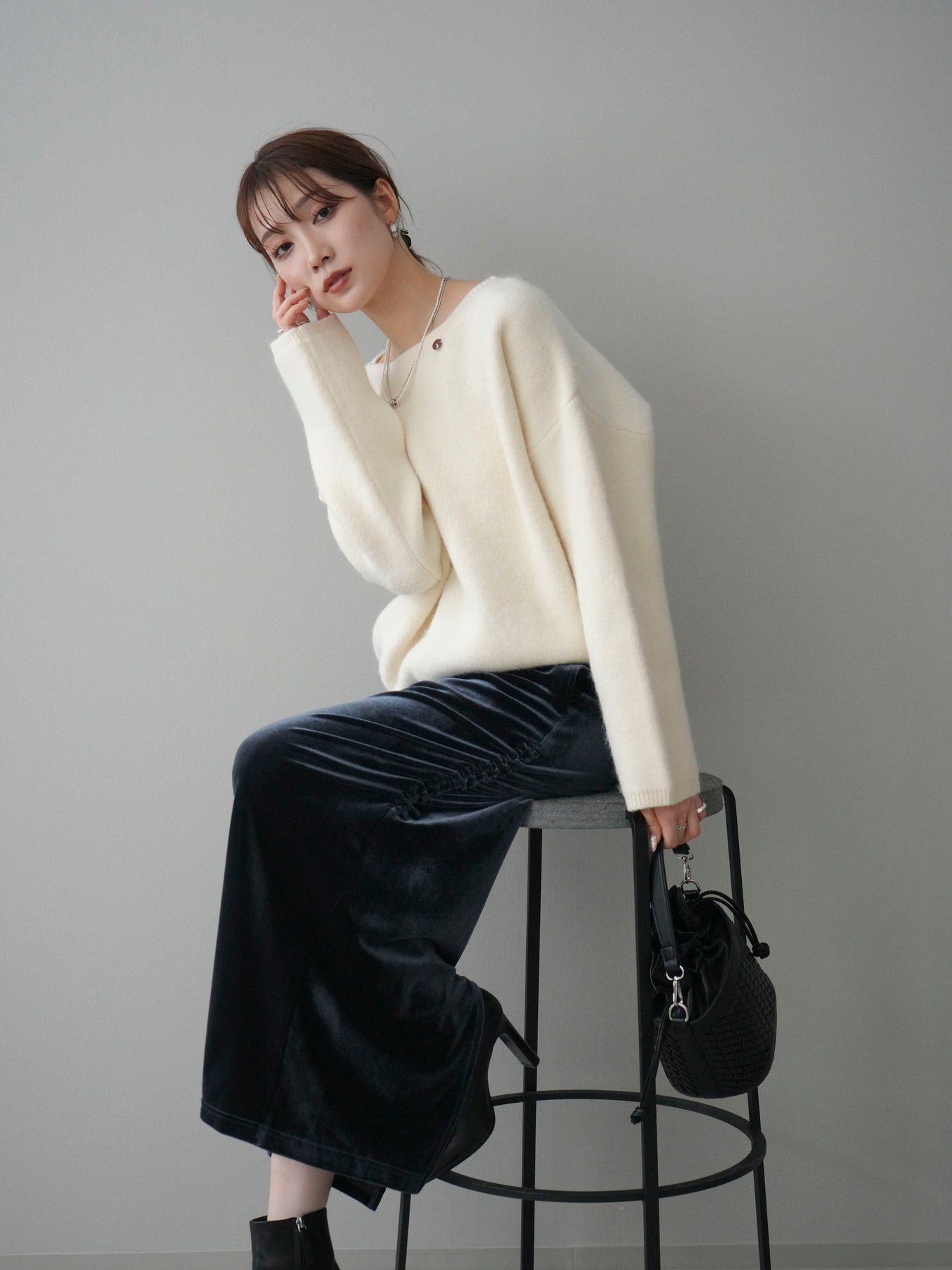[予約]アンゴラタッチボートネッククロップドプルオーバー/ivory