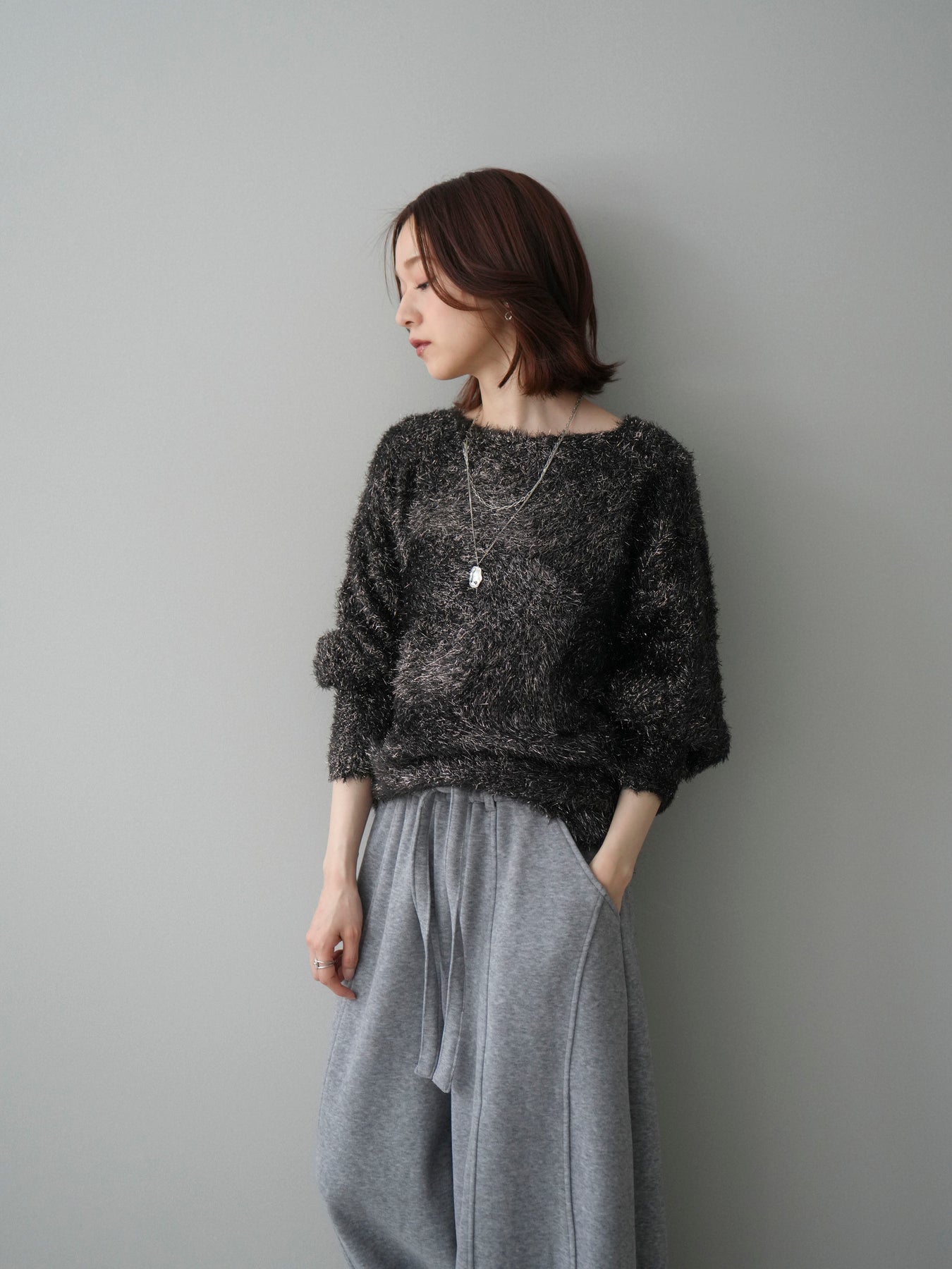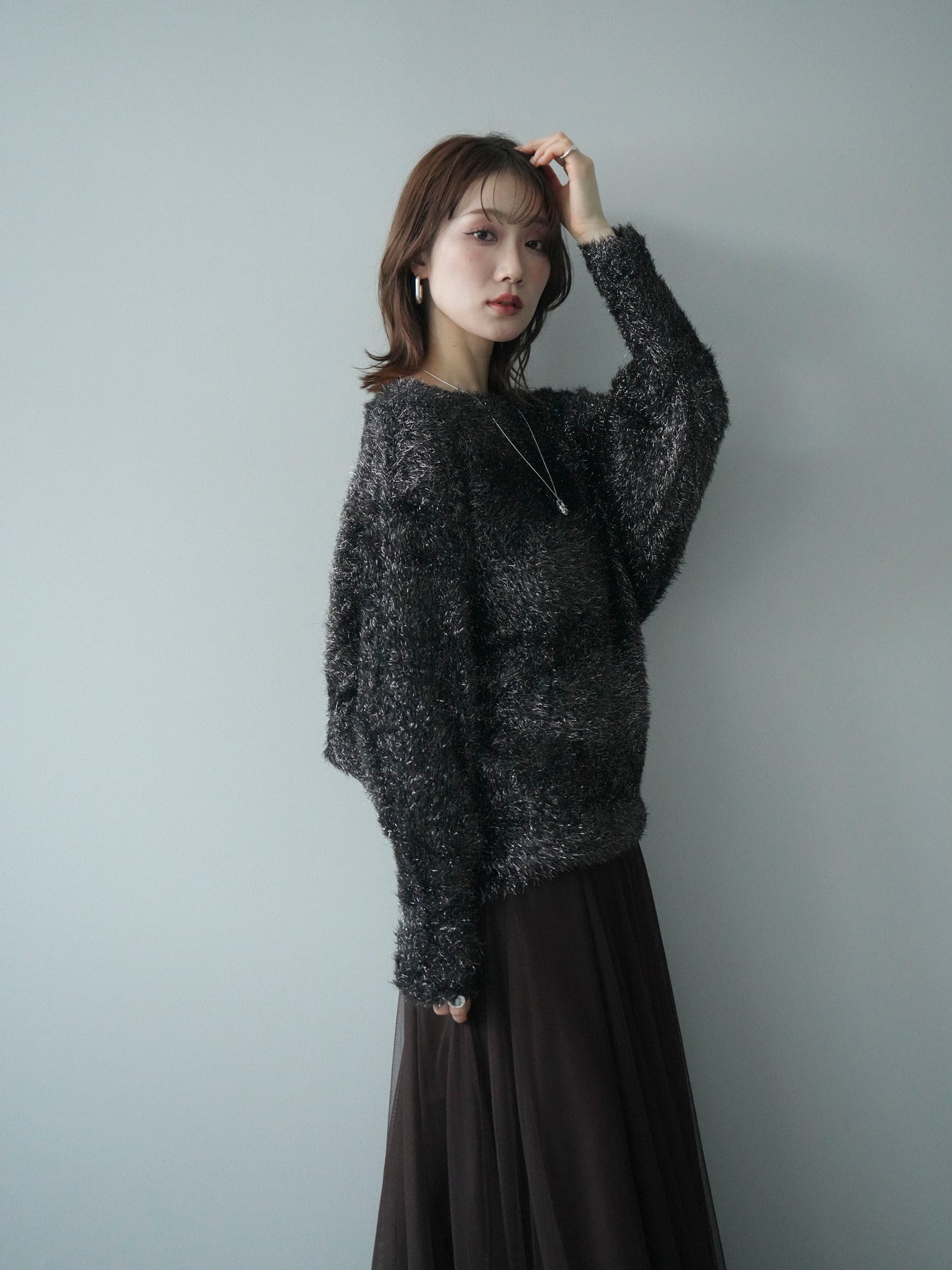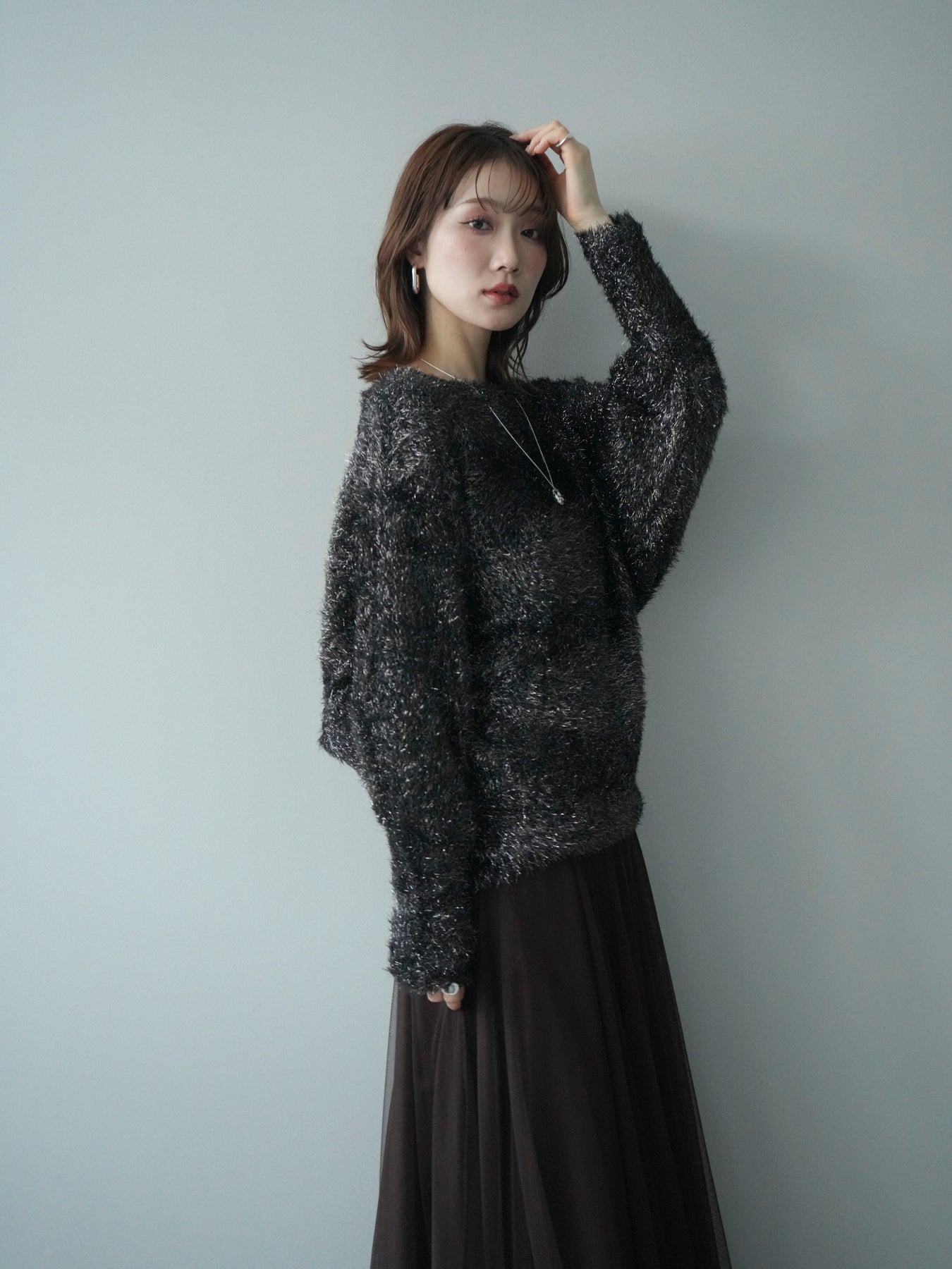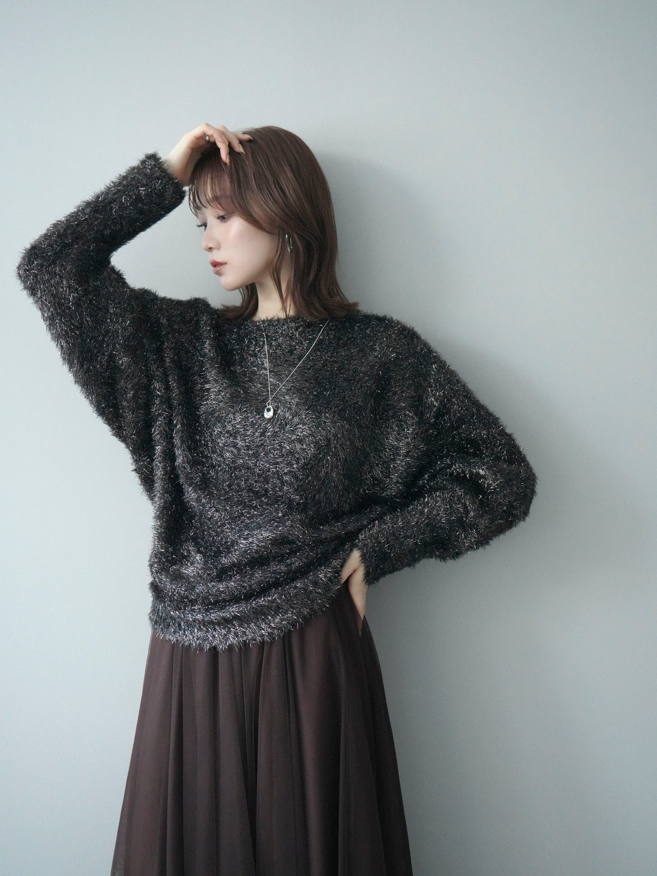 [予約]ラメシャギードルマンニットプルオーバー/brown
