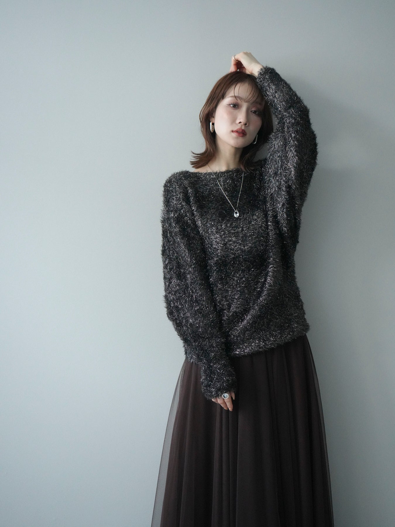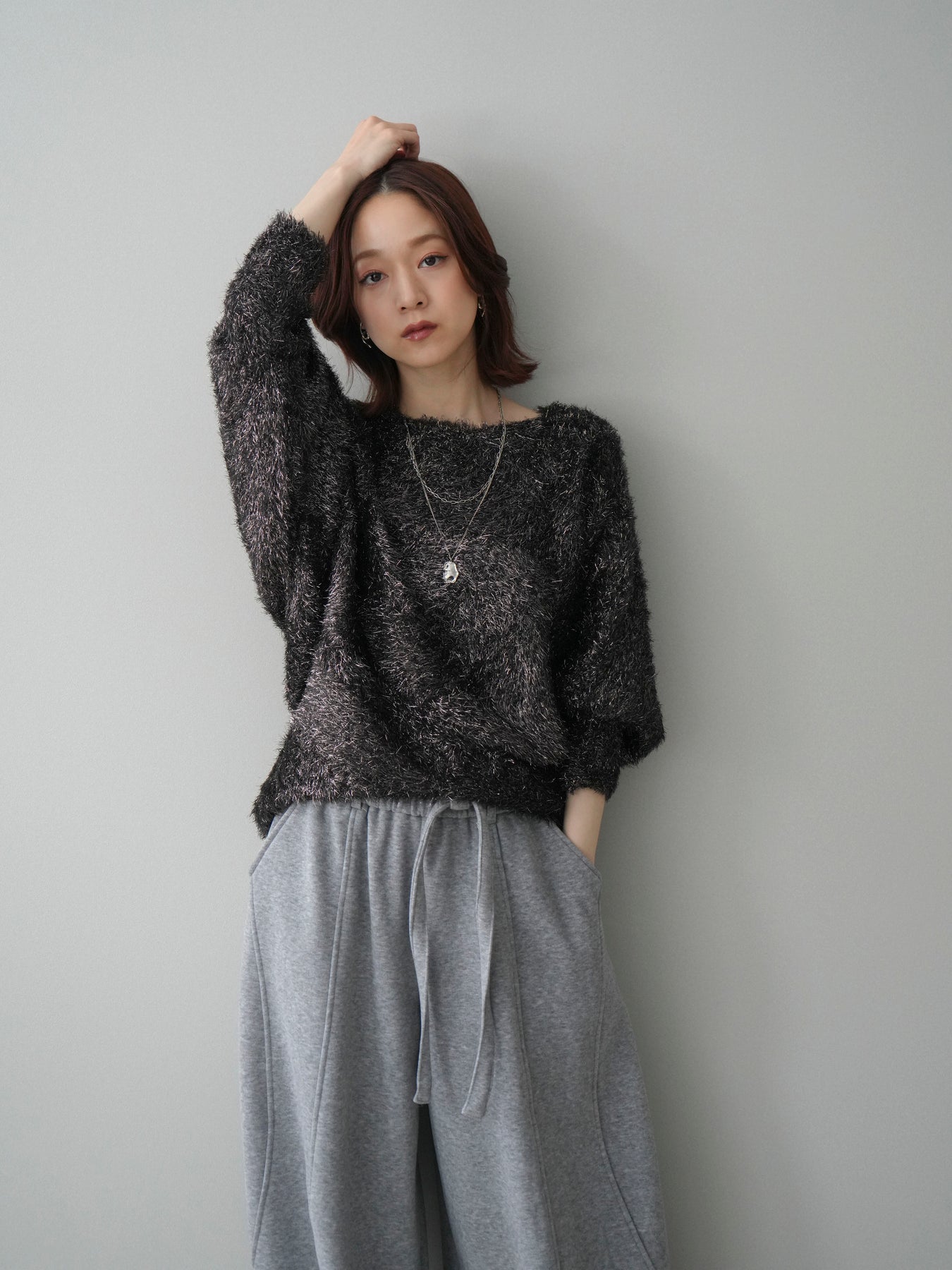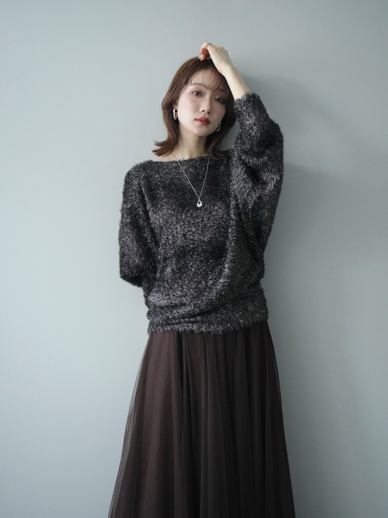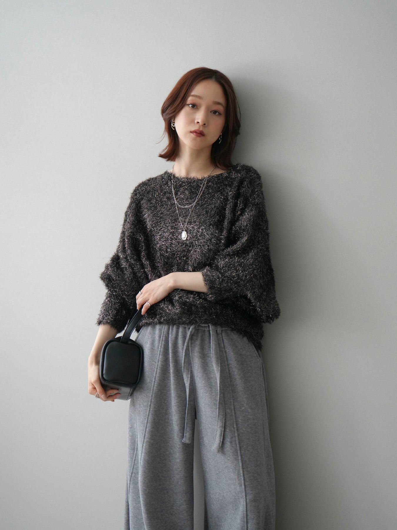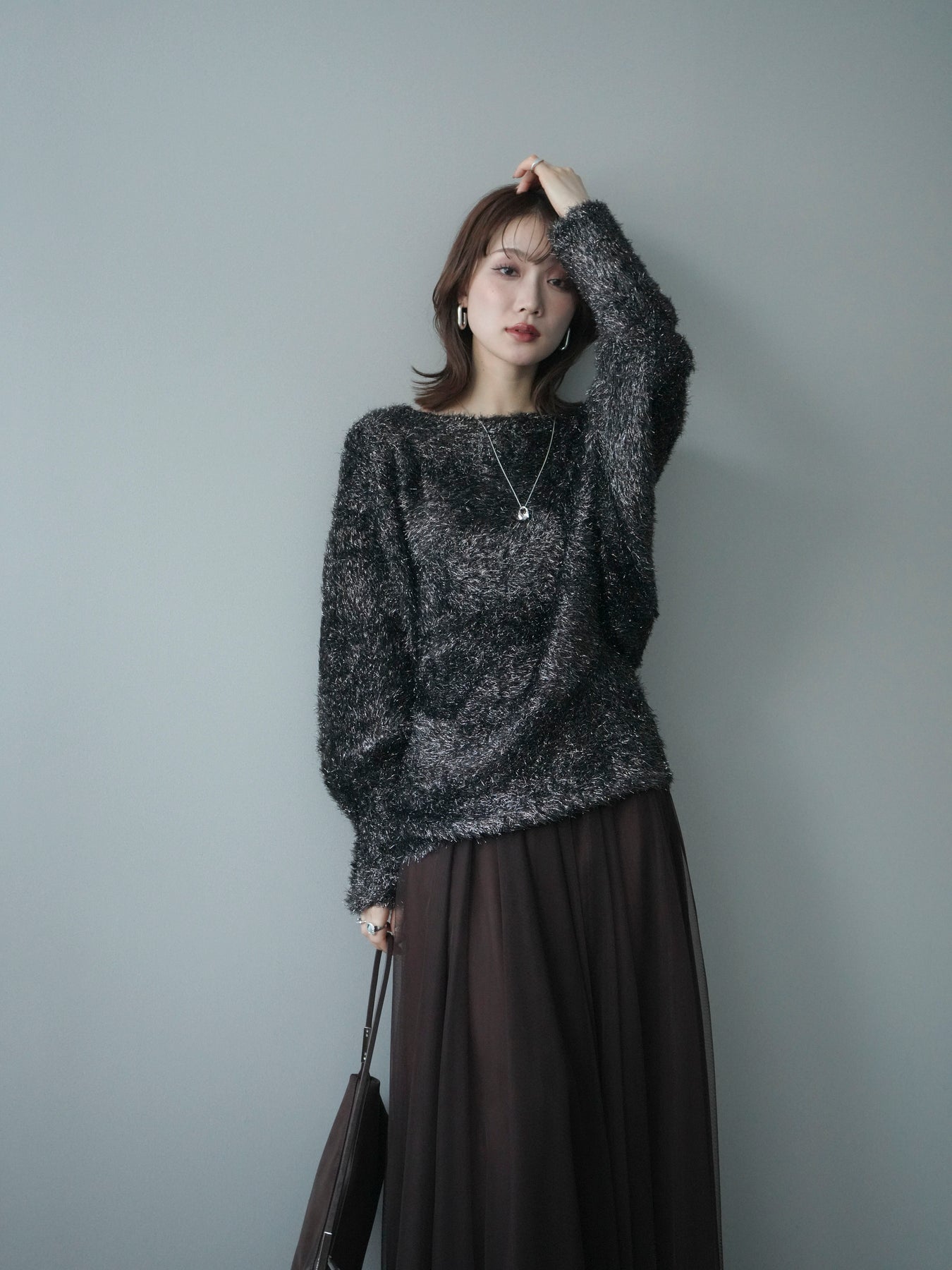 [予約]ラメシャギードルマンニットプルオーバー/brown