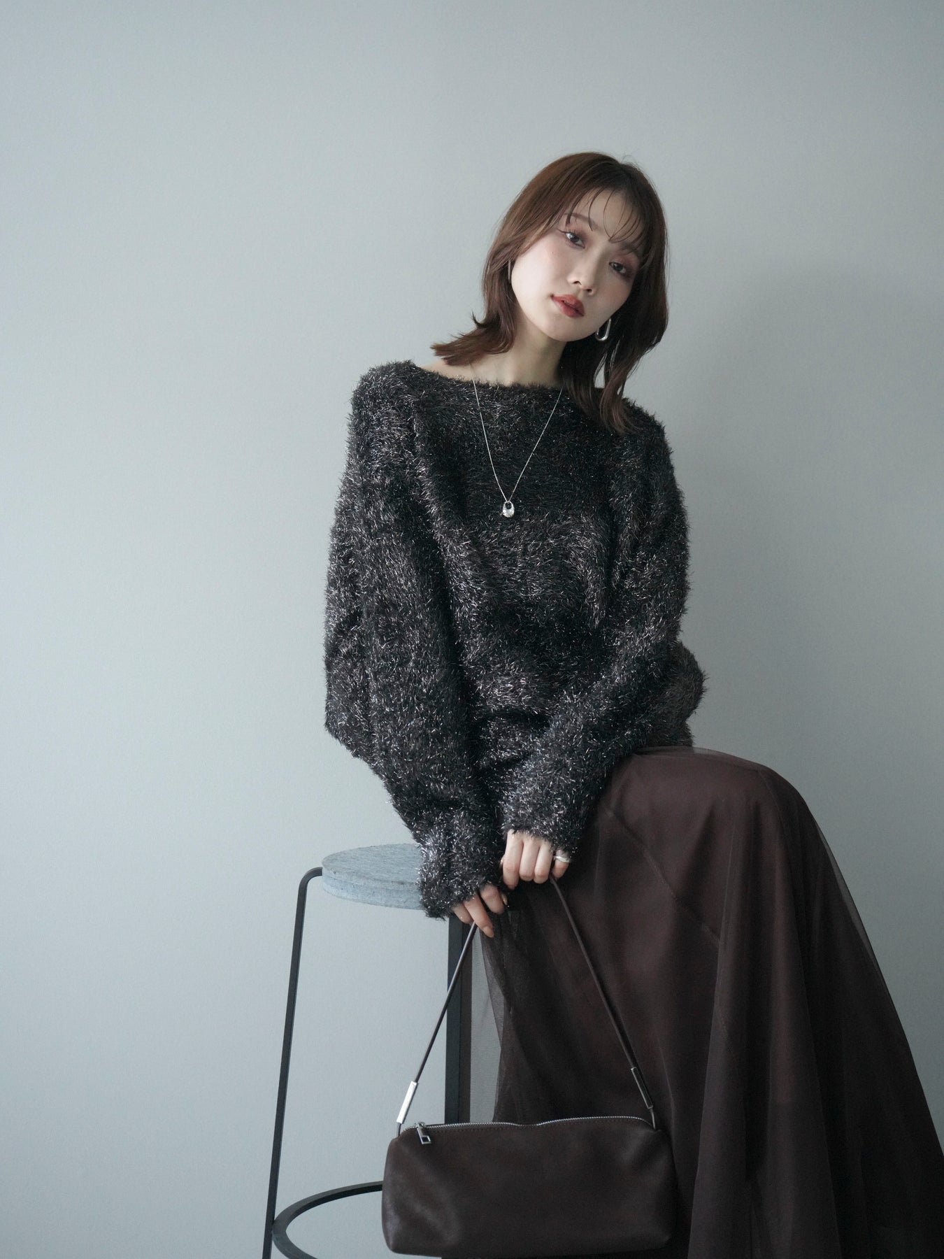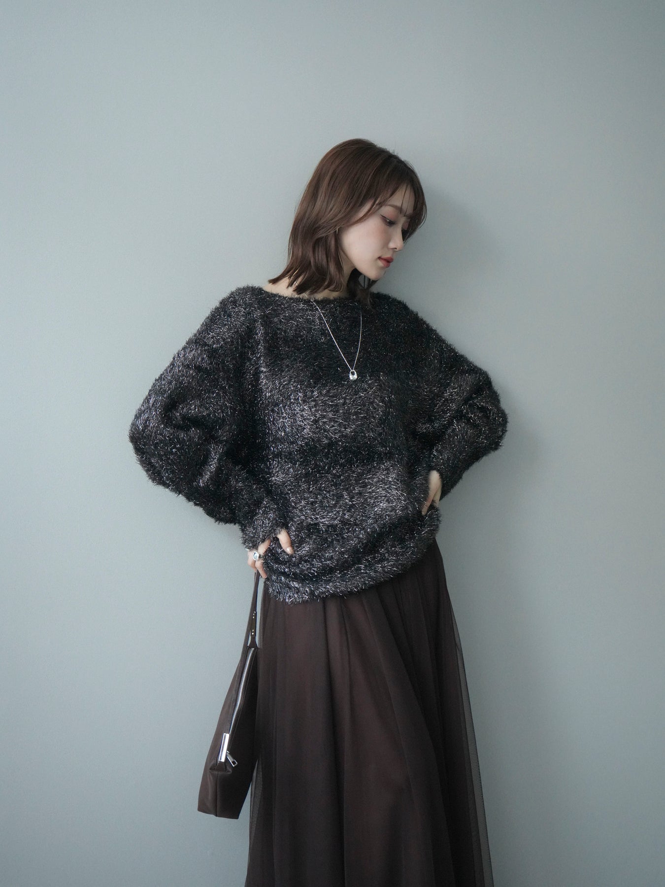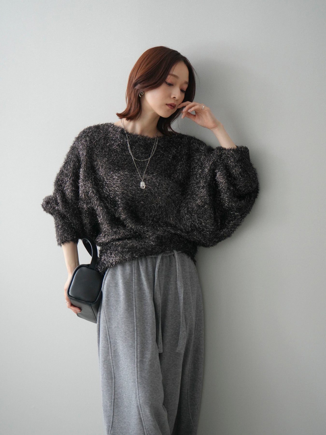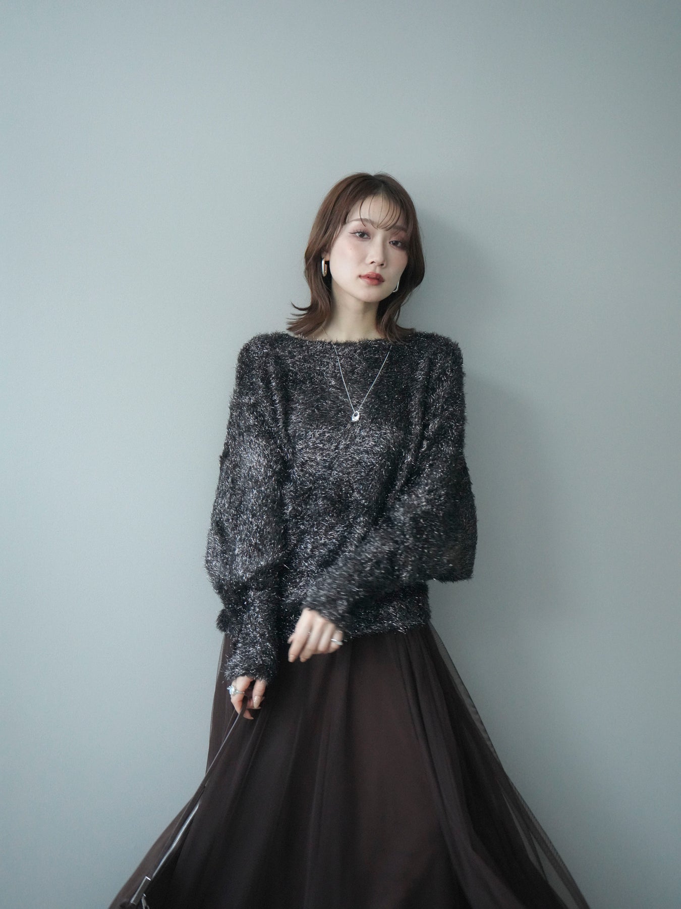 [予約]ラメシャギードルマンニットプルオーバー/brown