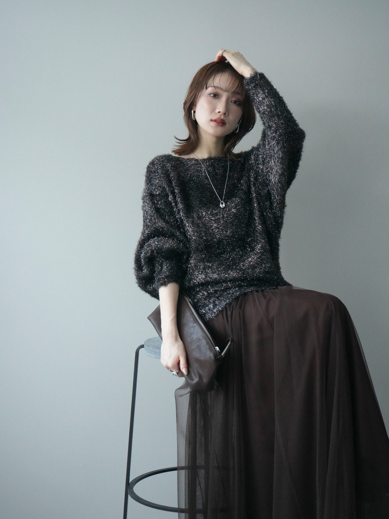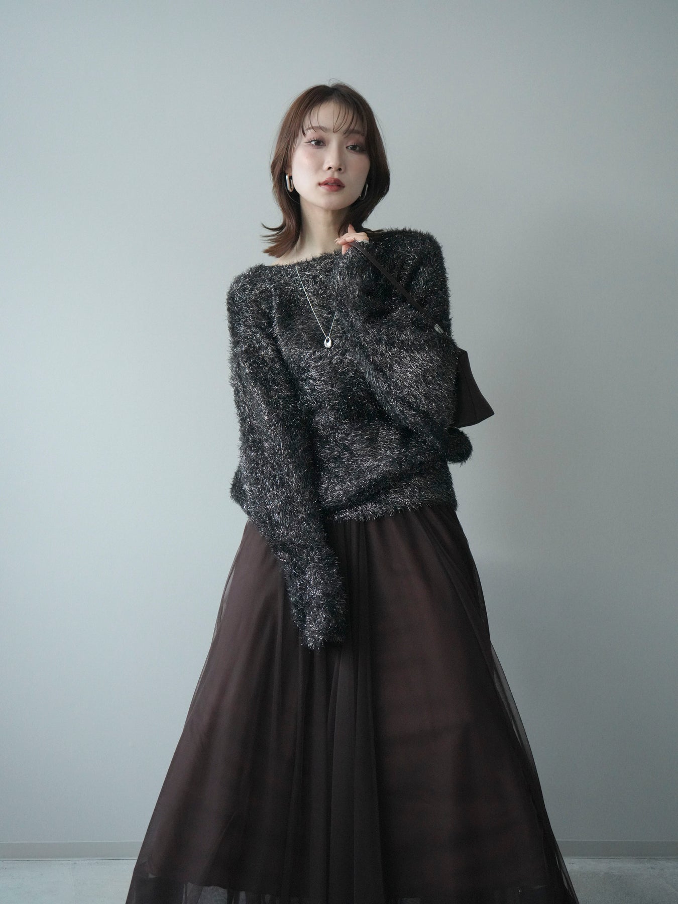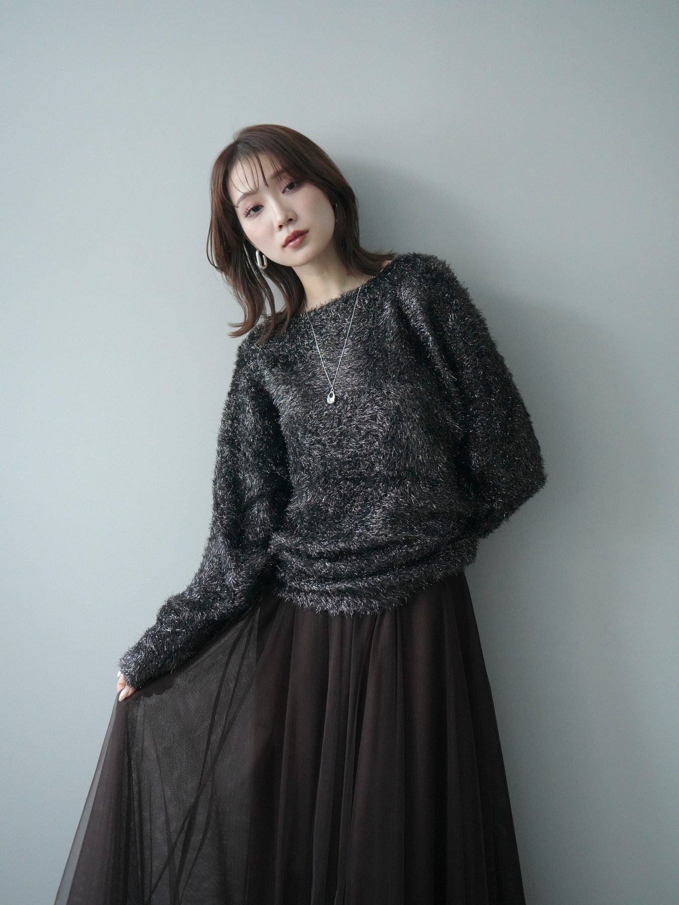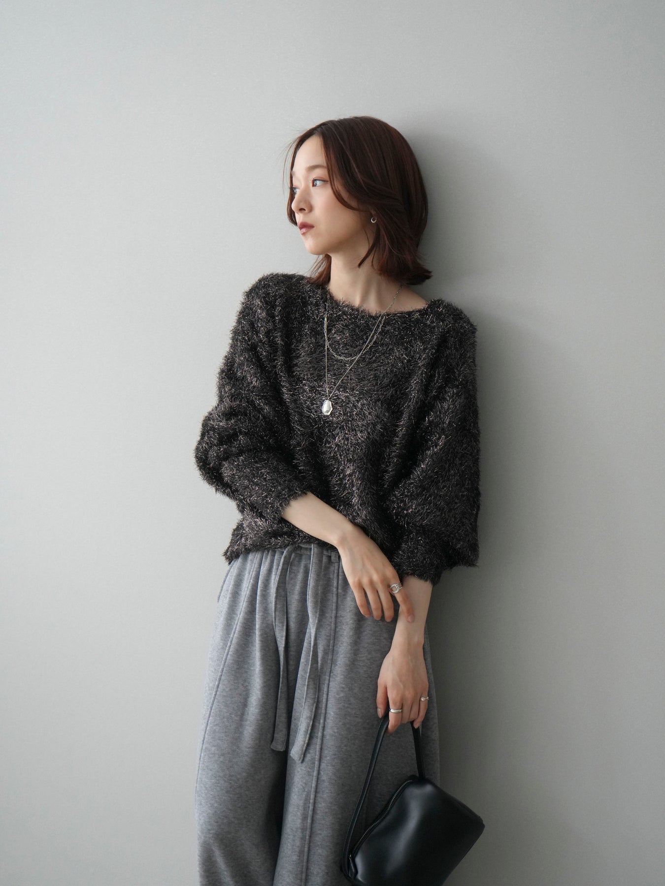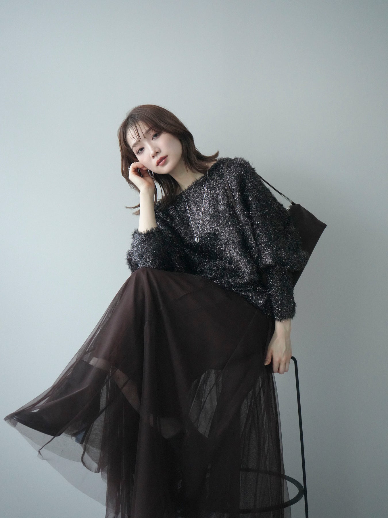 [予約]ラメシャギードルマンニットプルオーバー/brown