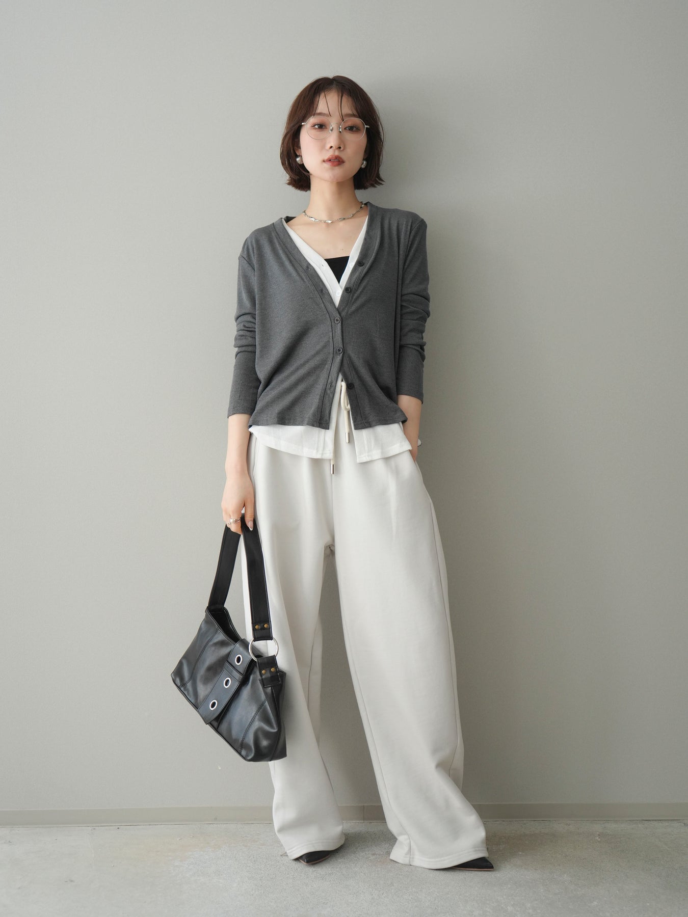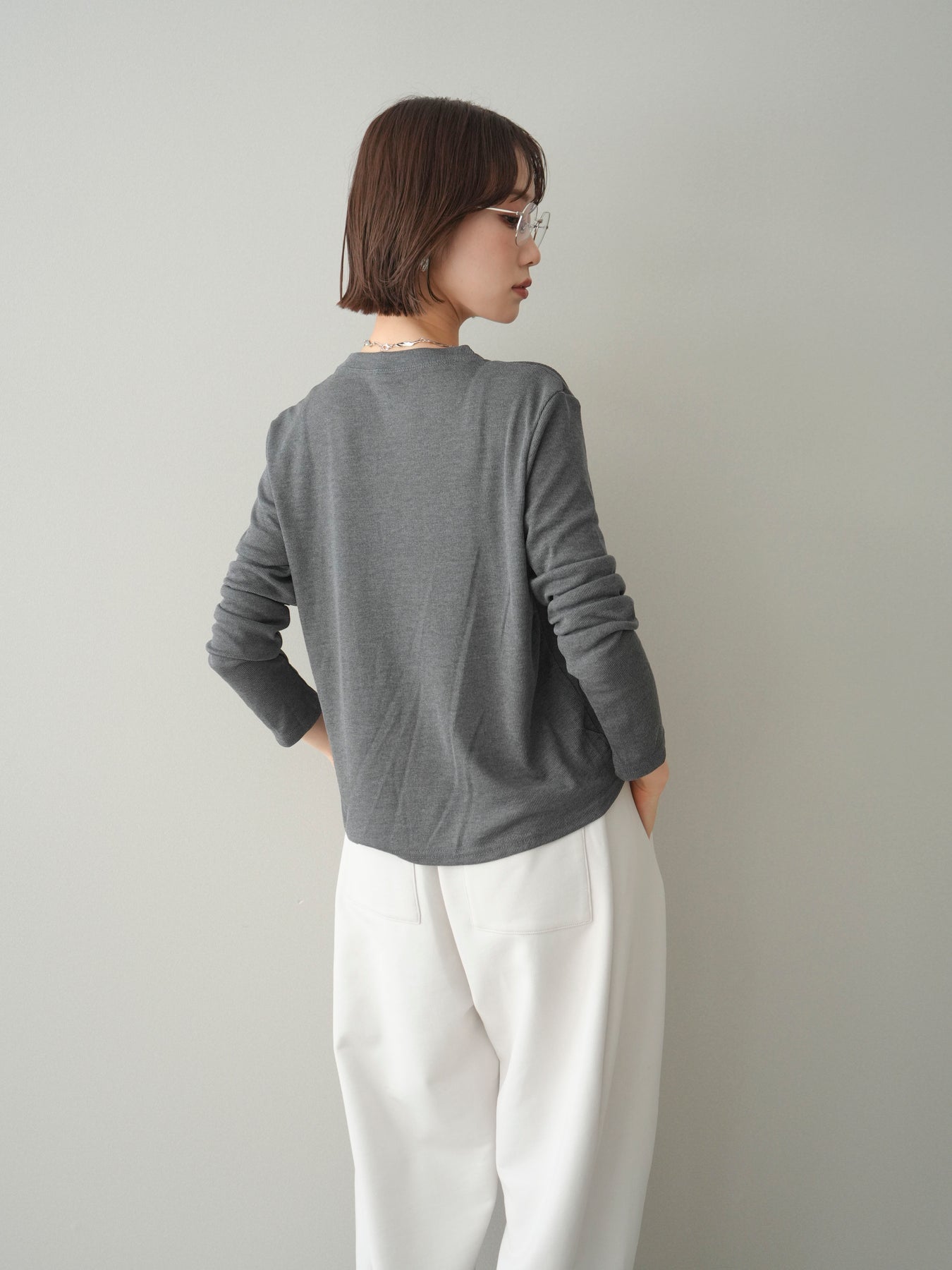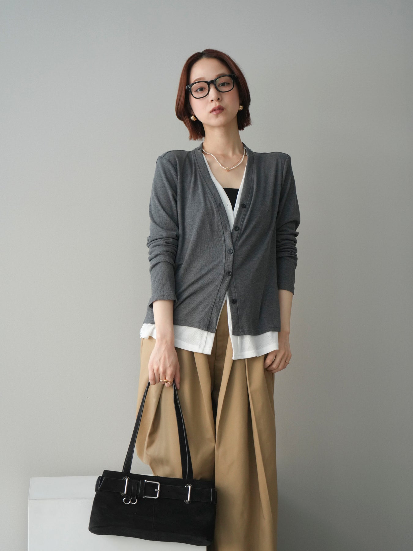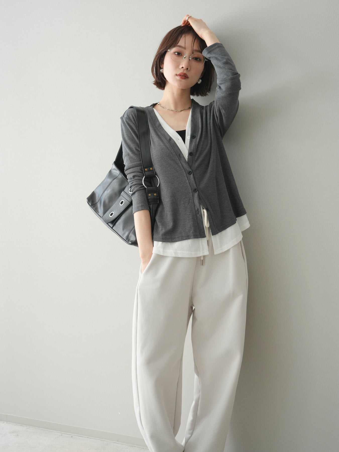 [予約]配色レイヤードカットリブカーディガン/gray