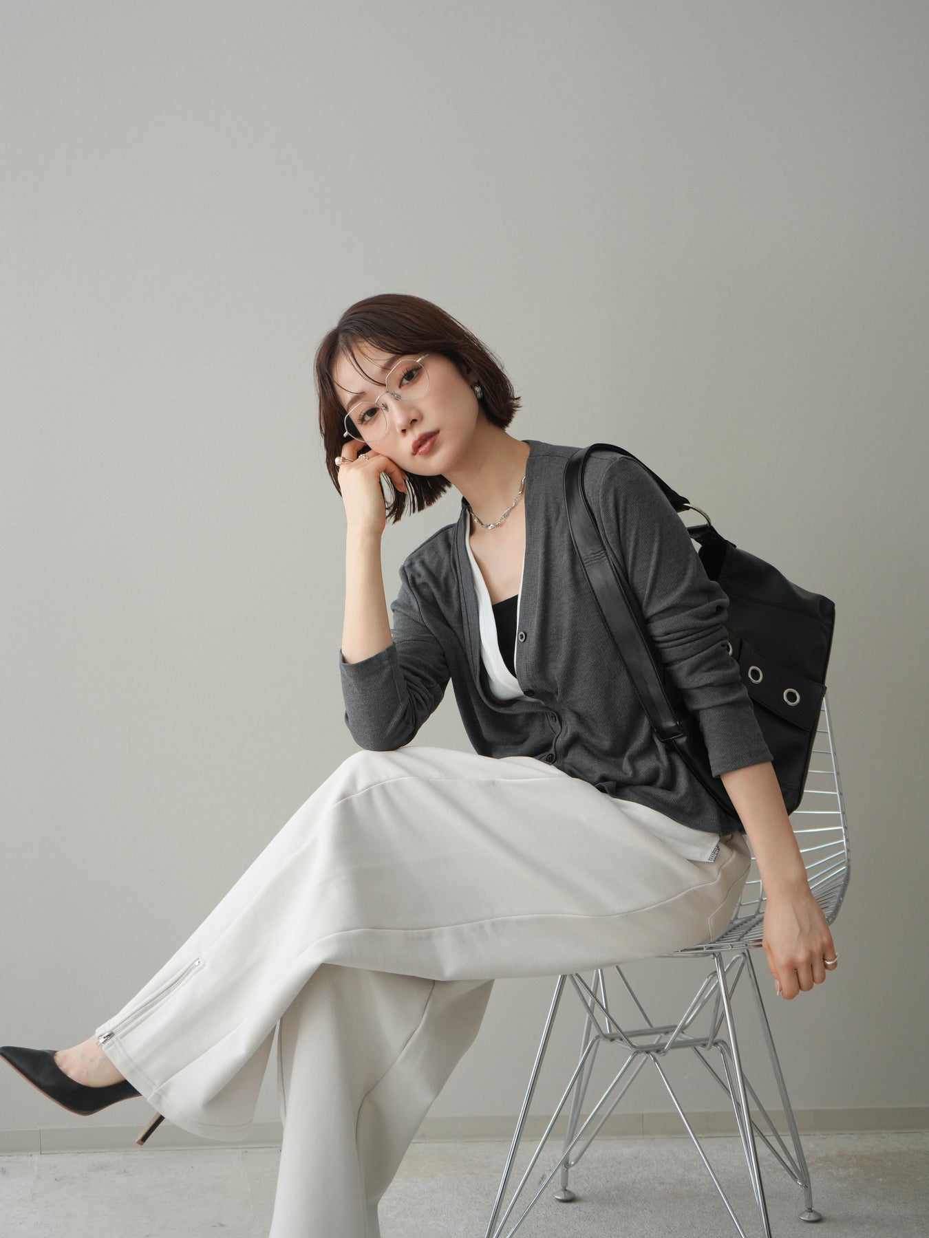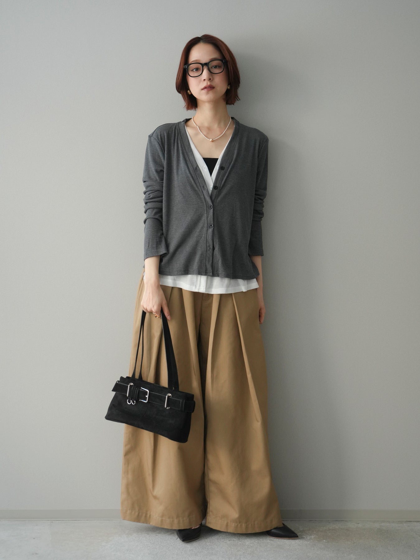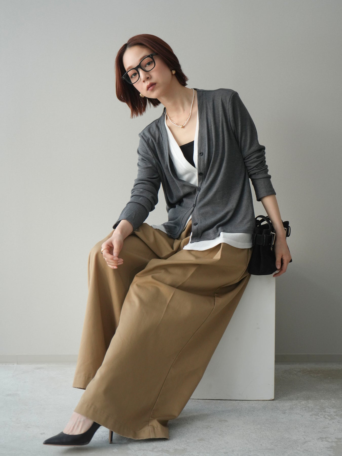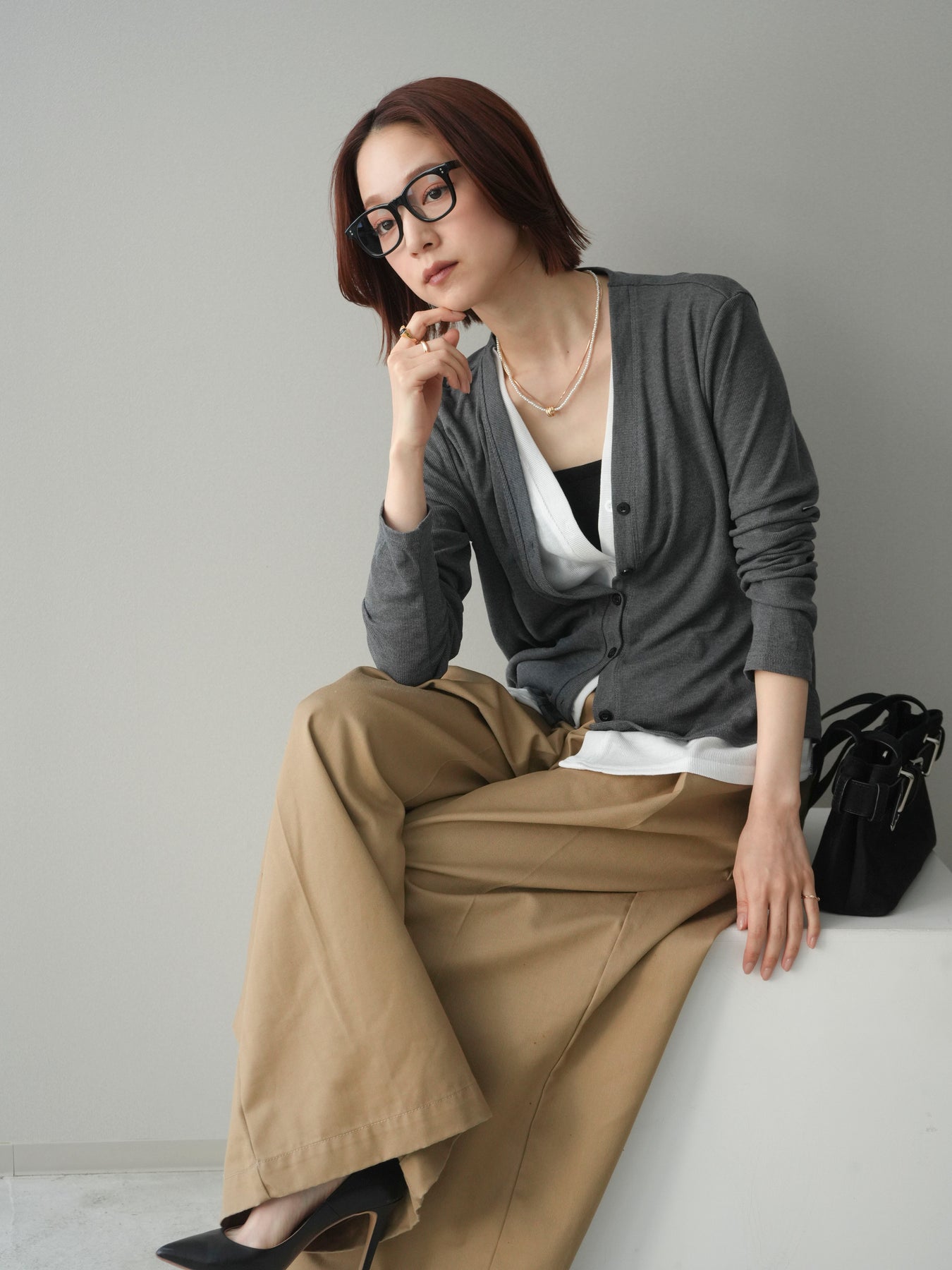 配色のレイヤードデザインがポイントの、カットリブ素材カーディガン。シンプルなVネックに、裾から覗くレイヤード風ディテールを加えることで、1枚で奥行きのあるスタイリングが完成します。程よく伸縮性のあるリブ素材で着心地が良く、すっきりとしたシルエットながら体のラインを拾いにくいのも魅力。前を留めてトップス感覚でも、羽織りとしても活躍し、デイリーからきれいめまで幅広いコーディネートに取り入れやすい一着です。 ※ボトムス、キャミソール(インナー)以外の商品は一律でインナーは付属していません。