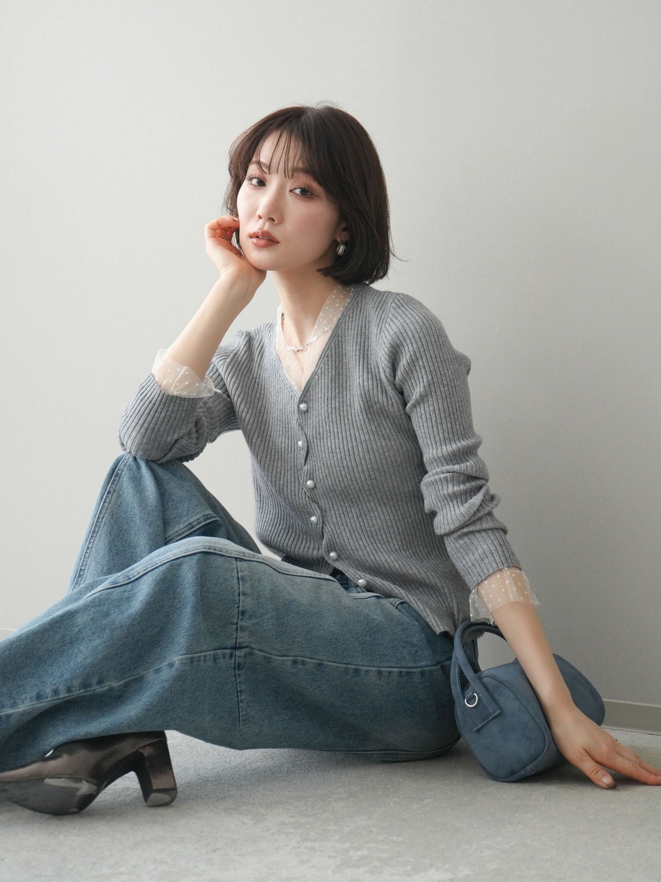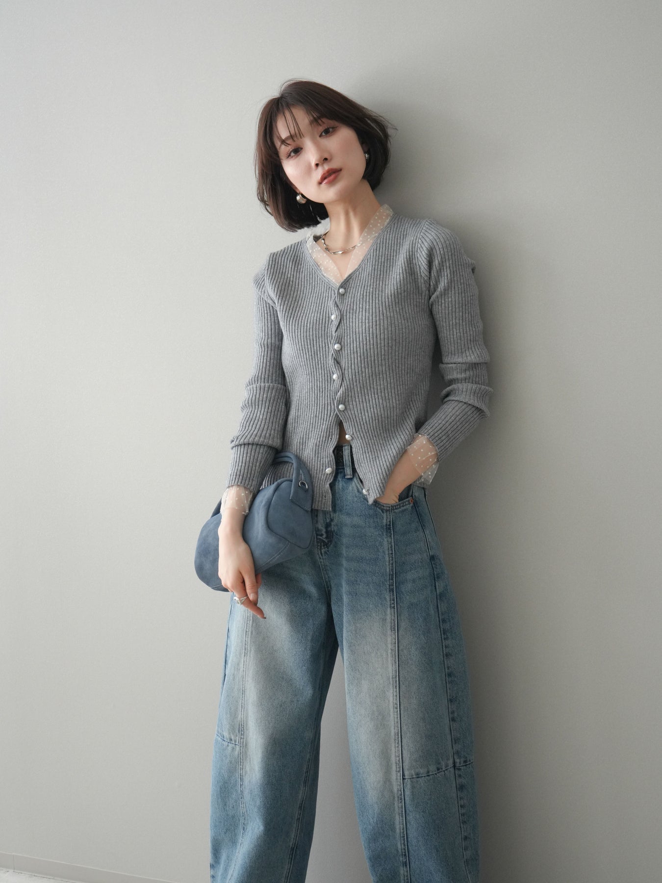 [予約]チュールドッキングパールボタンニットカーディガンに関連する商品を探す↓