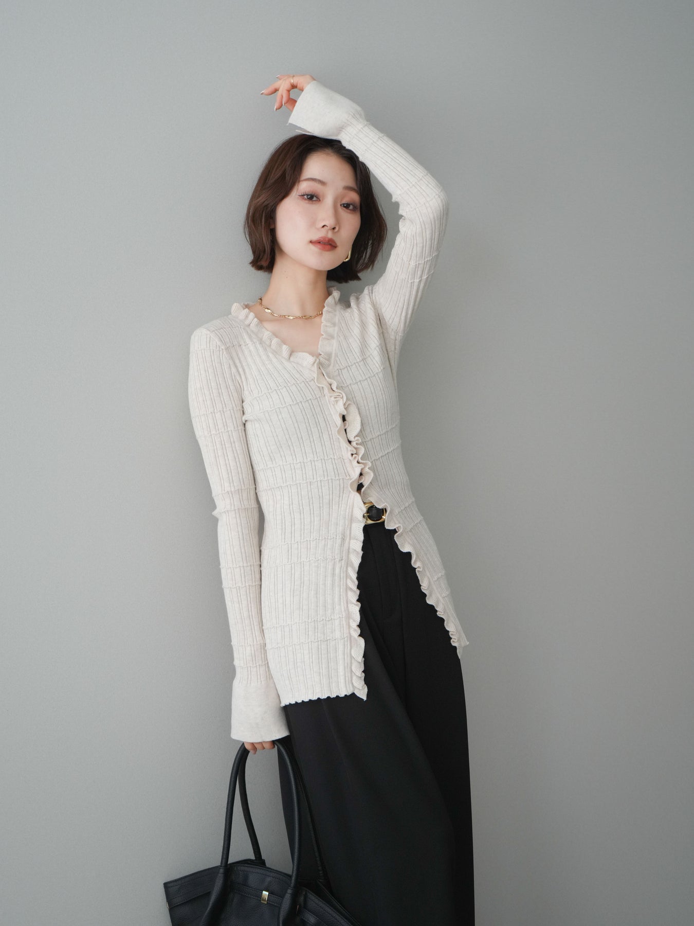[予約]フロントフリルリブニットカーディガンに関連する商品を探す↓