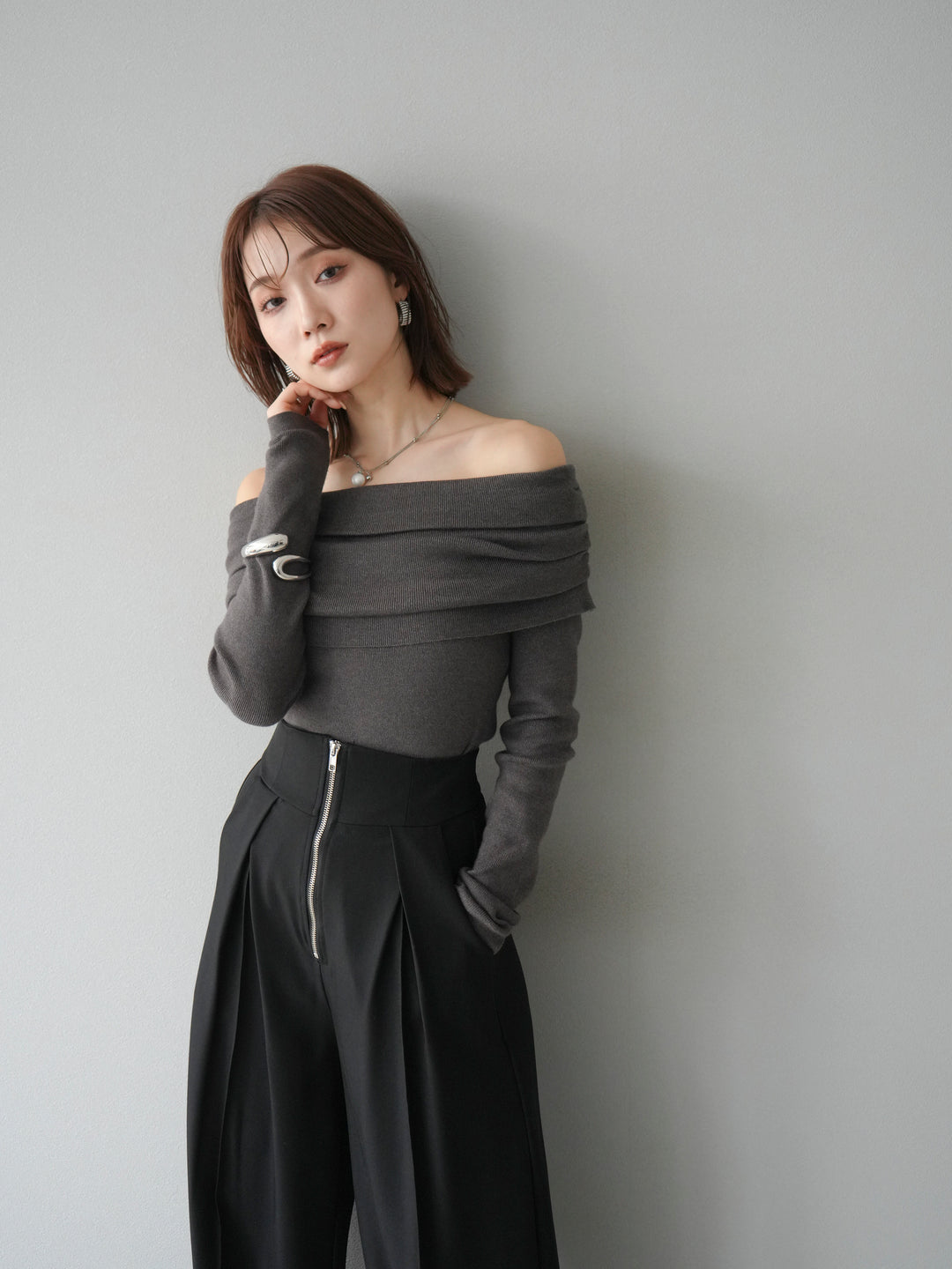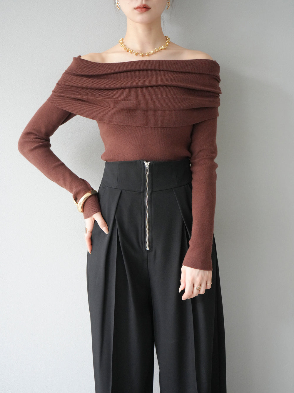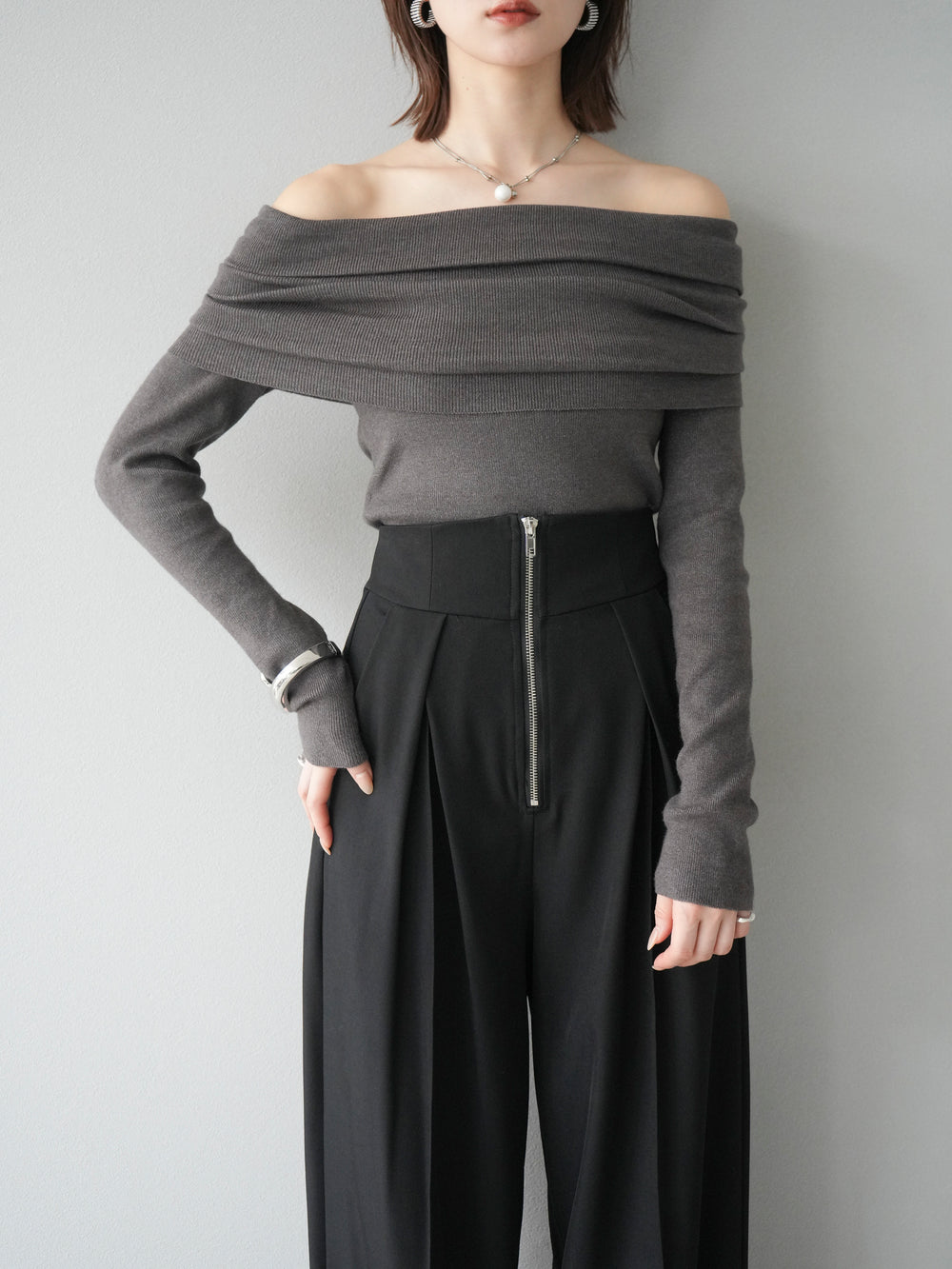 [予約]ダブルZIPハイネック畦編みニットベスト/オートミール