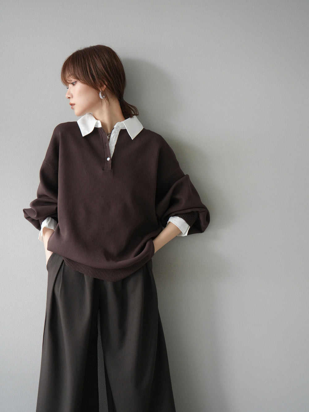 [預訂] 領口 Polo 針織套衫/炭灰色