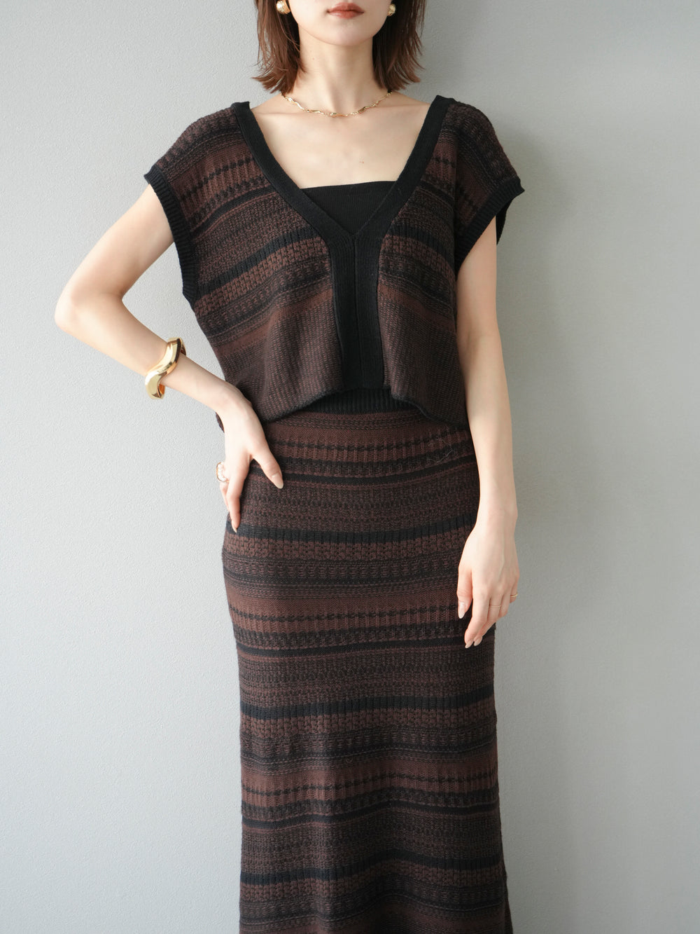 [予約]ガーター編み2WAYニットベスト/ブラウン×ブラック