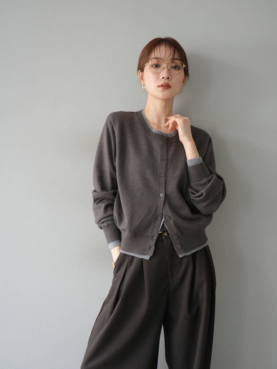 [預訂] 色彩協調的多層開襟衫/炭灰色