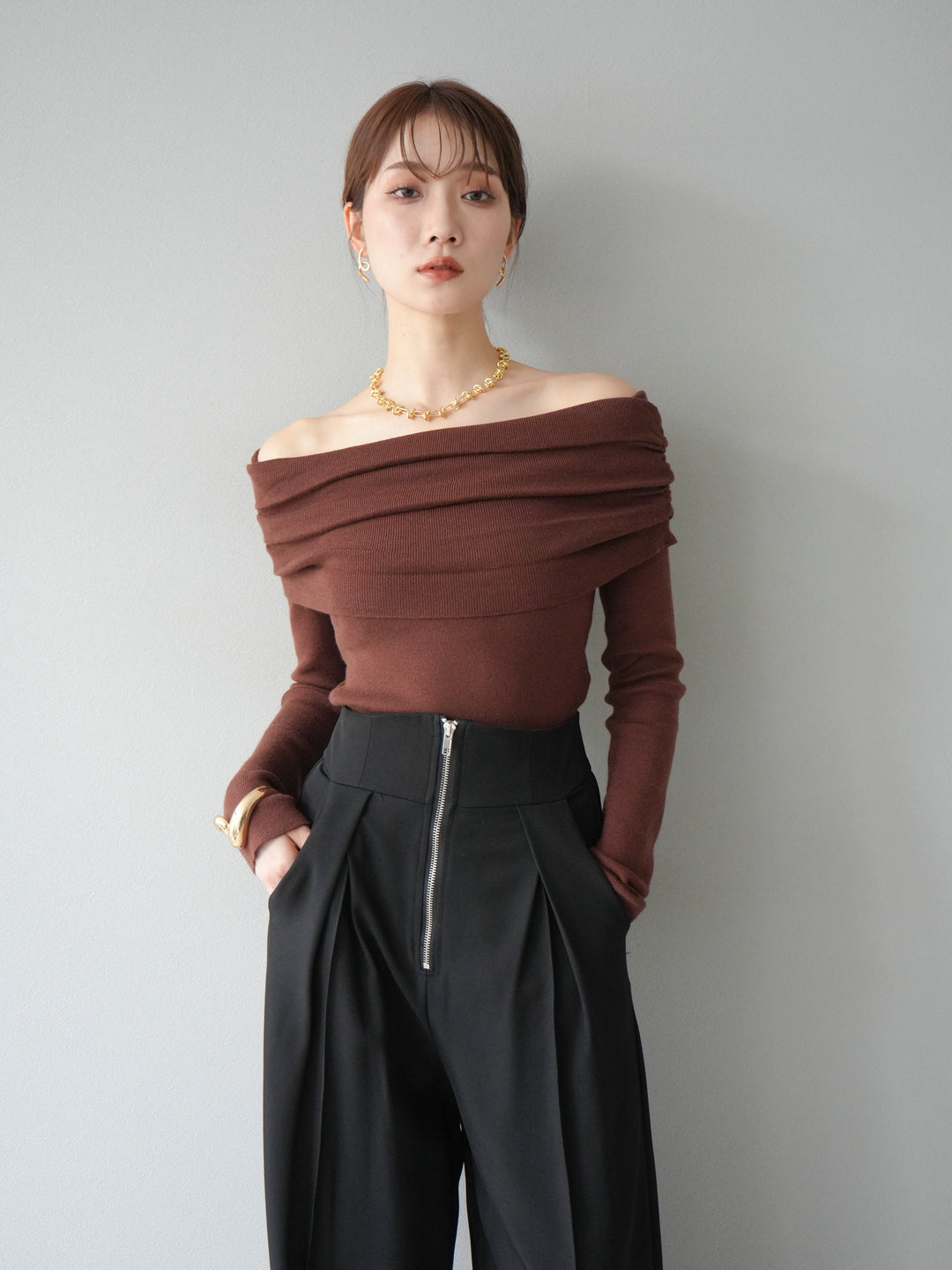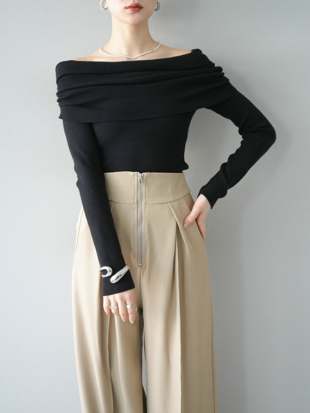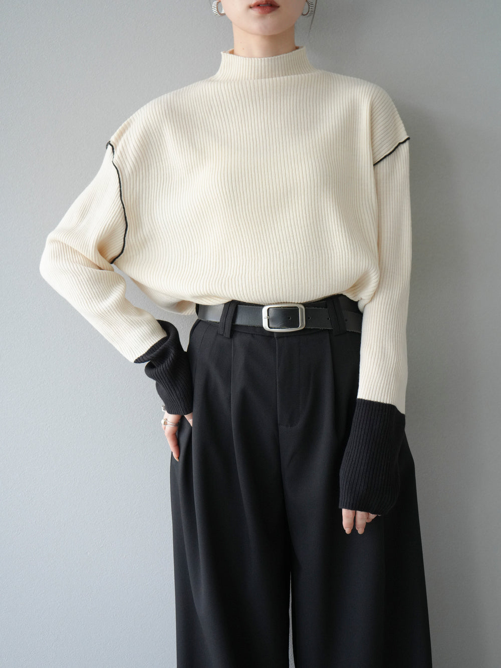 [予約]ボトルネック配色リブニットプルオーバー/エクリュ×ブラック