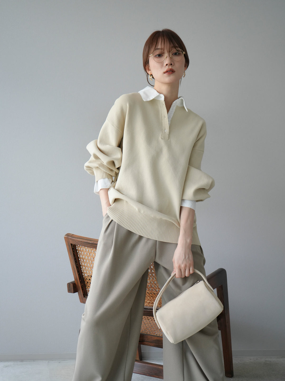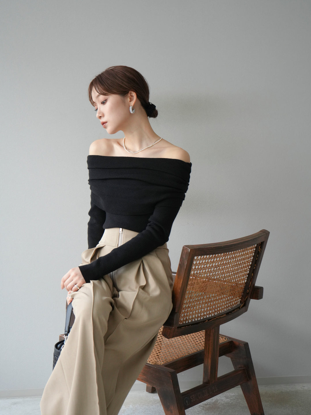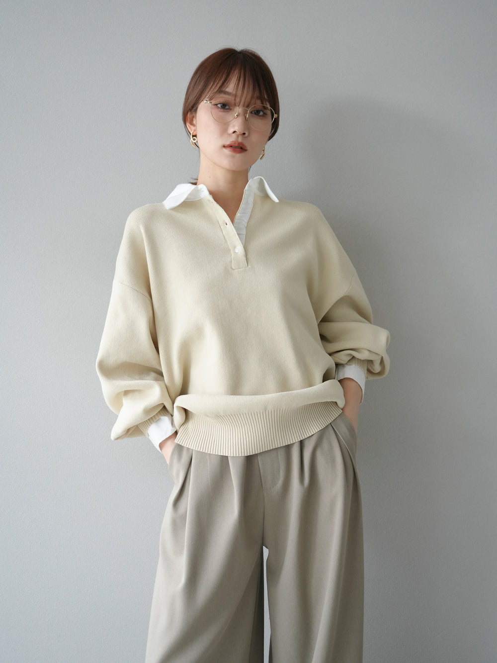 [予約]ボトルネック配色リブニットプルオーバー/エクリュ×ブラック