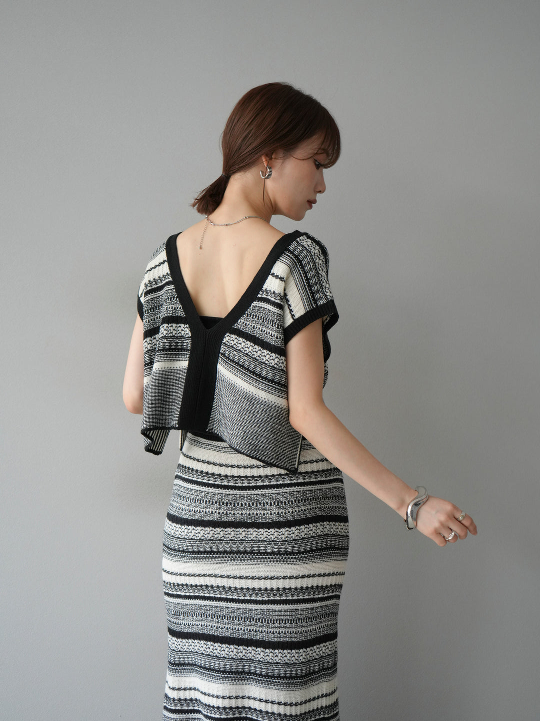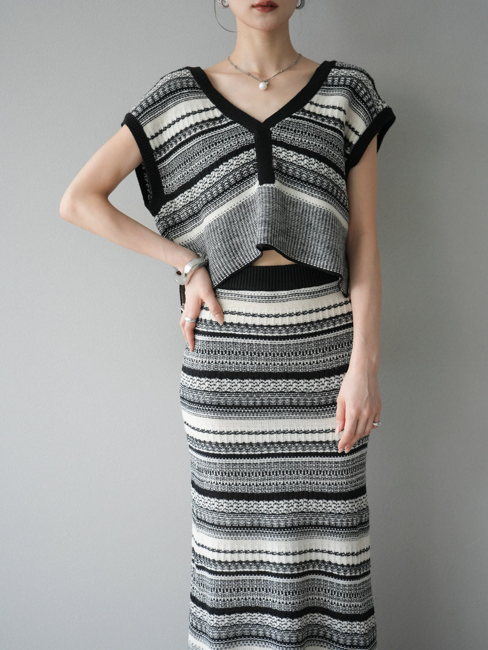[予約]ガーター編み2WAYニットベスト/ホワイト×ブラック