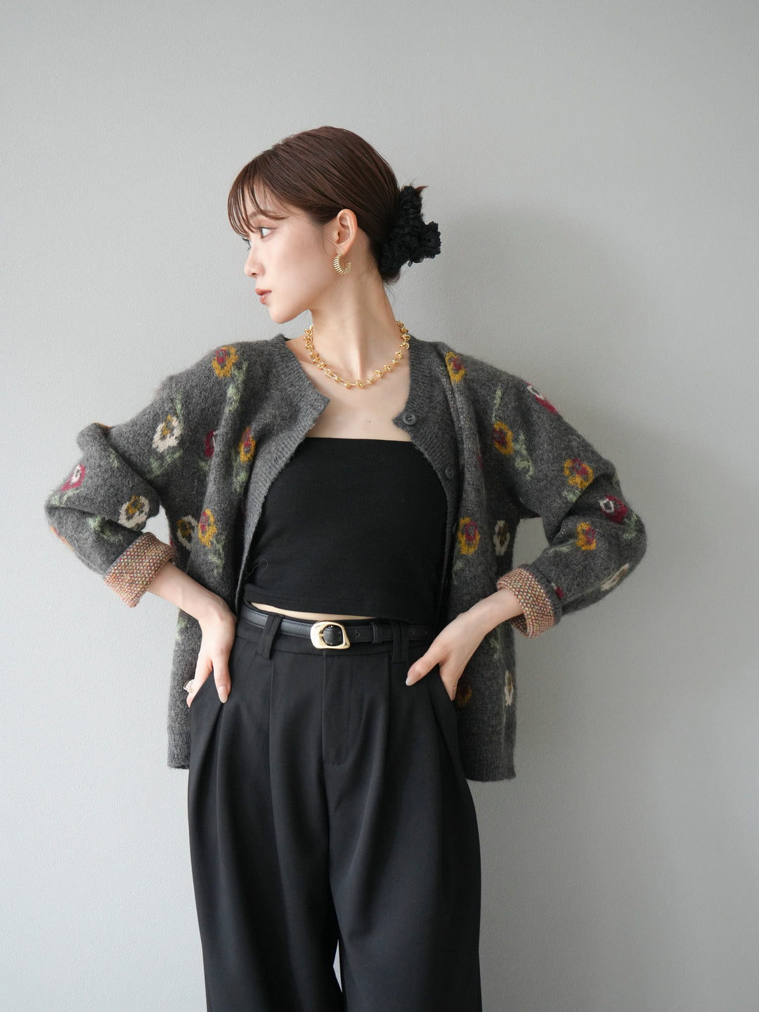 [予約]ウールタッチフラワーニットカーディガン/チャコール
